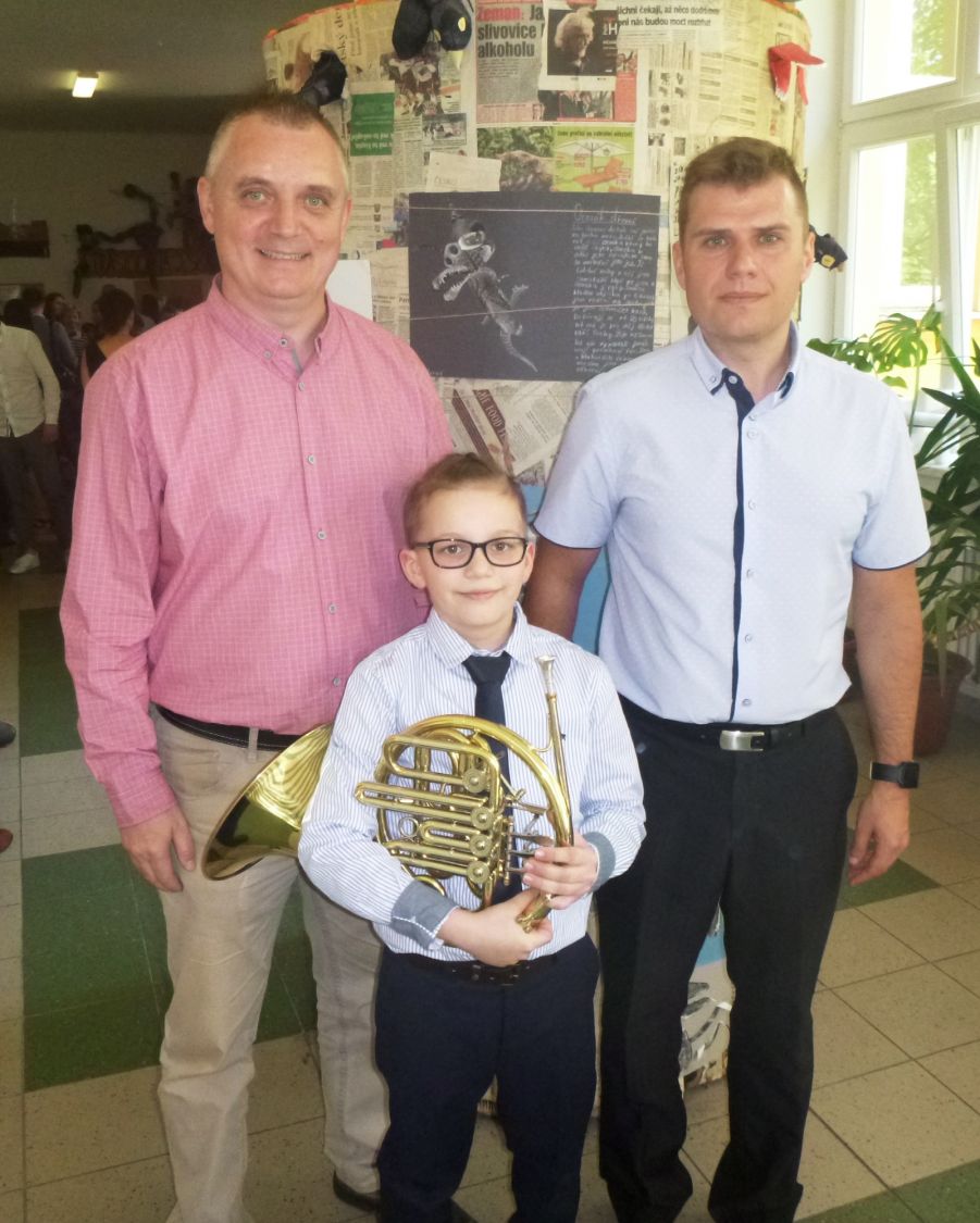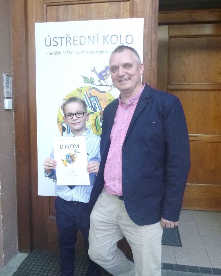 Vítkovi a panu učiteli Radovanu Hajnému k tomuto úspěchu moc gratulujeme a děkujeme jim, i panu učiteli Mgr. Vítu Košíčkovi za korepetici u klavíru, za vzornou reprezentaci naší školy.