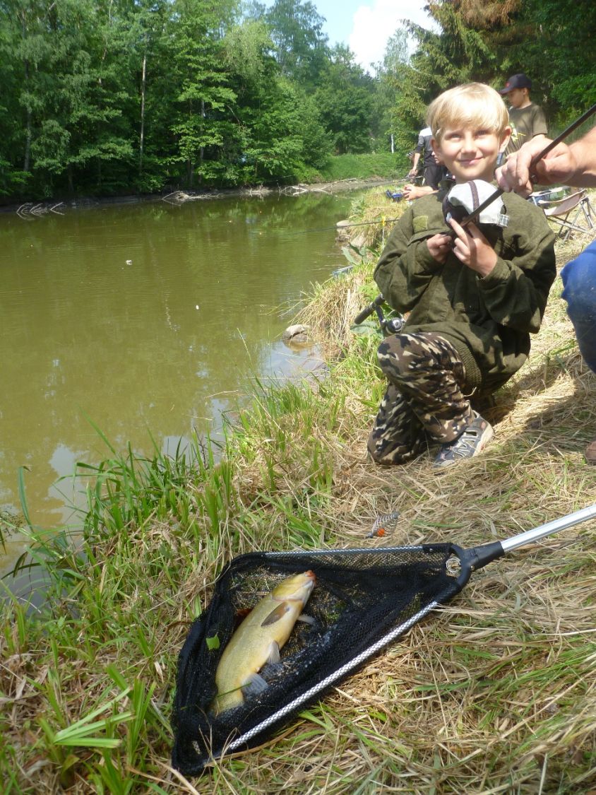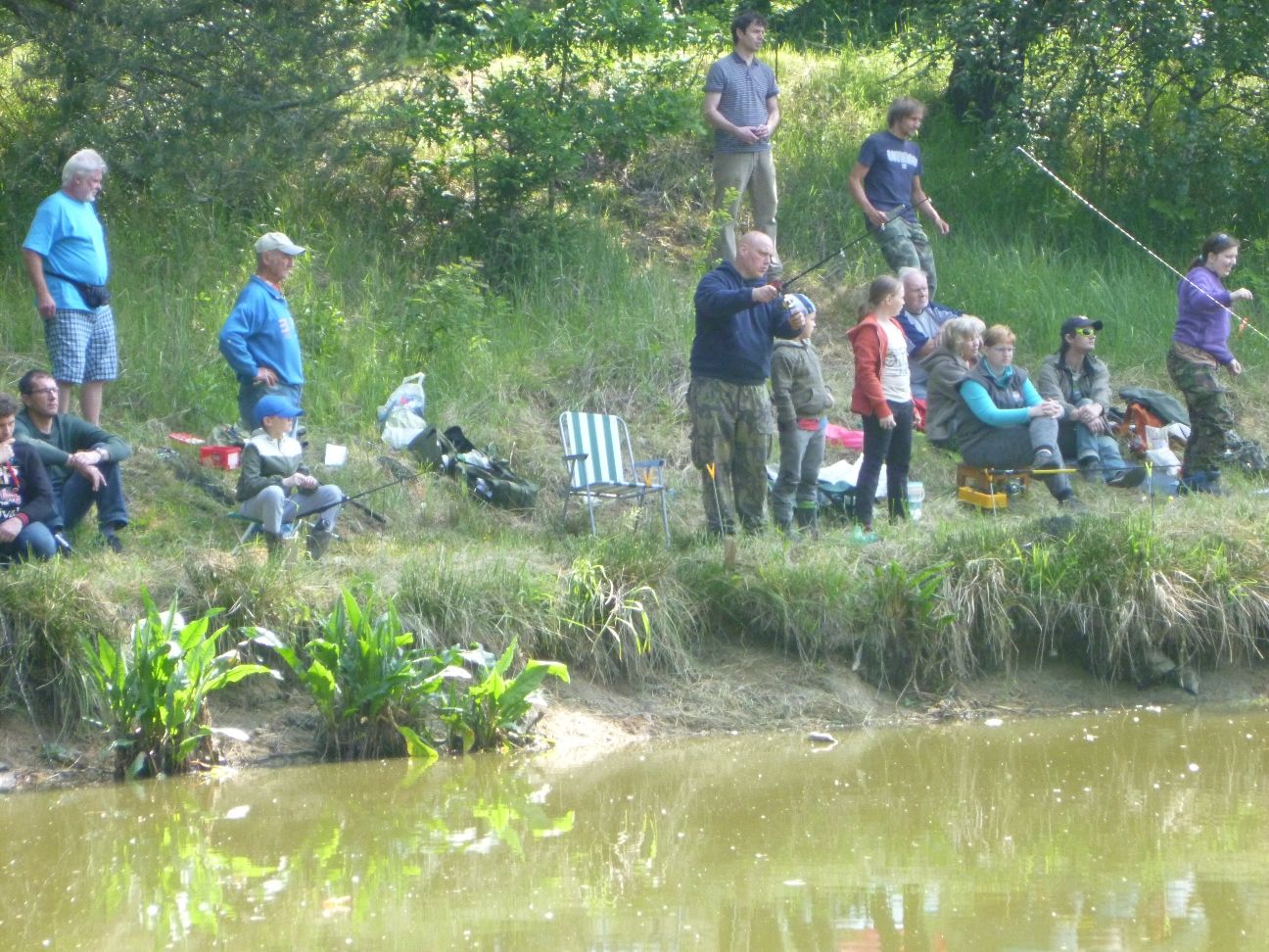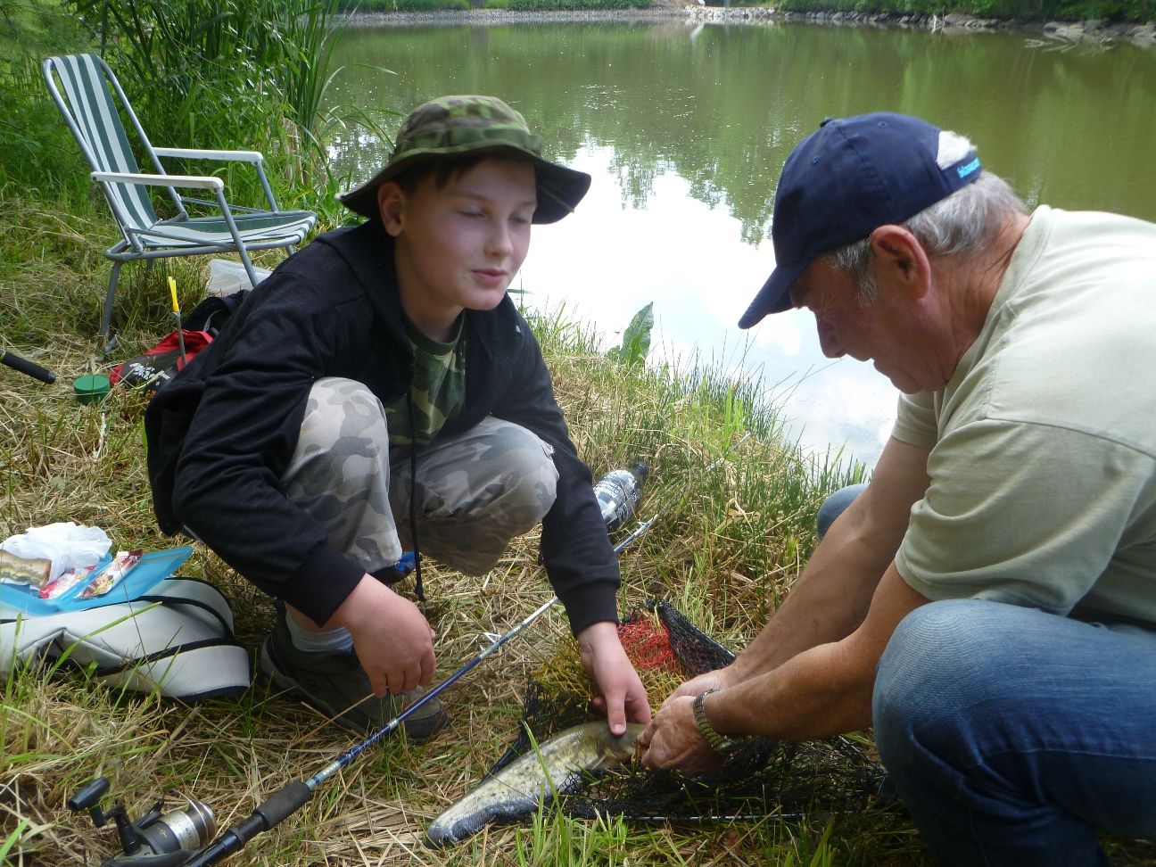 Děti na udici z vody tahaly kapry, sumce, líny, úhoře, candáta a další ryby. Vyhrát mohly třeba i naviják a další ceny. Vítězem závodů se stal Dominik Havlík, který mimo jiné chytil kapra délky 46 cm. „V rybníku byly i větší ryby, ale ty zrovna v sobotu nebraly,“ říká Karel Veselý, který mladé rybáře ve Velkém Meziříčí učí a vychovává již osmačtyřicet let. „Začínal jsem s tím ve škole v Radostíně a po čtyřech letech jsem přešel pod tehdejší Dům dětí a mládeže, nyní Dóza, kde vedu rybářský kroužek dosud,“ dodává. Za celou dobu vychoval tisíc, možná dvanáct stovek nových rybářů. Přesně to spočítané nemá. Zájemců podle něj v poslední době ubývá. Dřív vedl i čtyři rybářské kurzy do roka o více než dvaceti účastnících. „Nyní je to tak kolem deseti, třinácti dětí. Pokud je jich míň než šest, kroužek neotvíráme. I to se jednou stalo. Děti dnes mají jiné zájmy, počítače apod.,“ dodává K. Veselý.