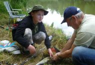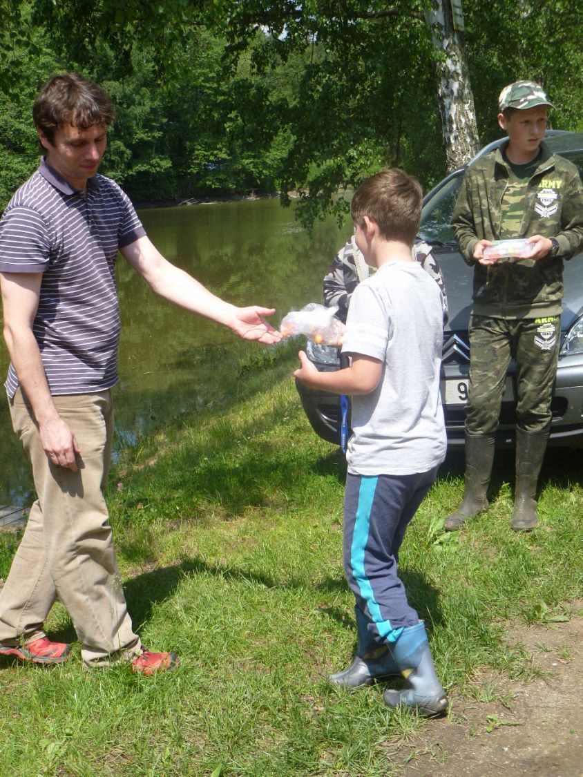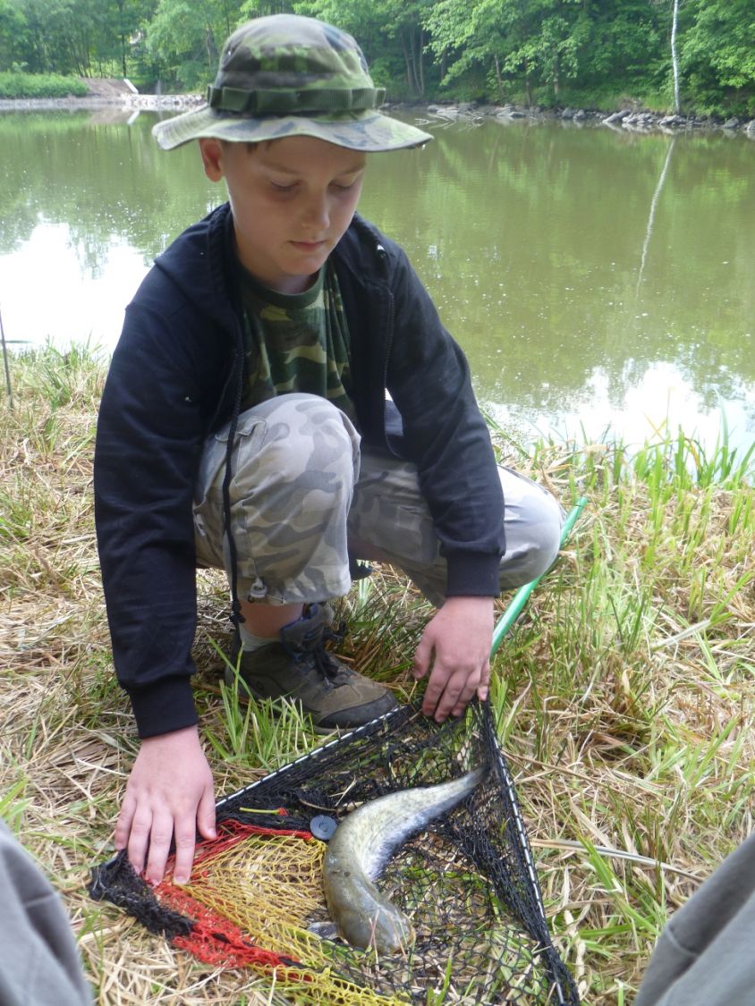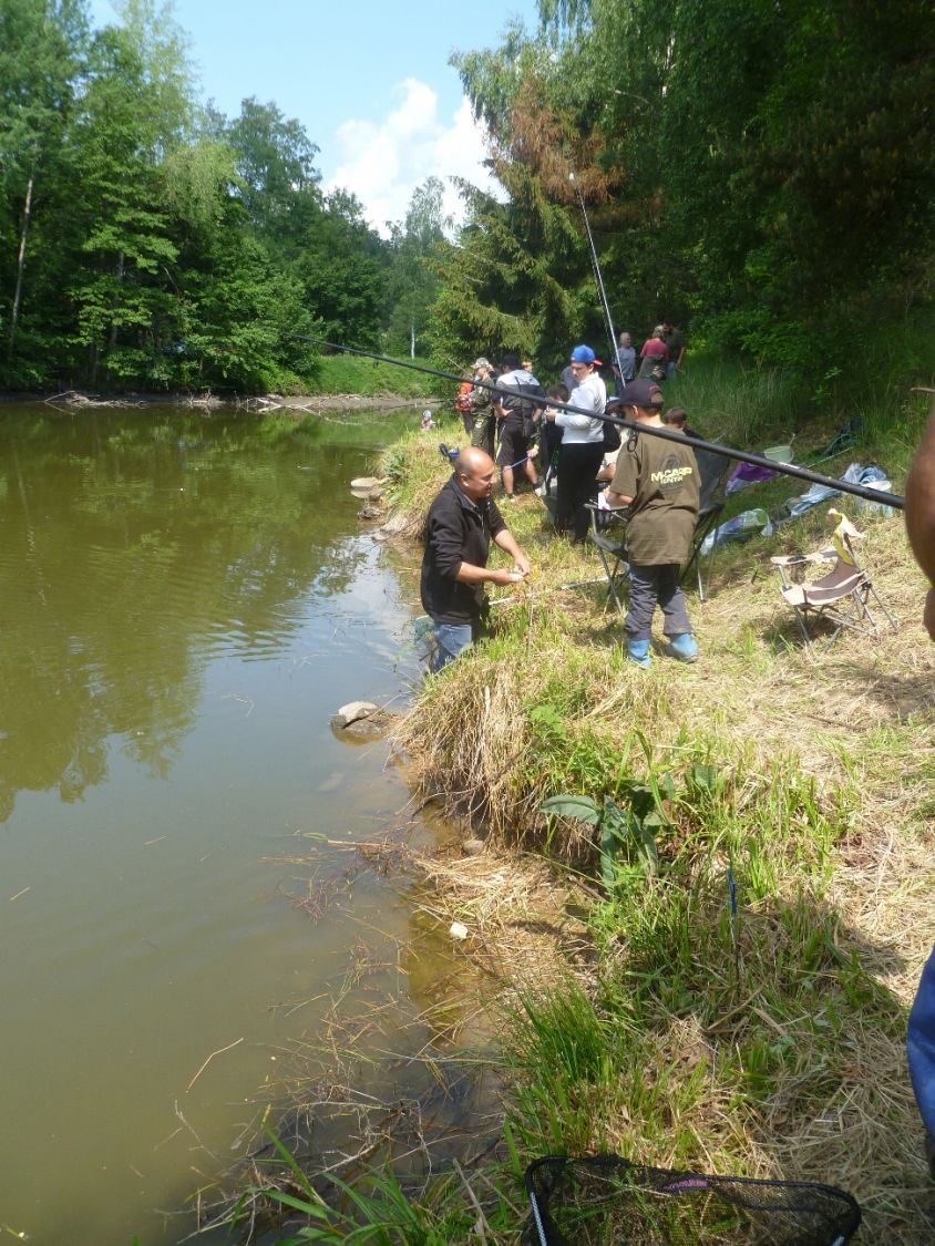 Děti na udici z vody tahaly kapry, sumce, líny, úhoře, candáta a další ryby. Vyhrát mohly třeba i naviják a další ceny. Vítězem závodů se stal Dominik Havlík, který mimo jiné chytil kapra délky 46 cm. „V rybníku byly i větší ryby, ale ty zrovna v sobotu nebraly,“ říká Karel Veselý, který mladé rybáře ve Velkém Meziříčí učí a vychovává již osmačtyřicet let. „Začínal jsem s tím ve škole v Radostíně a po čtyřech letech jsem přešel pod tehdejší Dům dětí a mládeže, nyní Dóza, kde vedu rybářský kroužek dosud,“ dodává. Za celou dobu vychoval tisíc, možná dvanáct stovek nových rybářů. Přesně to spočítané nemá. Zájemců podle něj v poslední době ubývá. Dřív vedl i čtyři rybářské kurzy do roka o více než dvaceti účastnících. „Nyní je to tak kolem deseti, třinácti dětí. Pokud je jich míň než šest, kroužek neotvíráme. I to se jednou stalo. Děti dnes mají jiné zájmy, počítače apod.,“ dodává K. Veselý.