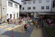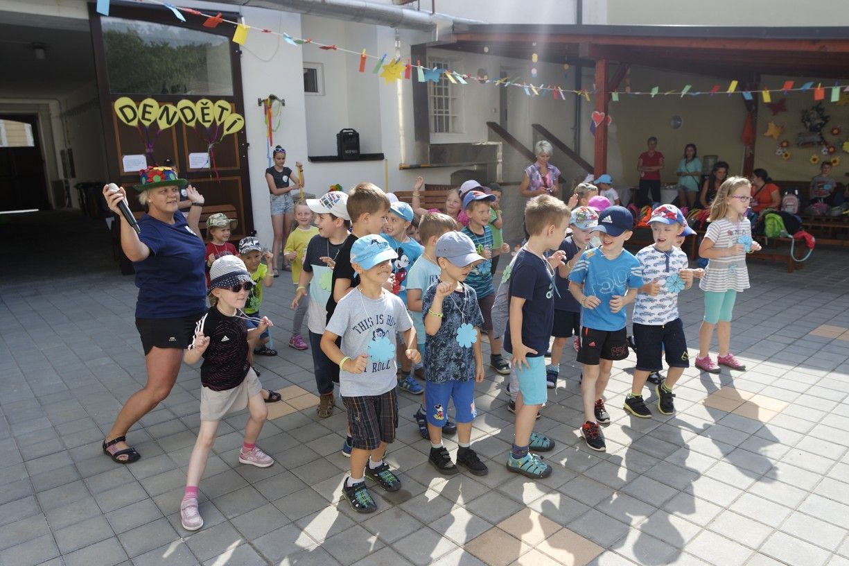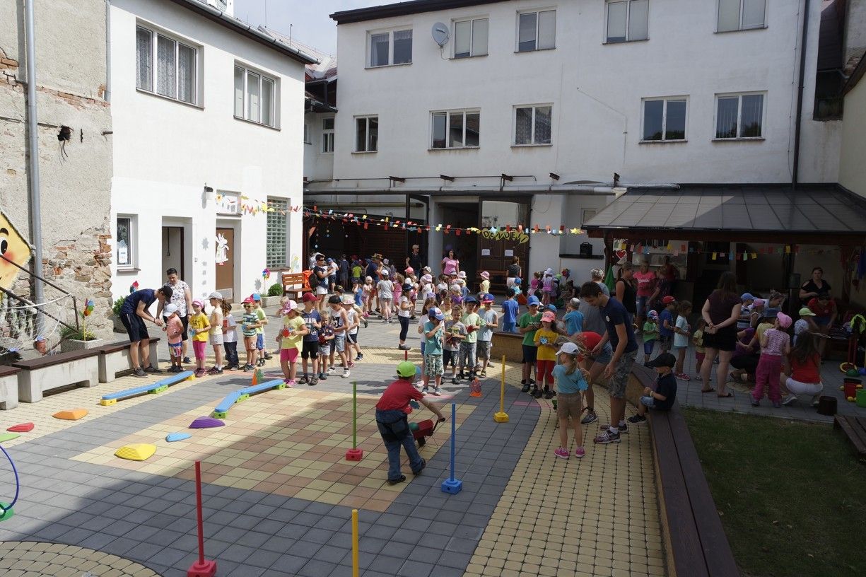 Svůj svátek zde oslavily nejen tancováním, ale zejména soutěžením. Za absolvování jednotlivých soutěžních disciplín děti získávaly razítka na barevné papírové kytičky, které spolu s malým dárkem obdržely při vstupu na plácek. Většině dětí se podařilo zaplnit všechny okvětní lístky na své kytičce, a tím vysoutěžit pro svoji třídu za snahu a velké nasazení sladkou odměnu – plný kornout sladkostí, které hrdě převzaly paní učitelky. Dopoledne si všichni přítomní (zejména děti, učitelky, ale i zaměstnanci a dobrovolníci Dózy) užili. Bohužel tomu tak nebylo v odpoledním programu pro veřejnost. Nepřízeň počasí (bouřka, vytrvalý déšť) zapříčinila, že soutěžní disciplíny byly omezeny a celý program nakonec zrušen. I přesto si k nám našlo několik dětí s rodiči či prarodiči cestu. Některé disciplíny nebyly narušeny, a tak si děti i odpoledne vysoutěžily sladkosti, osvěžily nanukem a zahnaly hlad párkem v rohlíku. Věříme, že příští rok nám bude počasí nakloněno po celý den, abychom si svátek všech dětí mohli užít naplno.