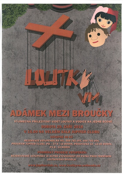 Pro zpestření jsme se rozhodli tuto pohádku odehrát na velkém sále v Jupiter clubu. Máte tak možnost vidět loutkoherce přímo v akci, sledovat, jak se taková loutka vlastně vodí, jelikož tady nebudou vodiči schovaní za scénou, ale budou na scéně spolu s loutkami. Děti se tak dostanou k loutkám mnohem blíže než obvykle. Od října už budeme hrát další pohádky klasicky na naší domovské scéně. Jak už si někteří mohli všimnout, máme od letošní sezony nové logo našeho souboru a s ním také nový plakát. Tak snad se vám bude líbit. Těšíme se na vás už v sobotu 29. 9. 2018 v 15:00 na velké scéně Jupiter clubu.