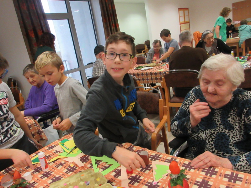 V pátek 23. listopadu jsme opět zavítali do Domova pro seniory ve Velkém Meziříčí. Žáci ze 4. A tentokrát naplánovali vyrábění dekorací, které by seniorům a seniorkám ozdobily stůl.