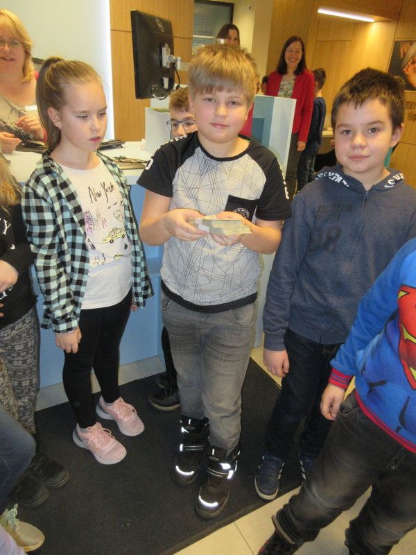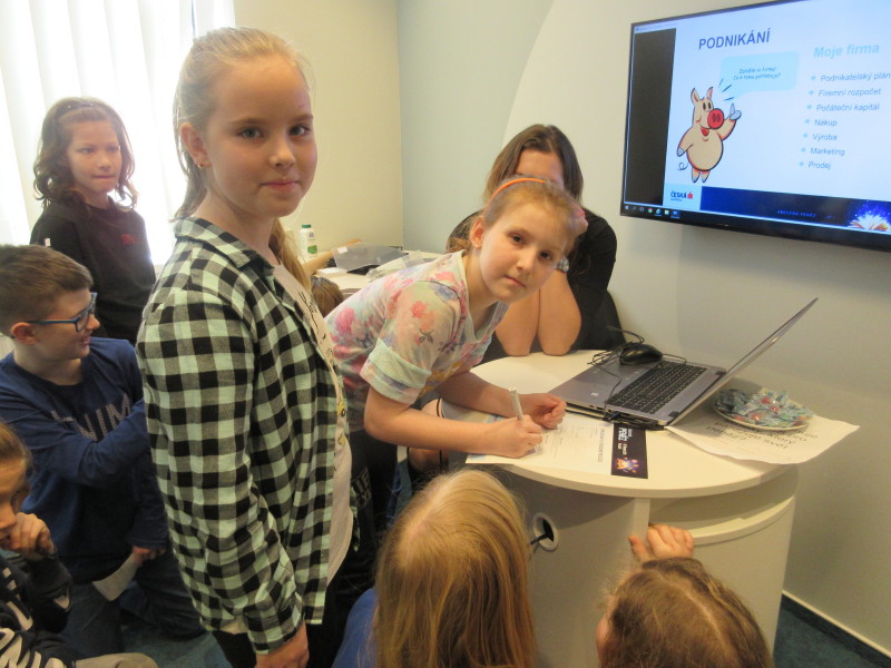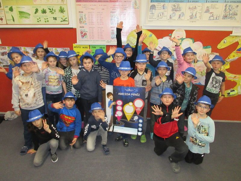 Naše třída se přihlásila do bezplatného zážitkového programu pro žáky 4. tříd finančního vzdělávání České spořitelny „Abeceda peněz". Dne 19. března začal náš projekt návštěvou pobočky ve Velkém Meziříčí, kde jsme se seznámili s prostředím banky „z druhé strany". Povídali jsme si o tom, co je to podnikání, podnikatelský záměr, kapitál, příjem a výdej.