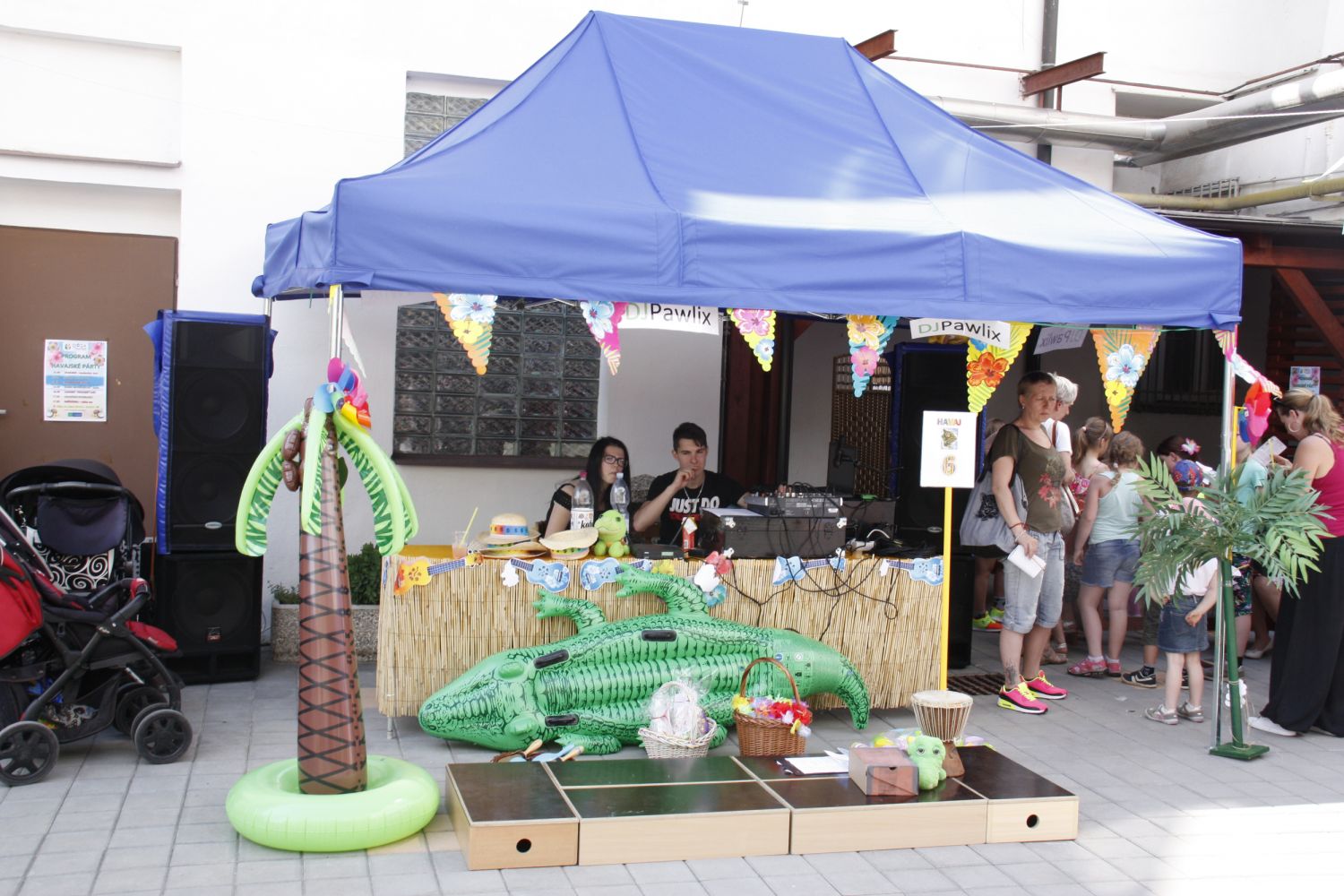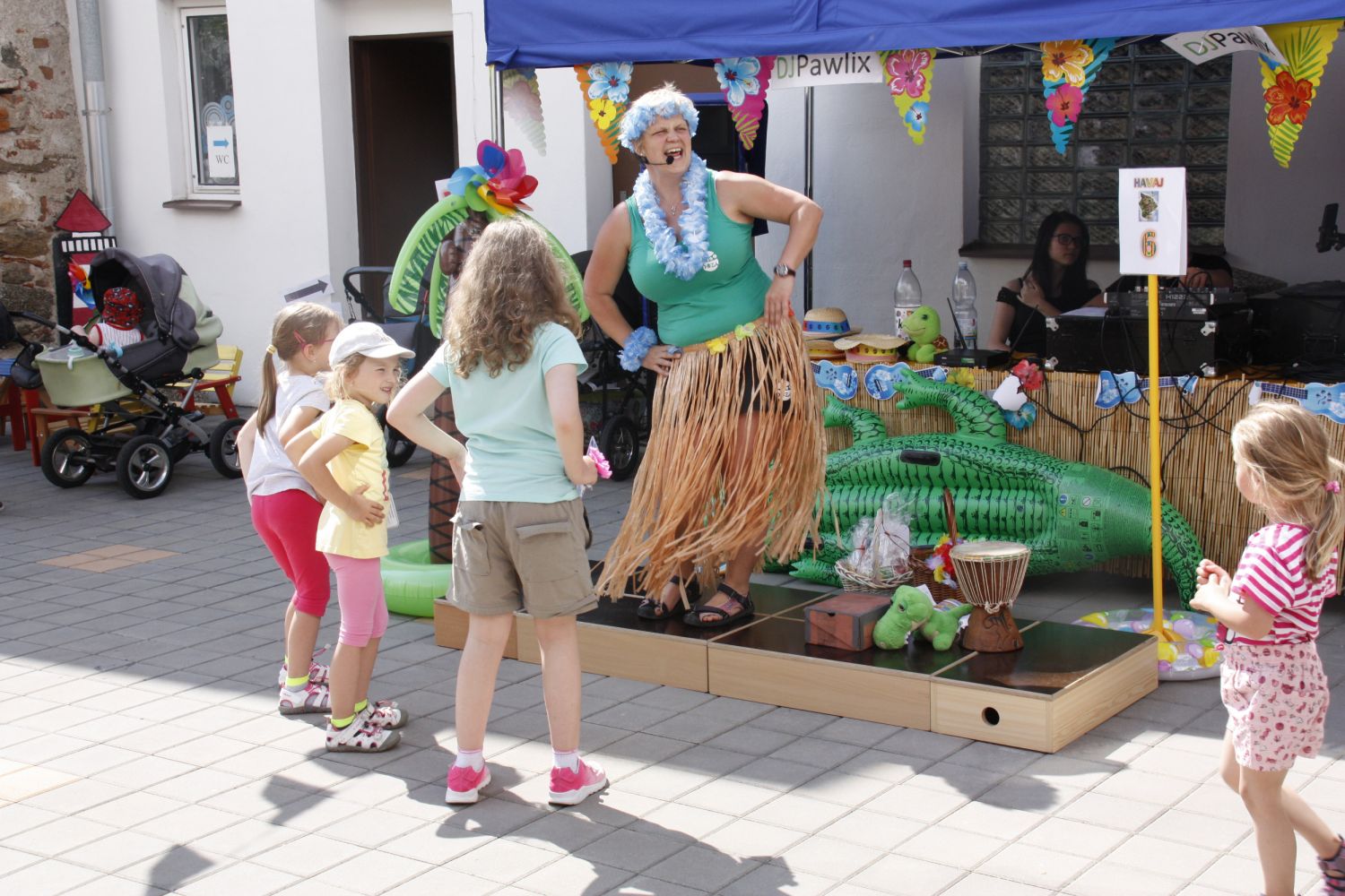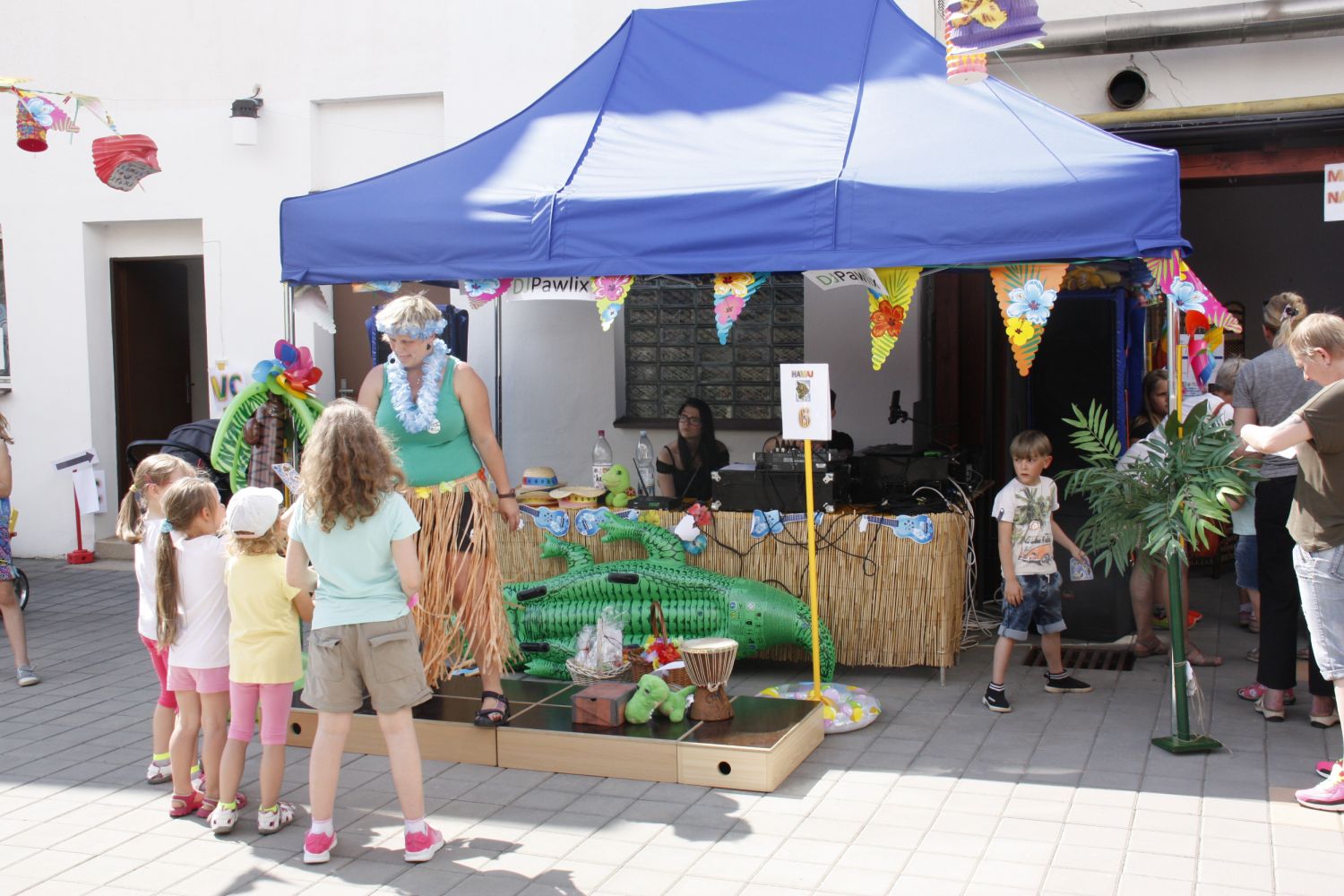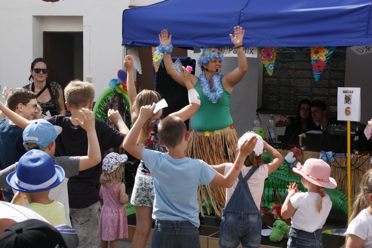 Děti si vyzkoušely nejen 8 soutěžních stanovišť s názvy osmi havajských ostrovů, na kterých za zvládnutí soutěžní disciplíny získávaly havajské dolary, ale společně s moderátorem Jaris si děti také zatančily a naučily zaříkávat počasí. Nechybělo malování na obličej, občerstvení - párky v rohlíku, zmrzliny, koktejly od barmana Dominika, či kmínová limonáda. Dospěláci si otestovali své vědomosti v havajském kvízu. Kdo chtěl, mohl si z párty odnést i památku v podobě havajské fotografie a ze směnárny pak krásné ceny, které nakoupil za havajské dolary. Program obohatilo i taneční vystoupení děvčat ze skupiny Club Dance, břišní tance Elišky Michalíkové a barmanská šou. Skvělá byla i hudba DJ Pawlixe a hlavně skvělí byli všichni návštěvníci, kteří si na plácek Dózy našli cestu a strávili s námi havajské odpoledne. Děkujeme vám.