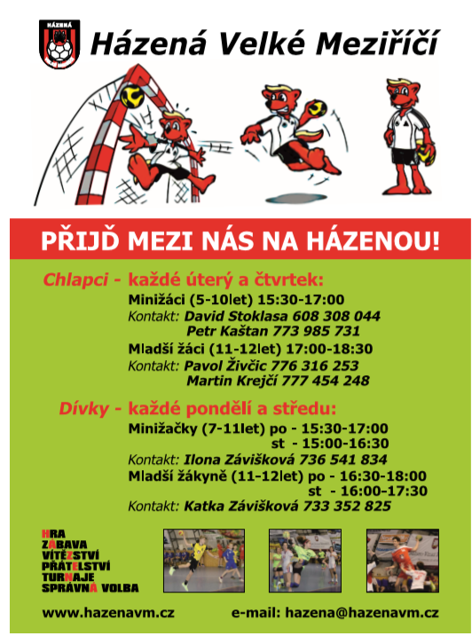 Nadále nabíráme do svých řad kluky se zájmem o pohyb od 5 do 10 let. Nebojte se, a přijďte mezi nás. Házená je sport pro všechny.