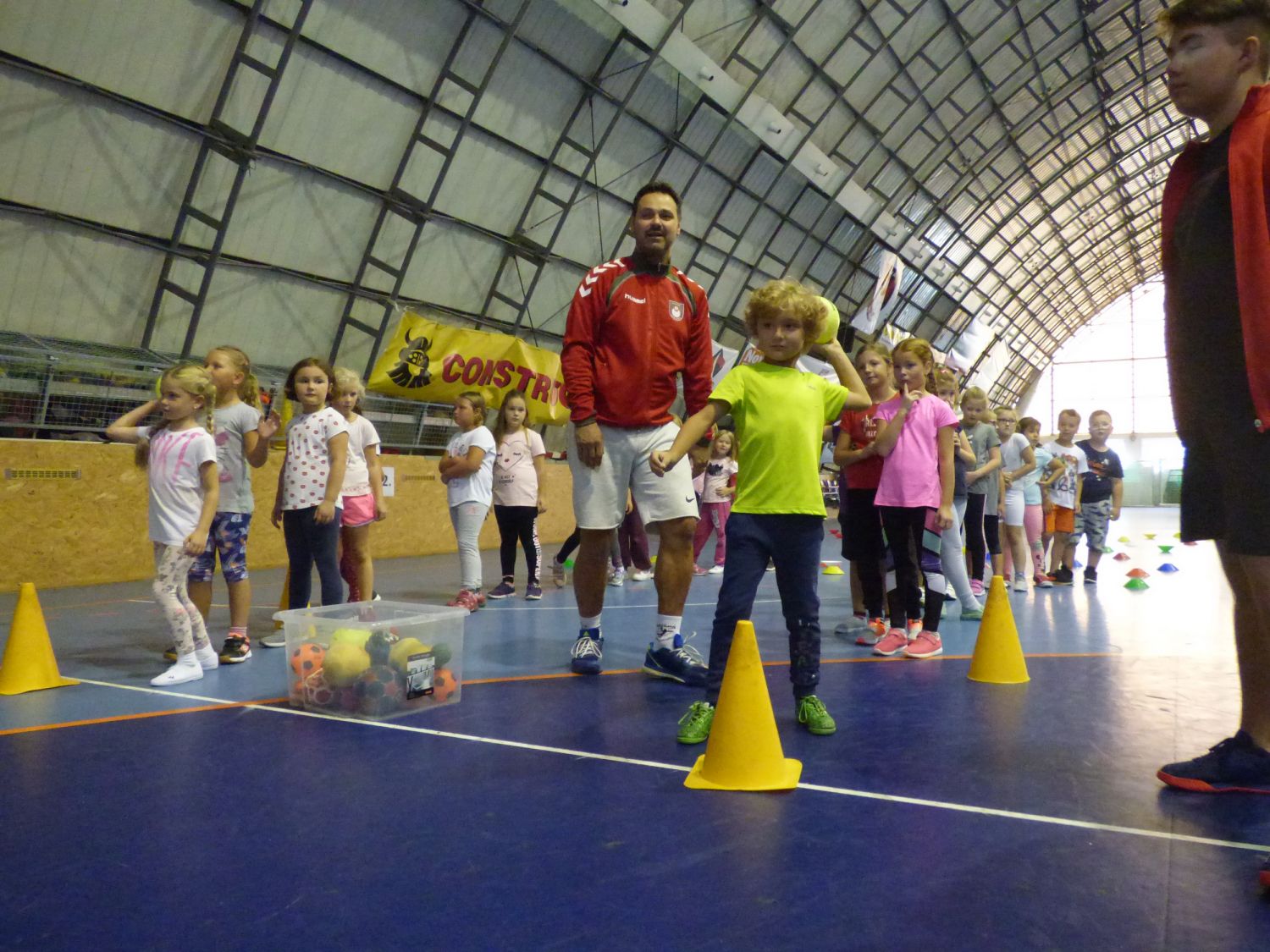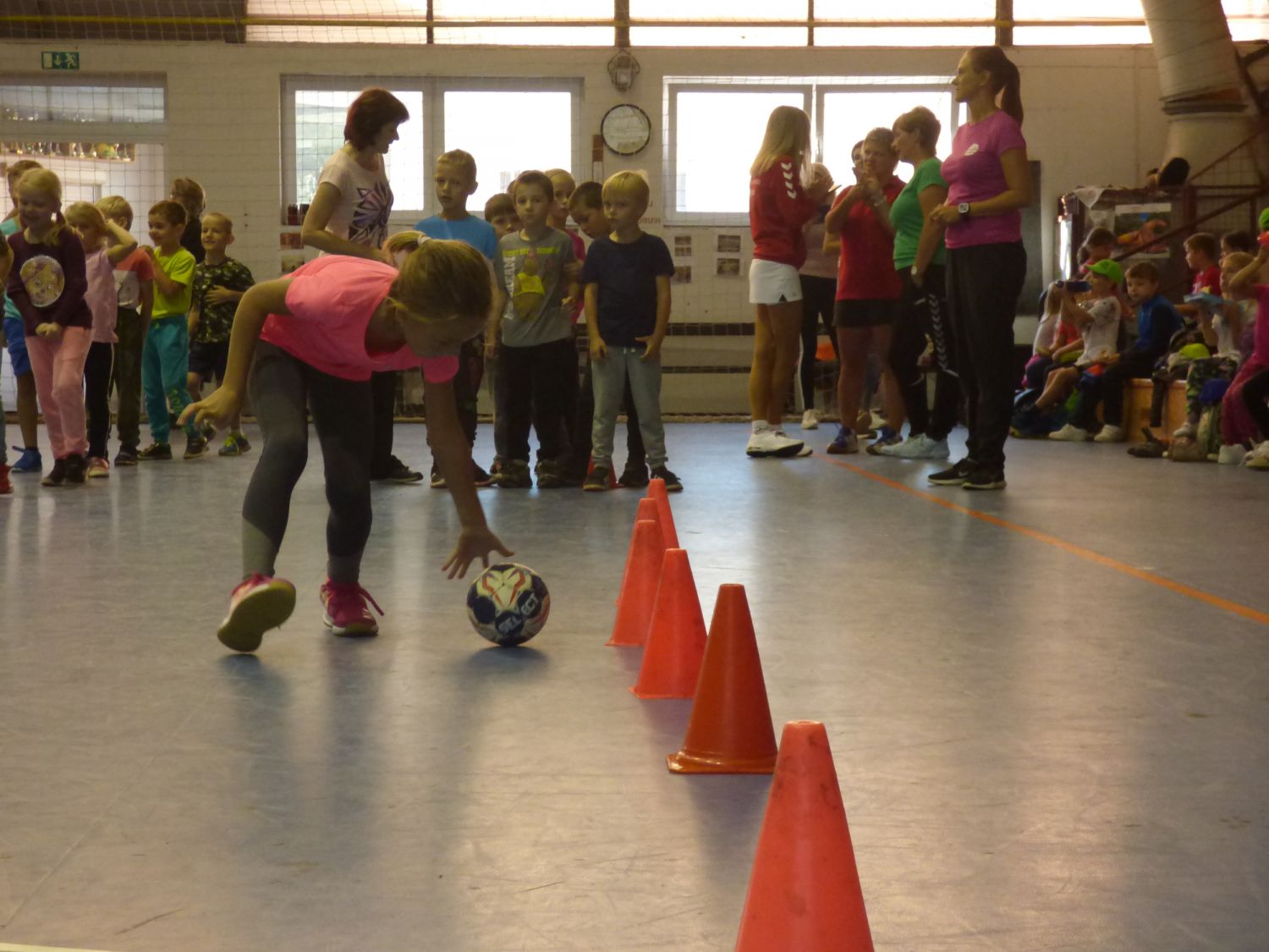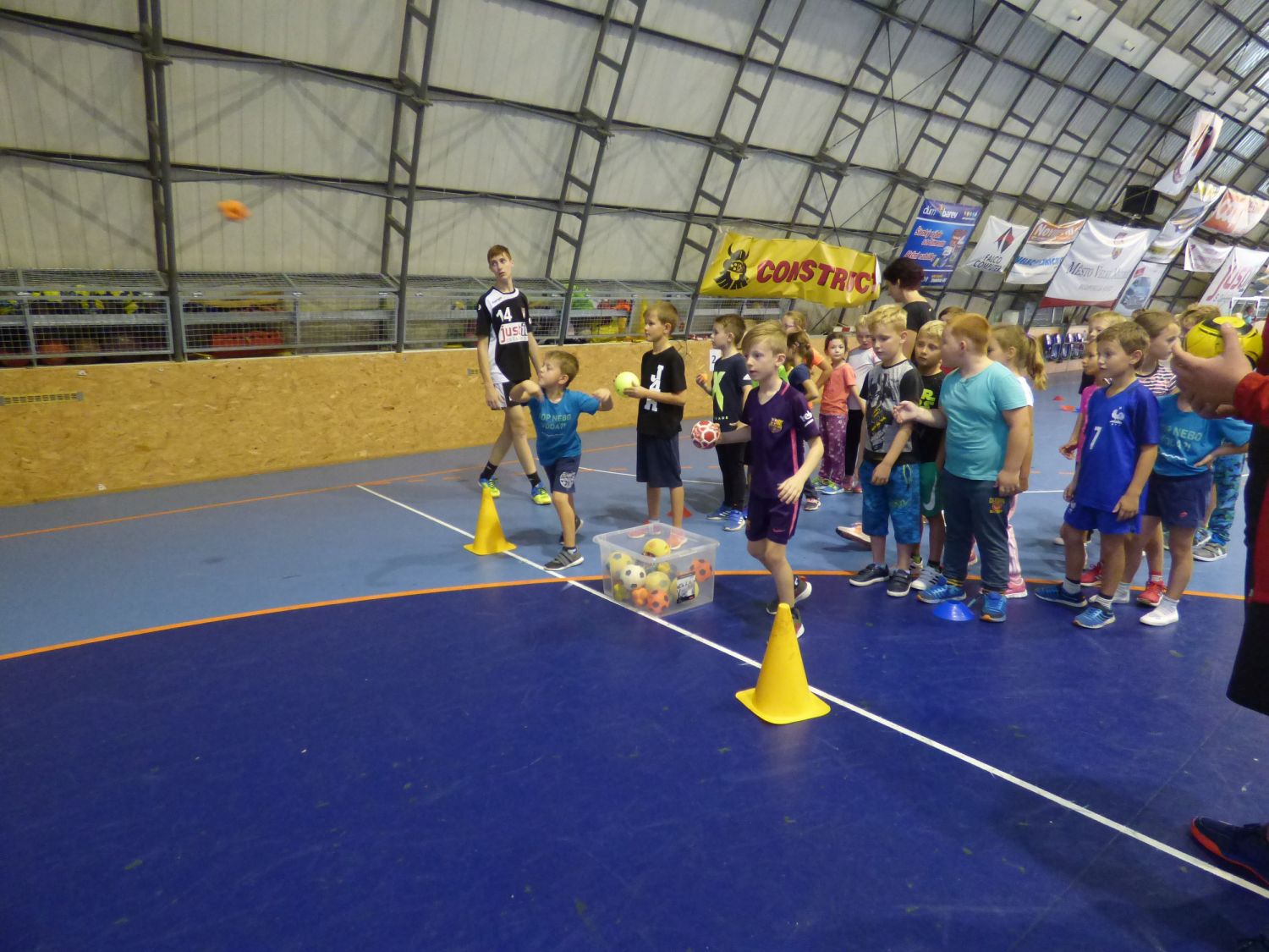 Realizační tým skládající se z hráčů a trenérů házené i miniházené připravil šest stanovišť se zaměřením na obratnost dětí. Žáci se seznámili s míčem, který je menší a měkký, mnozí z nich otupili svůj strach z „rány" míčem. Stanoviště obsahovaly hod na cíl, hod na bránu, kutálení, předání míče, sbírání a překážkovou dráhu.