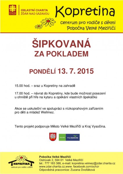 Hru pro ně pořádá centrum pro rodiče s dětmi Kopretina ve spolupráci s nízkoprahovým zařízením pro děti a mládež Wellmez. Sraz je v 15 hodin u Kopretiny na zahradě, předopkládaný návrat v 17.00. Po skončení je pak na zahradě posezení u ohně s opékáním (vlastních) špekáčků.
