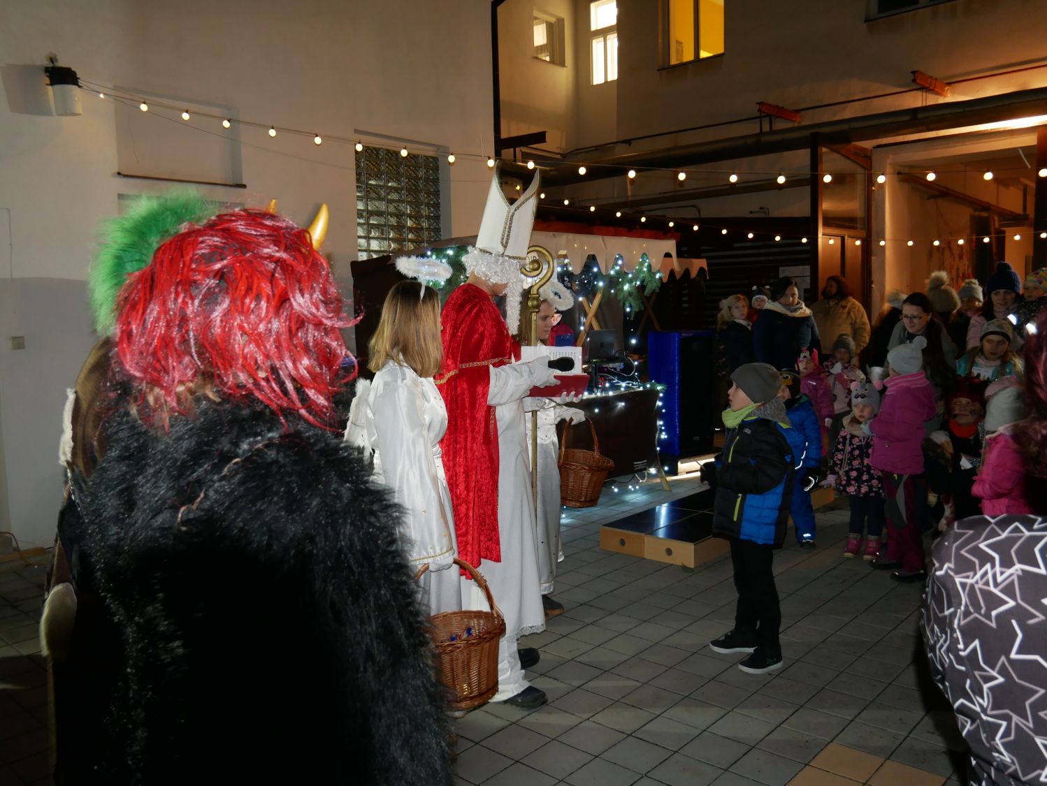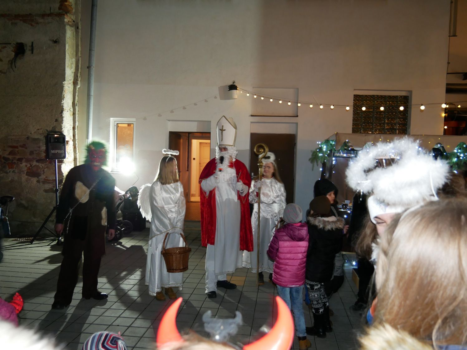 Předvánoční akce nabídla dětem možnost zapojit se do programu plného soutěží, tancování a odnést si domů vlastnoručně vyrobený dárek z tvořivé dílničky. Statečné děti za zarecitovanou básničku nebo zazpívanou písničku odměnil také Mikuláš. Andělské a čertovské občerstvení pro všechny návštěvníky připravili kuchtíci z kroužku Mlsná vařečka. Během celého odpoledne, které se neslo ve sváteční atmosféře, se všichni mohli občerstvit tradičním vánočním punčem, opéct si pekelný buřtík nebo zatancovat na písničky DJ Pavlixe.