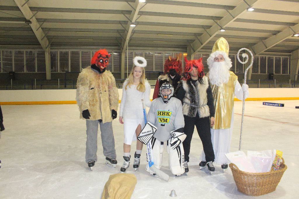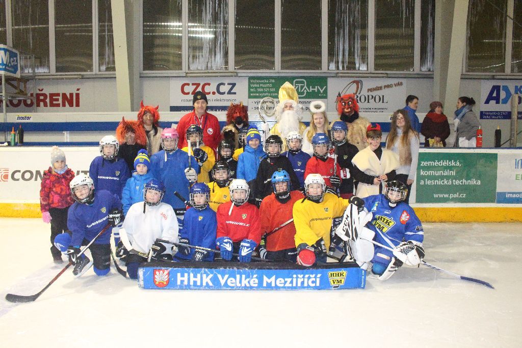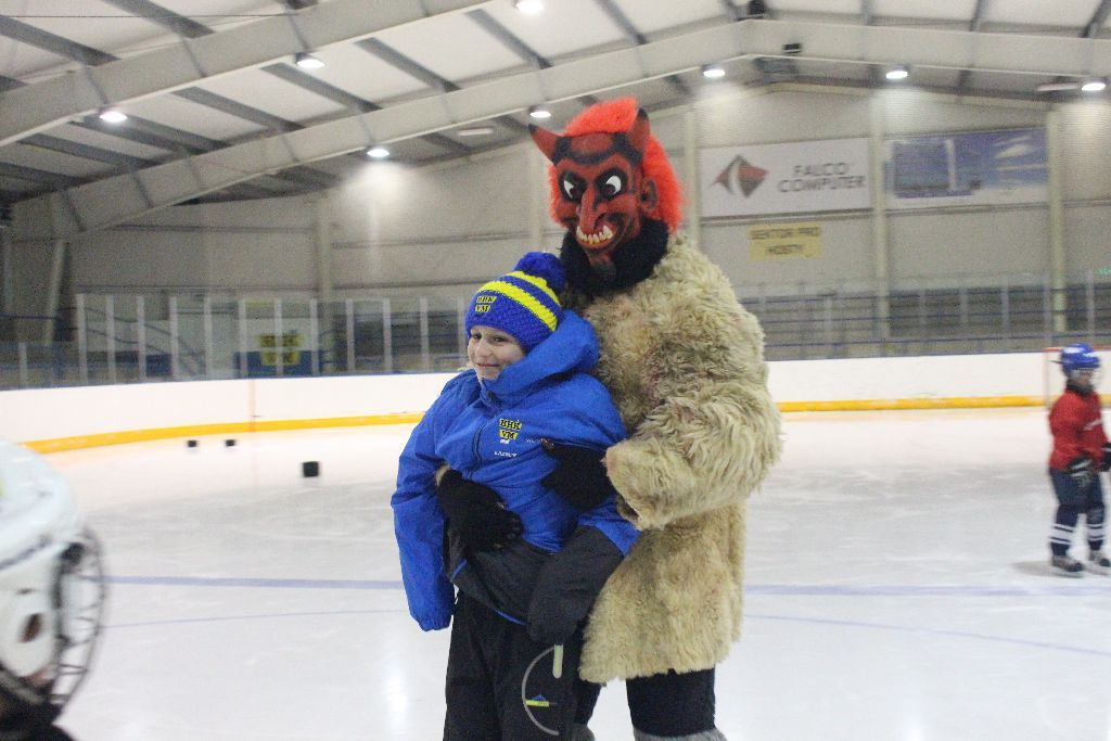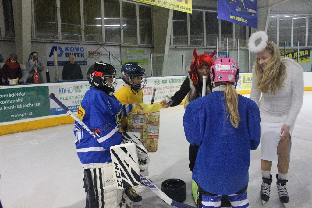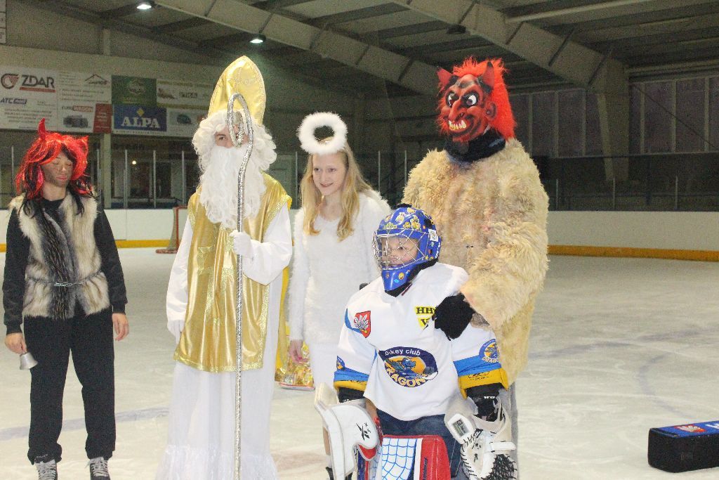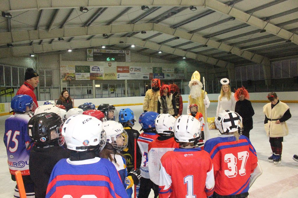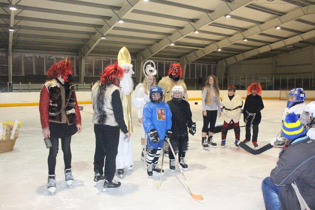 Již tradičně v prvním prosincovém týdnu navštěvuje naše nejmladší bruslaře na tréninku Mikuláš se svou družinou. Nejinak tomu bylo i letos. Nejdřív se čerti divoce proháněli po ledě a hledali, koho by si vzali s sebou do pekla. Naštěstí Mikuláš s trenérem pomohli a hříšníci mohli odčinit své prohřešky básní či písní. I přesto se v řadách našich mladých talentů našli tací, kteří uronili pár slz, když zpytovali svědomí. Sladká odměna nakonec a příslib další návštěvy poté ukončili setkání s Mikulášskou družinou.