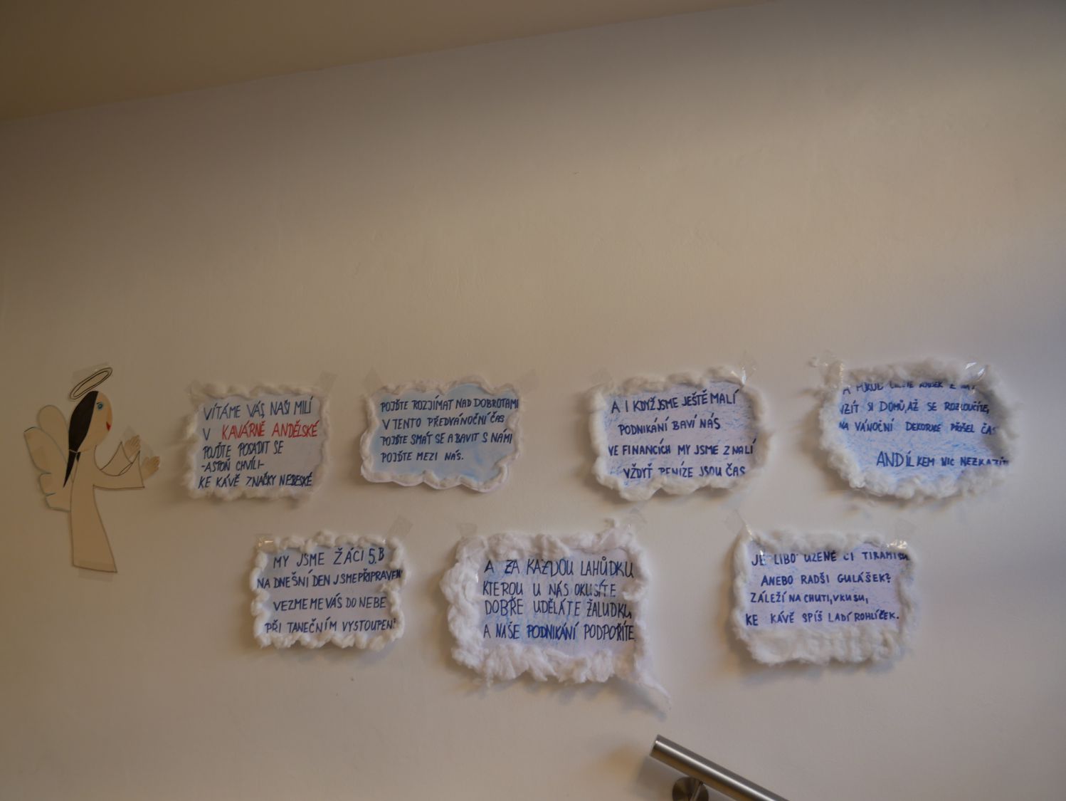 Ve středu 4. prosince 2019 se v České spořitelně konal předvánoční jarmark firmy Andělská kavárna žáků 5.B ze Základní školy Školní. Tímto odpolednem byl završen tříměsíční zážitkový program finanční gramotnosti Abeceda peněz.