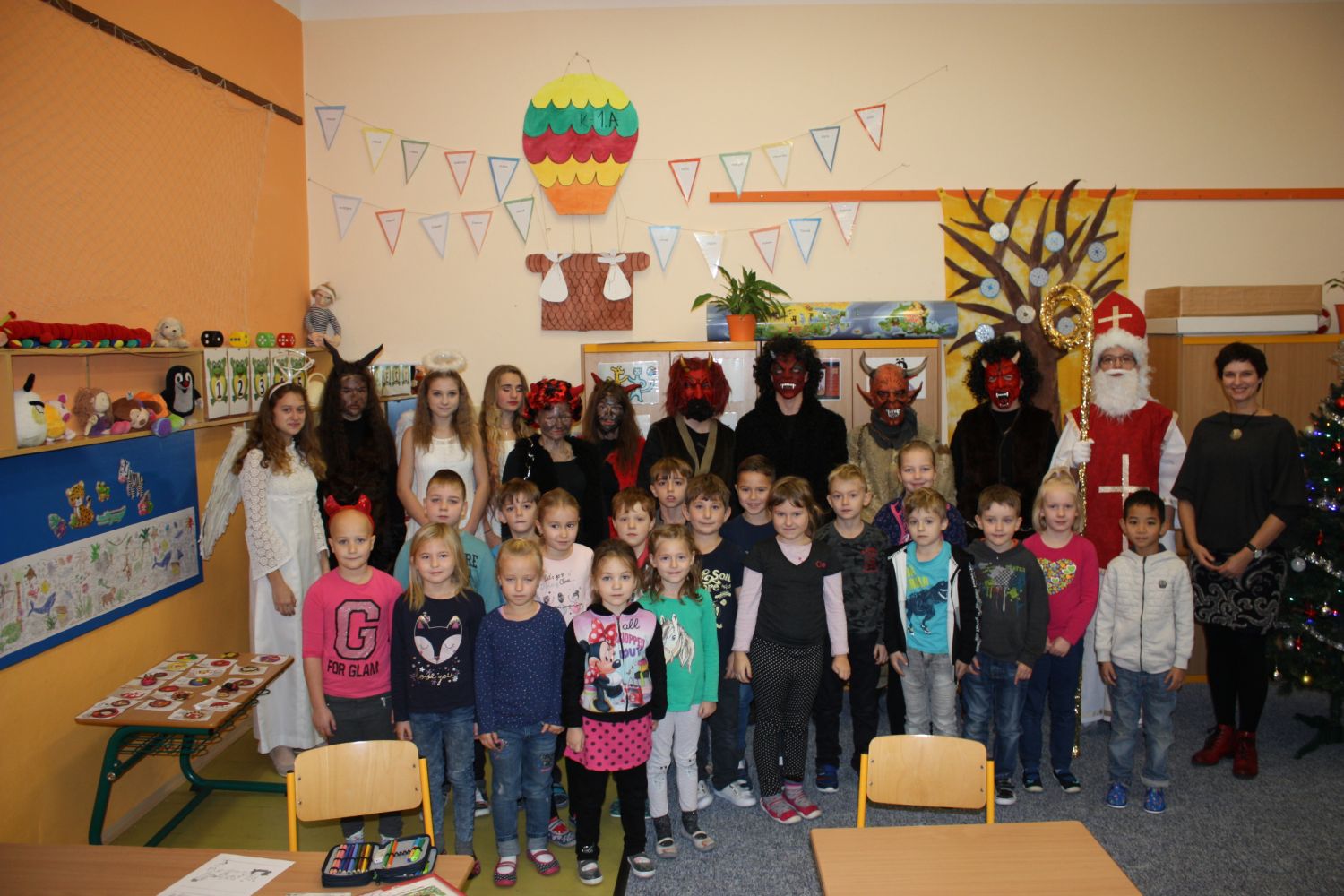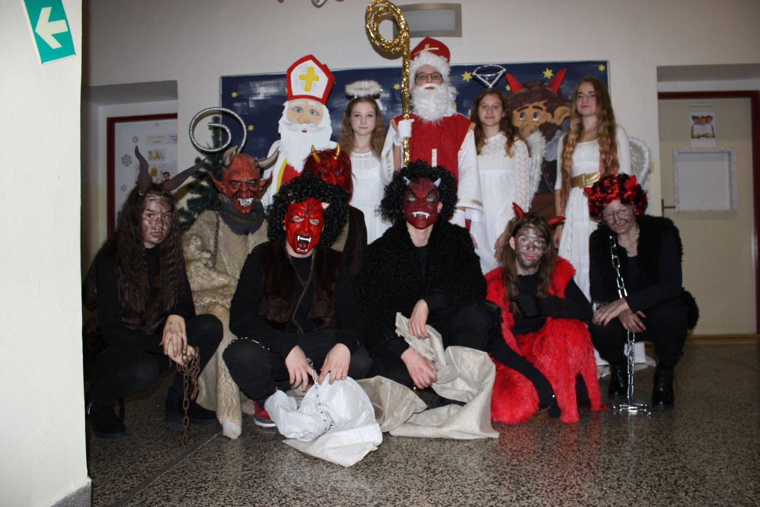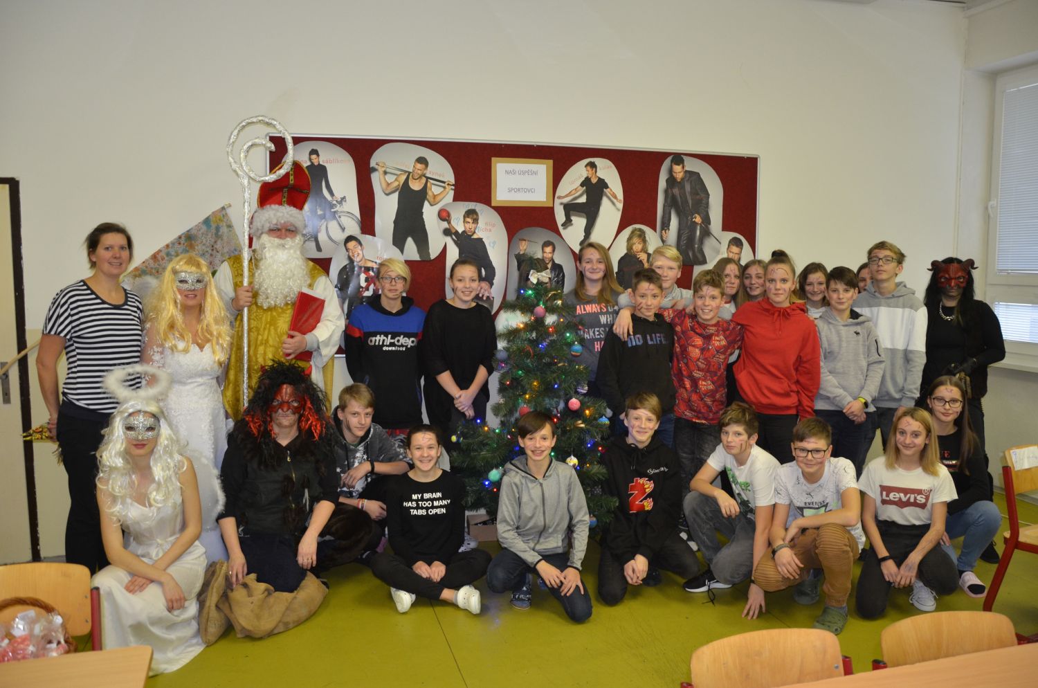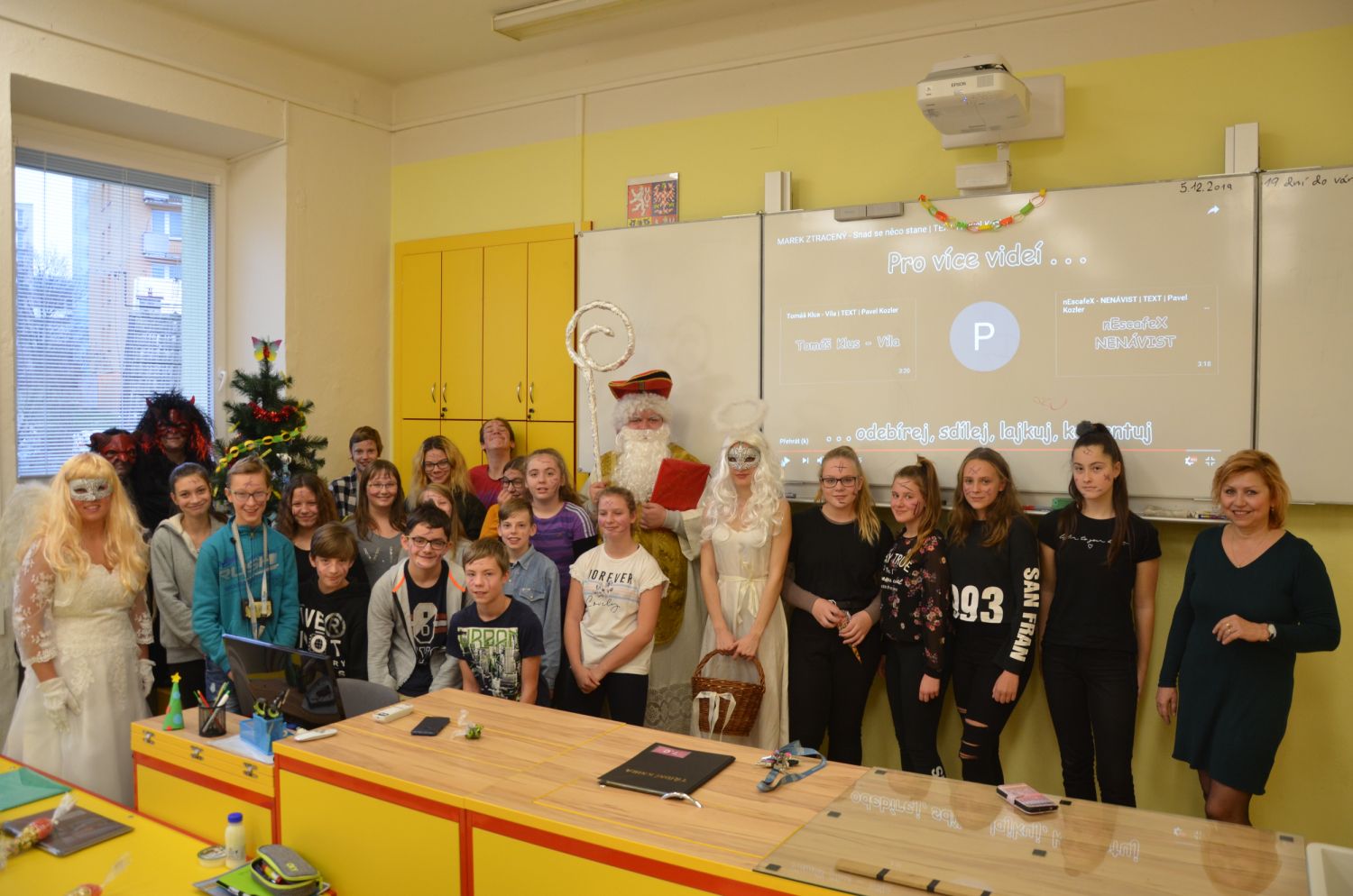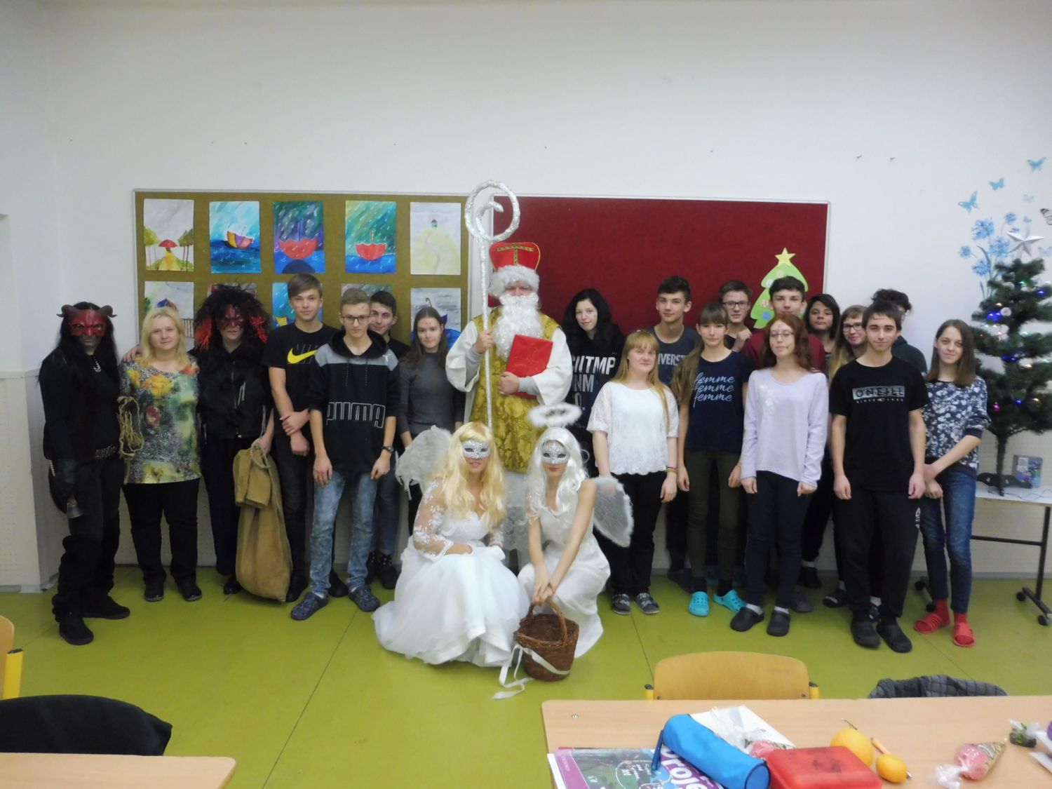 Rok se s rokem sešel a naši školu pátého prosince opět navštívil Mikuláš doprovázen krásnými anděly a zuřivými pekelníky. Proto děti již od brzkého rána pozorně naslouchaly řinčení řetězů linoucímu se školními chodbami a netrpělivě vyčkávaly.