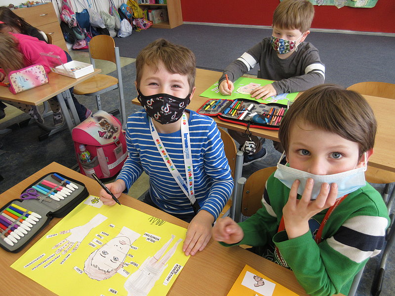 V prvních třídách naší školy probíhalo v lednu projektové vyučování na téma „Člověk a jeho zdraví". Žáci se v hodinách prvouky naučili určovat jednotlivé základní části těla, které jsou vidět, popisovali je podle obrázků i podle skutečnosti. Naučili se pojmenovat lidské smysly a jejich čidla. Děti pochopily význam péče o své zdraví, povídaly si o tom, co může a nemůže člověka během života ovlivnit, jak je důležité se orientovat v základních lidských potřebách. Upevnily si návyky osobní hygieny, odpočinku i aktivního pohybu. Pochopily, proč je nebezpečné požití návykové látky a připomenuly si nebezpečí ohrožení při setkání s neznámými lidmi. Procvičily si stolování jako společnou činnost v rodině vytvářející pocit domova.