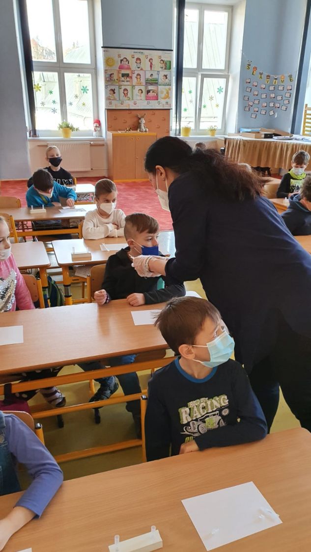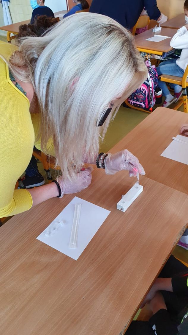 Děti vstupovaly do budovy školy v časových intervalech a za doprovodu asistenta odcházely do svých tříd. Dle pokynů paní učitelky, doprovázených instruktážním videem, bylo provedeno samotné testování. Všechny děti testování zvládly a veškeré provedené testy byly negativní.