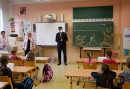 Základní školu Sokolovskou bude od nynějška navštěvovat 25 prvňáčků z toho 16 chlapců. Slavnostně je přivítal ředitel školy Karel Kaštan, který začal velkou pochvalou, protože žáci na jeho otázku reagovali rovnou zdvihnutím paže. Slovo předal místostarostovi města Františku Smažilovi. „Sešli jste se v první třídě, kde máte šanci získat nové kamarády. Věřte tomu, že přátelství ze základní školy mnohdy přetrvá celý život," přál Smažil. Ředitel školy před odchodem uvedl třídní učitelku Pavlínu Ondráčkovou slovy: „Příštích pět let vás povede skvělá třídní učitelka." Děti si od Kraje Vysočina jako dárek odnesly bezpečný kufřík.