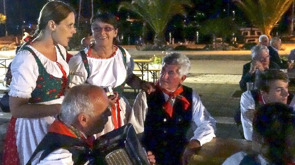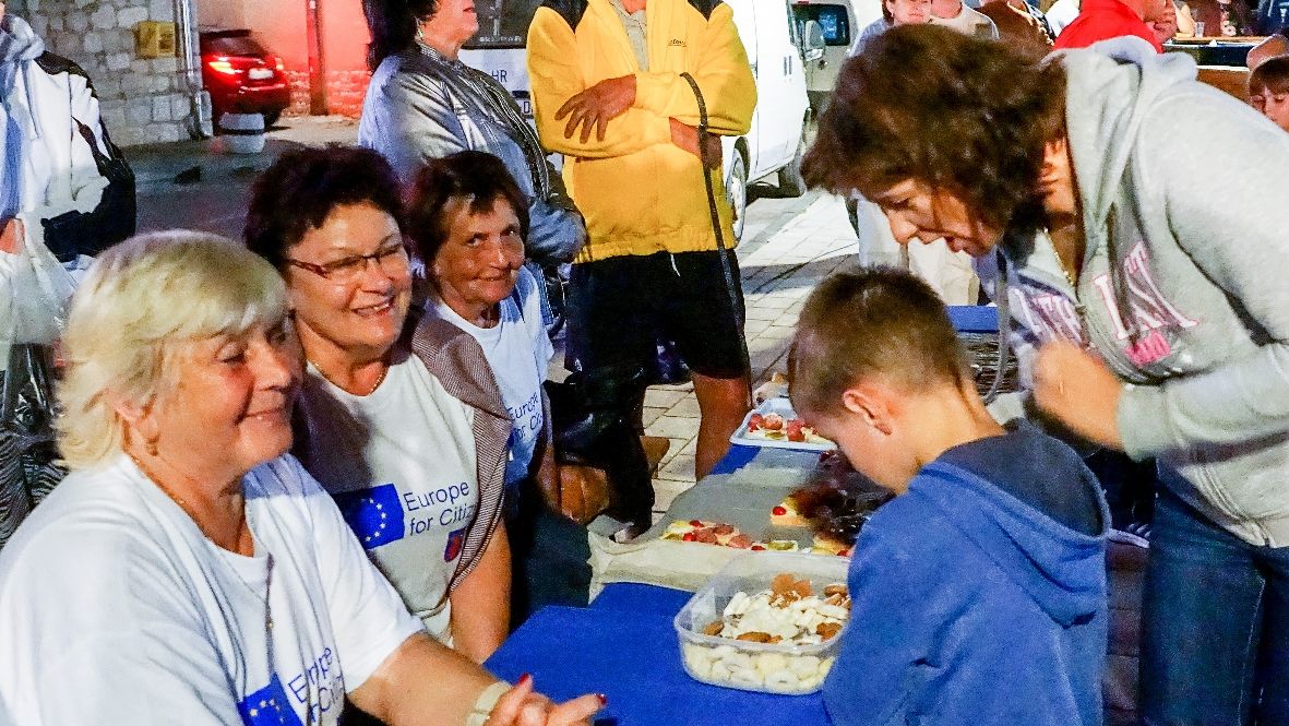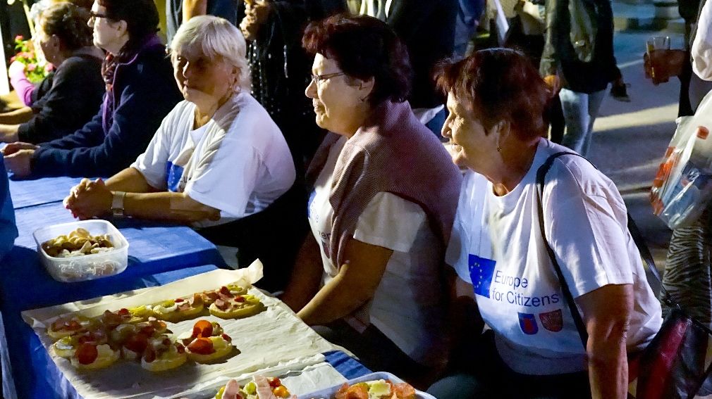V sobotu někteří trávili prohlídkou města Tisna, ti odvážnější na plachetnicích. Sobotní večer byl vlastně vyvrcholením celého pobytu. ZUŠ koncertovala v Tisně, Horáčan a Spolek žen byly Jezeře, kde na náměstí, v bezprostřední blízkosti moře právě vrcholily Tradiční dny dalmatské kultury. Mužské, ženské i smíšené soubory tančily a zpívaly a náš Horáčan se mezi nimi rozhodně neztratil a dobře naše město reprezentoval. Spolek žen se tam také neztratil. Pro účinkující i obecenstvo připravil občerstvení: naše tradiční obložené chlebíčky a drobné české cukroví. To ženy napekly už doma. Chlebíčky připravovaly ten den odpoledne. Byly potěšeny, že po chvilce rozpaků občerstvení začalo před očima mizet. Ti, co ochutnali, se vraceli, na ty, co dlouho váhali, bohužel nic nezbylo.