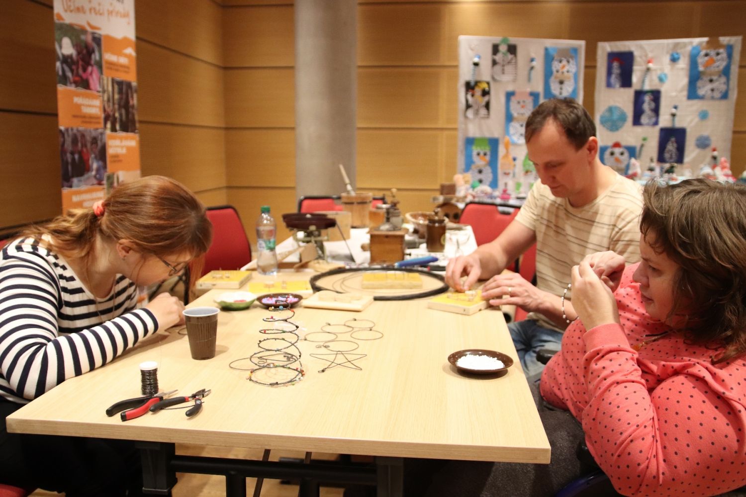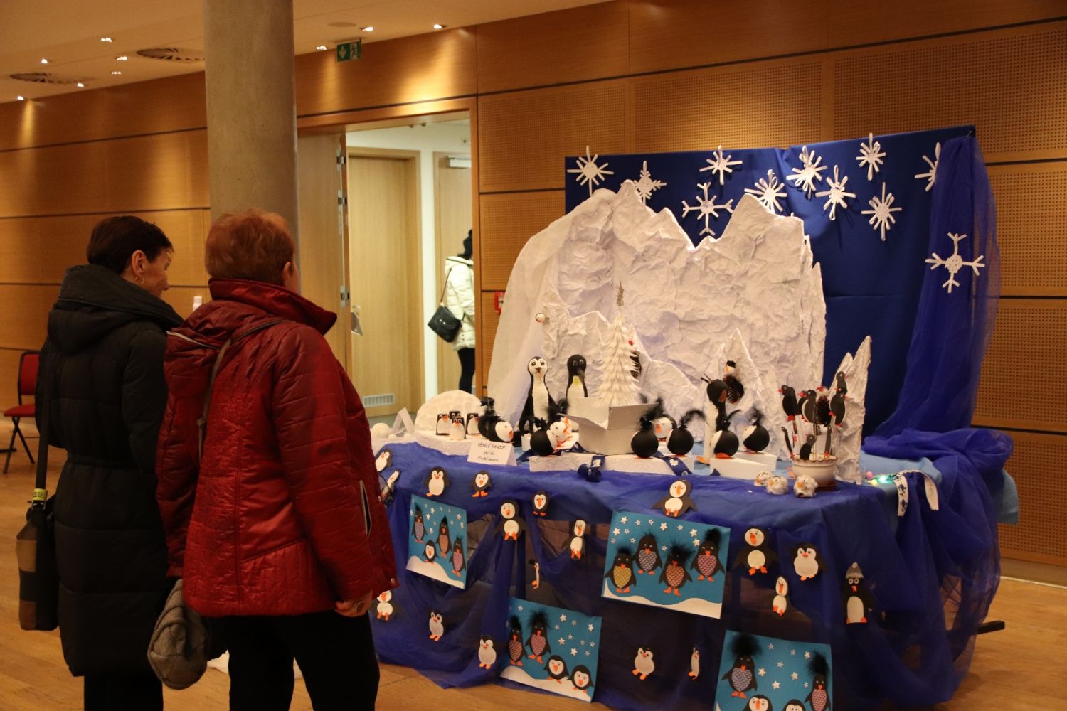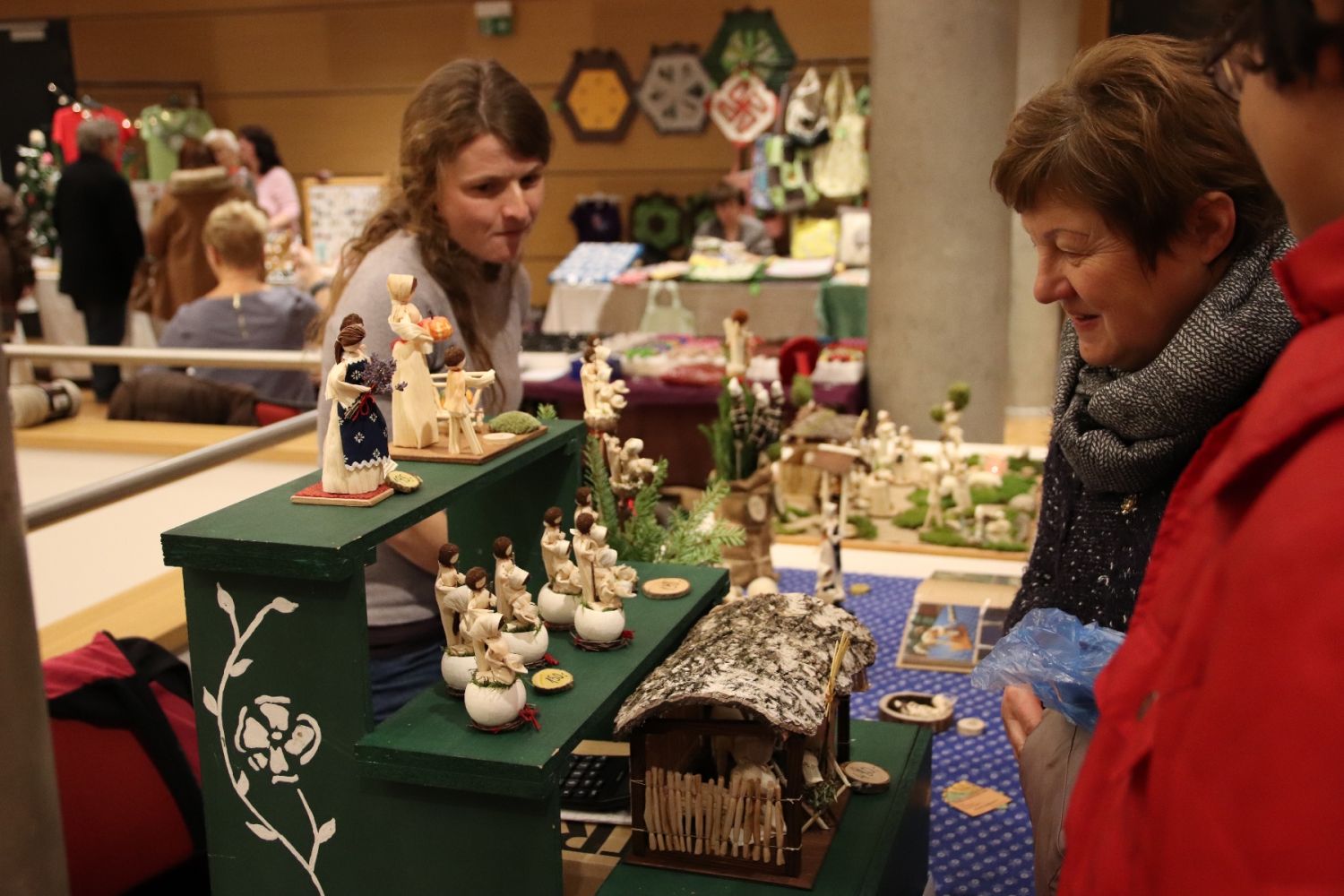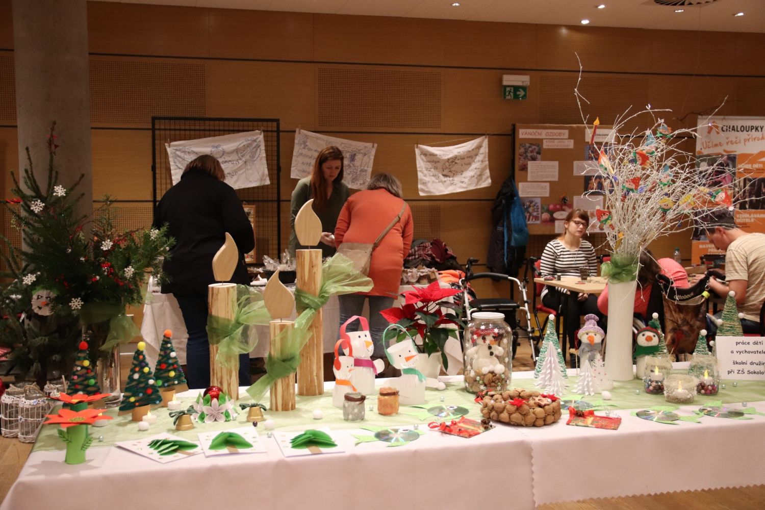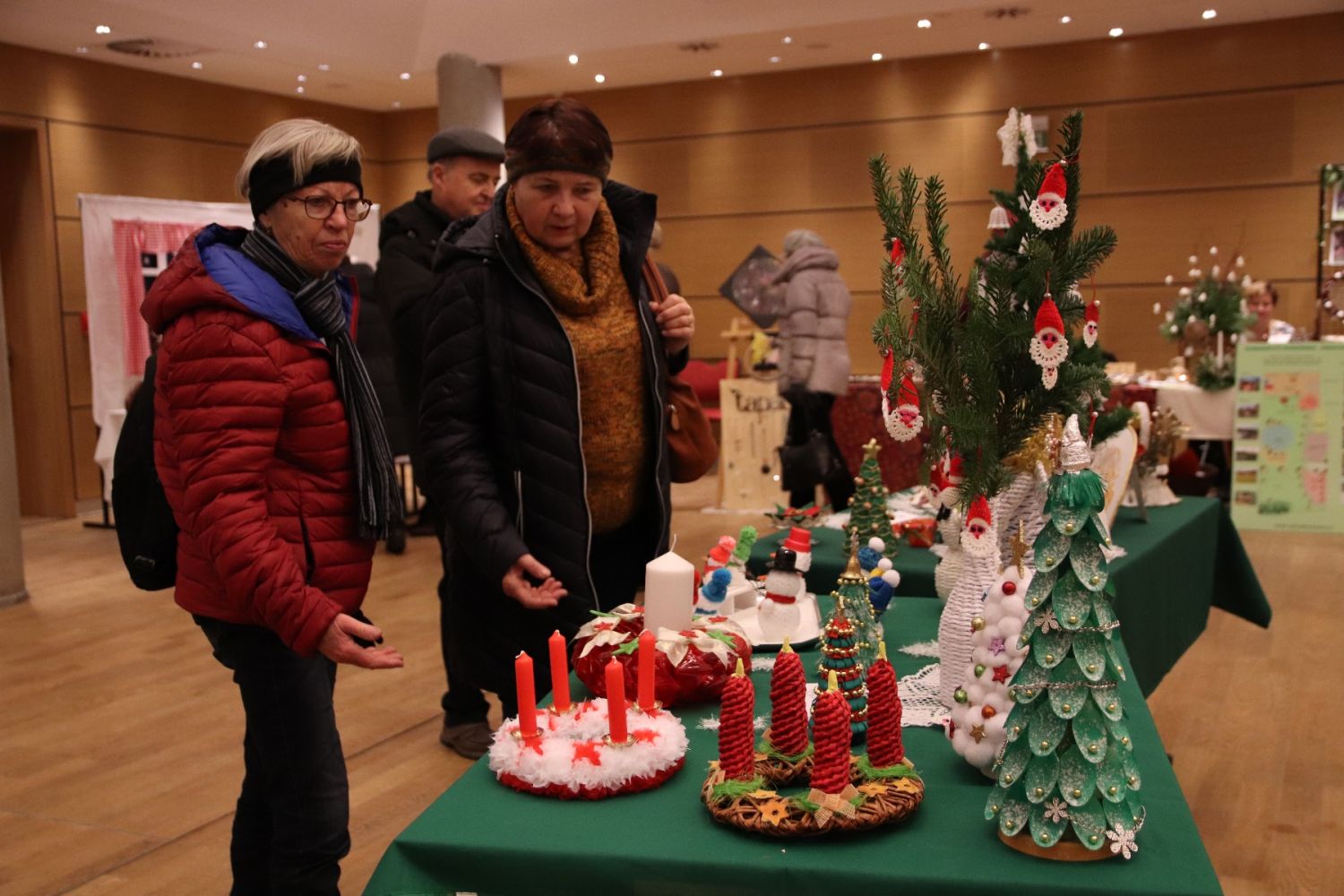 Stoly jsou zaplněny betlémy ze šustí, háčkovanými ozdobami, suchými vazbami, kovanými i dřevěnými výrobky, svíčkami, adventními věnci, zdobenými perníčky. Přímo na místě klienti z Březejce tvoří z keramické hlíny, ke koupi je spousta drobných dárků včetně olejů z Petrávče nebo háčkovaných zvířátek. Návštěva výstavy určitě stojí za to.