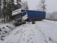 U obce Chlumek ve směru na Měřín, je hlášený kamion, který zablokoval komunikaci, která je neprůjezdná a vozovka v místě zledovatělá. Dále je hlášen uvízlý kamion za obcí Milíkov ve směru na Pavlov na Žďársku, kde kamion zablokoval vozovku. Místo je s opatrností průjezdné pro osobní vozidla. Další odstavená nákladní vozidla jsou v obci Černá a v obci Pavlov na Žďársku.