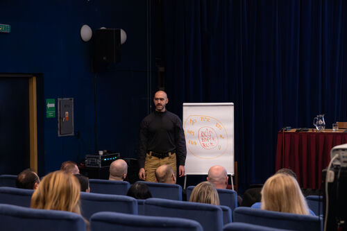 Strážníci městských policií z Kraje Vysočina (Velké Meziříčí, Chotěboř, Jihlava, Moravské Budějovice, Třebíč, Velká Bíteš, Žďár nad Sázavou, Tišnov) se v pondělí 24. února v kinosále Jupiter clubu účastnili semináře na téma Krizová komunikace a vyjednávání. Ta proběhla v rámci zvyšování profesní kvalifikace strážníků a vedl ji bývalý elitní policejní vyjednavač pražské zásahové jednotky Karel Pošíval, který má sedmnáctiletou praxi v oboru.