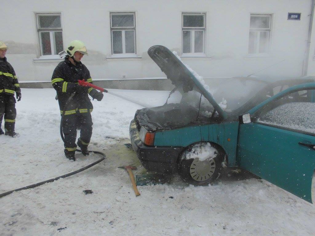 Hasiči nalezli uvnitř vyhořelého auta v Křižanově mrtvého muže