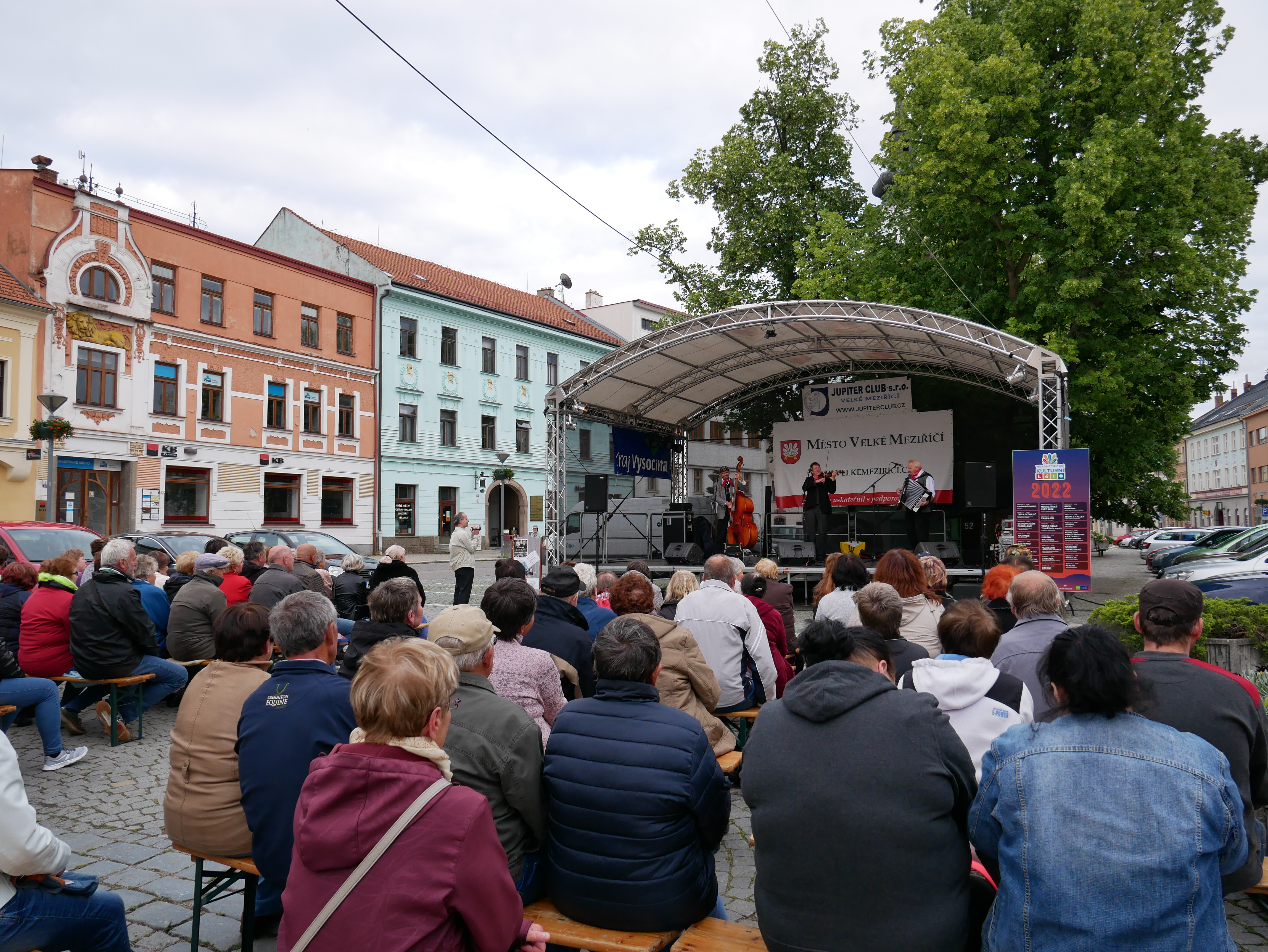 V nedělní podvečer se na velkomeziříčském náměstí představila skupina zvaná Staropražští pardálové. Tato kapela hraje a zpívá především písně staropražské, lidové, ale také nejpopulárnější hity Karla Hašlera. V repertoáru má i světové šlágry, a na adventních koncertech zpívají také vánoční písně a koledy.