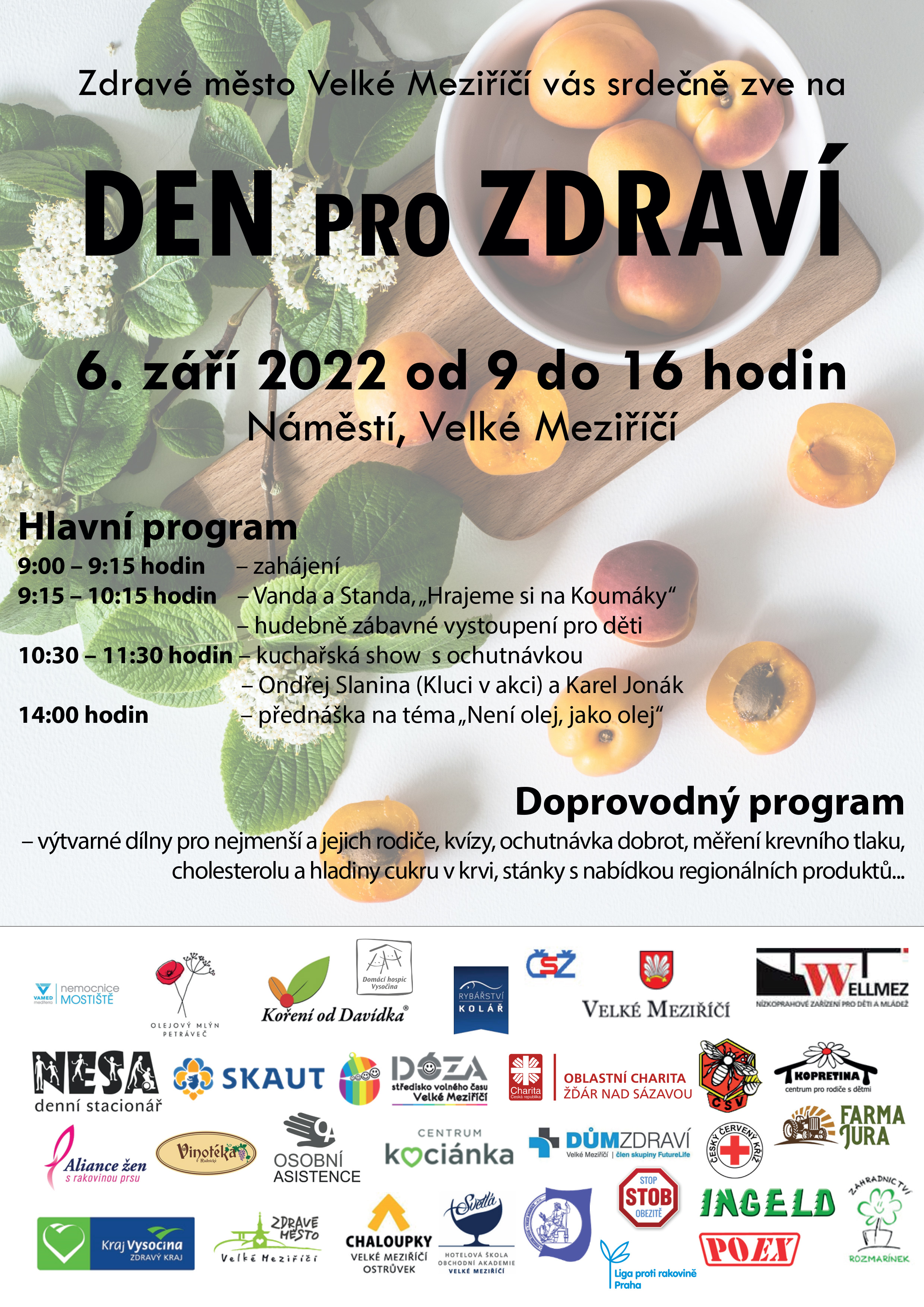 Zdravé město Velké Meziříčí pořádá tradičně na začátku nového školního roku Den pro zdraví. Ten proběhne v úterý 6. září 2022 od 9 do 16 hodin na velkomeziříčském náměstí.