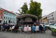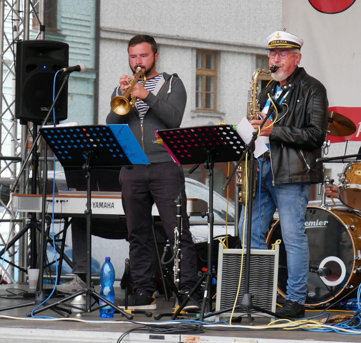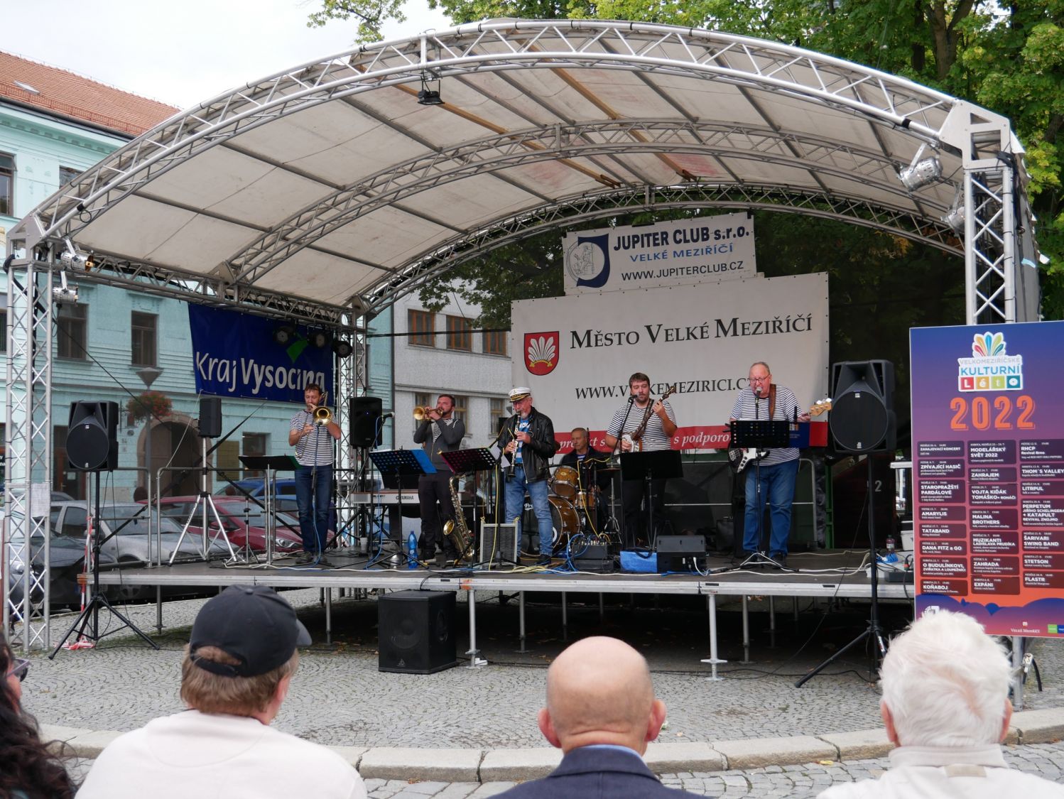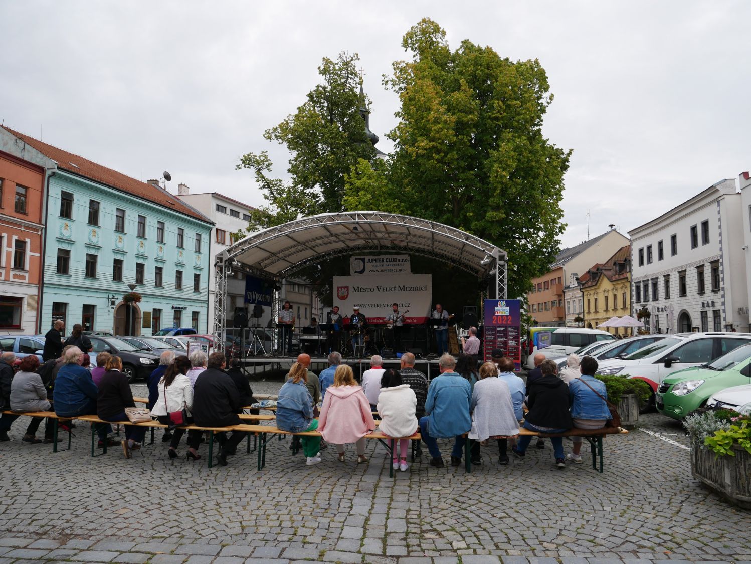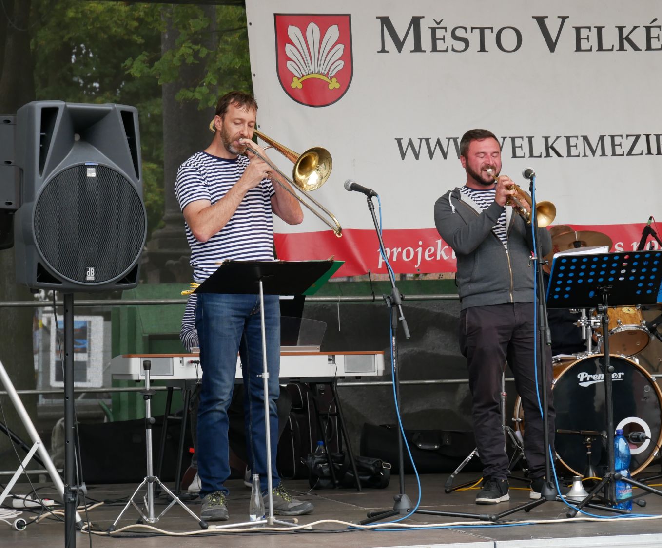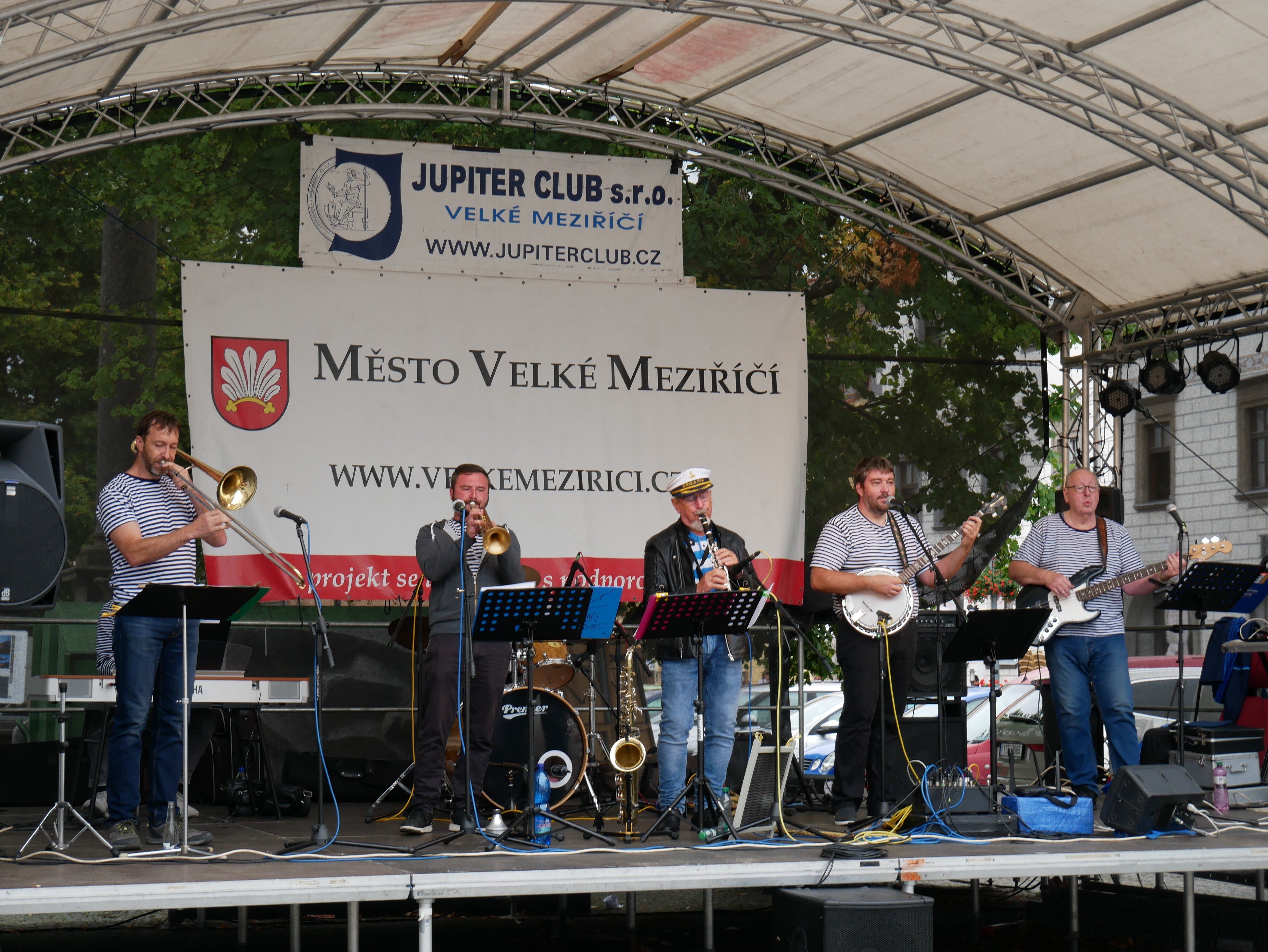 Na velkomeziříčském náměstí se v neděli představila kapela Šarivari swing band, skládající se ze sedmi členů.