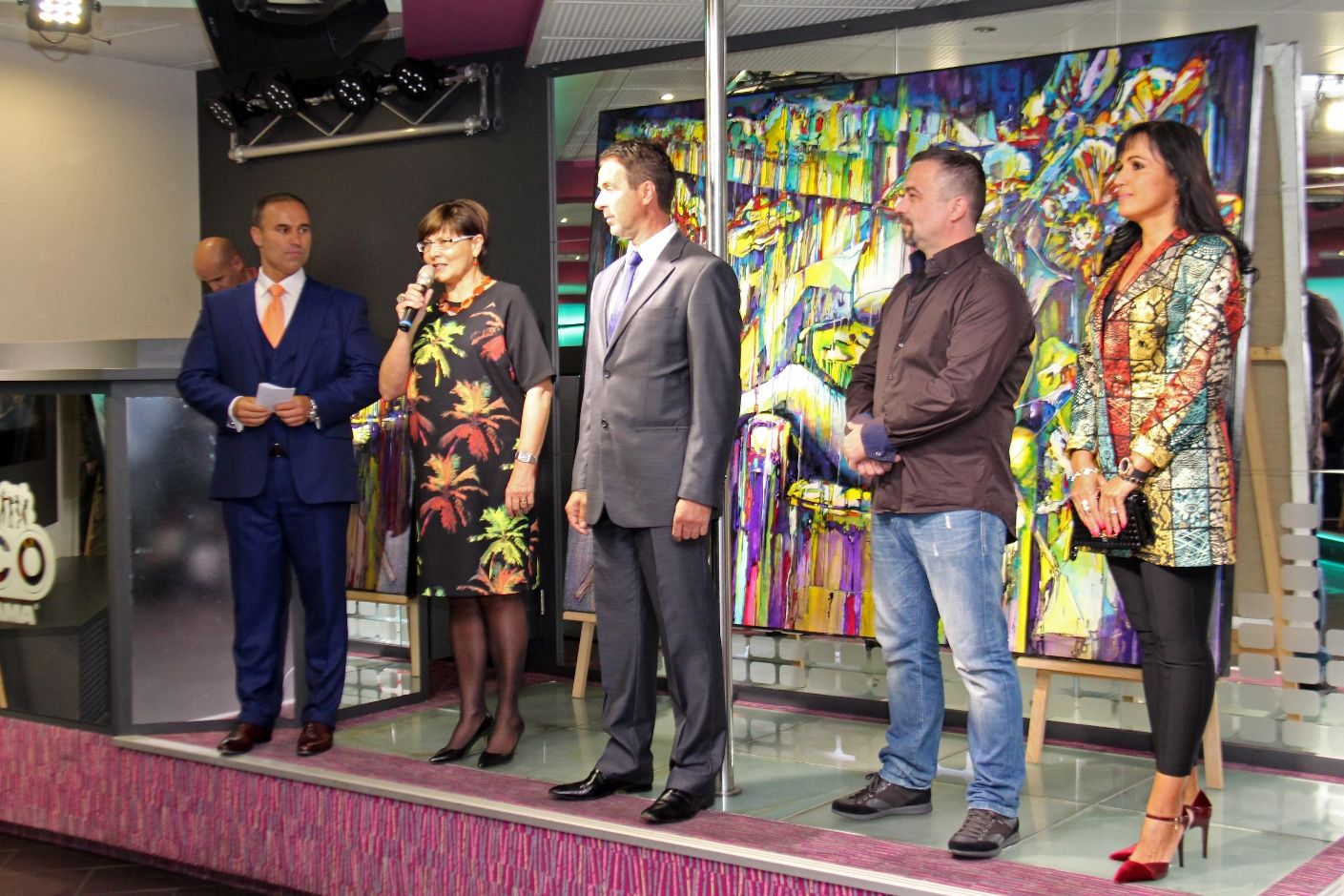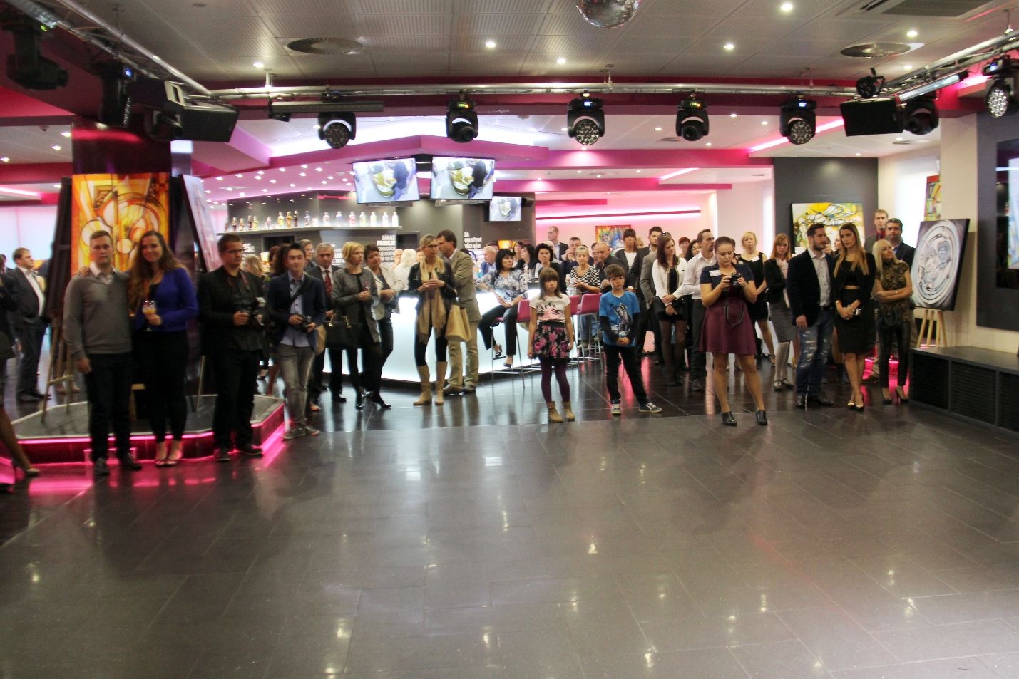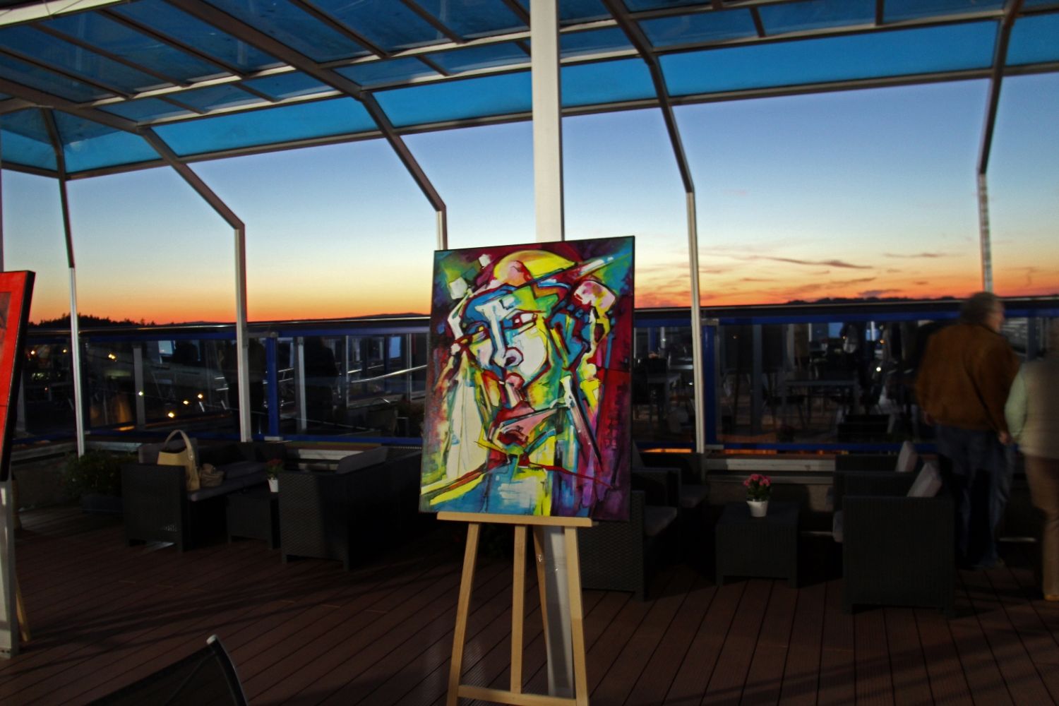 Hosté mohli krom desítek děl vystavených ve všech patrech a prostorách Panoramy včetně terasy zhlédnout třeba i módní přehlídku, nebo bodypainting v podání umělce. Ten při své malbě nanese třeba i sedmapadesát vrstev barvy. Začne tou nejsvětlejší, tedy bílou, a končí černou. Oblíbené má všechny stejně. „Využívám základní barvy červenou, žlutou a modrou a s nimi se dají namíchat všechny další," sdělil Joe Muczka. Ani umělecký směr nemá vyhraněný. Přes expresionismus se dostal ke kubismu, poté k pop artu. „A teď míchám všechno dohromady," uzavírá Muczka.