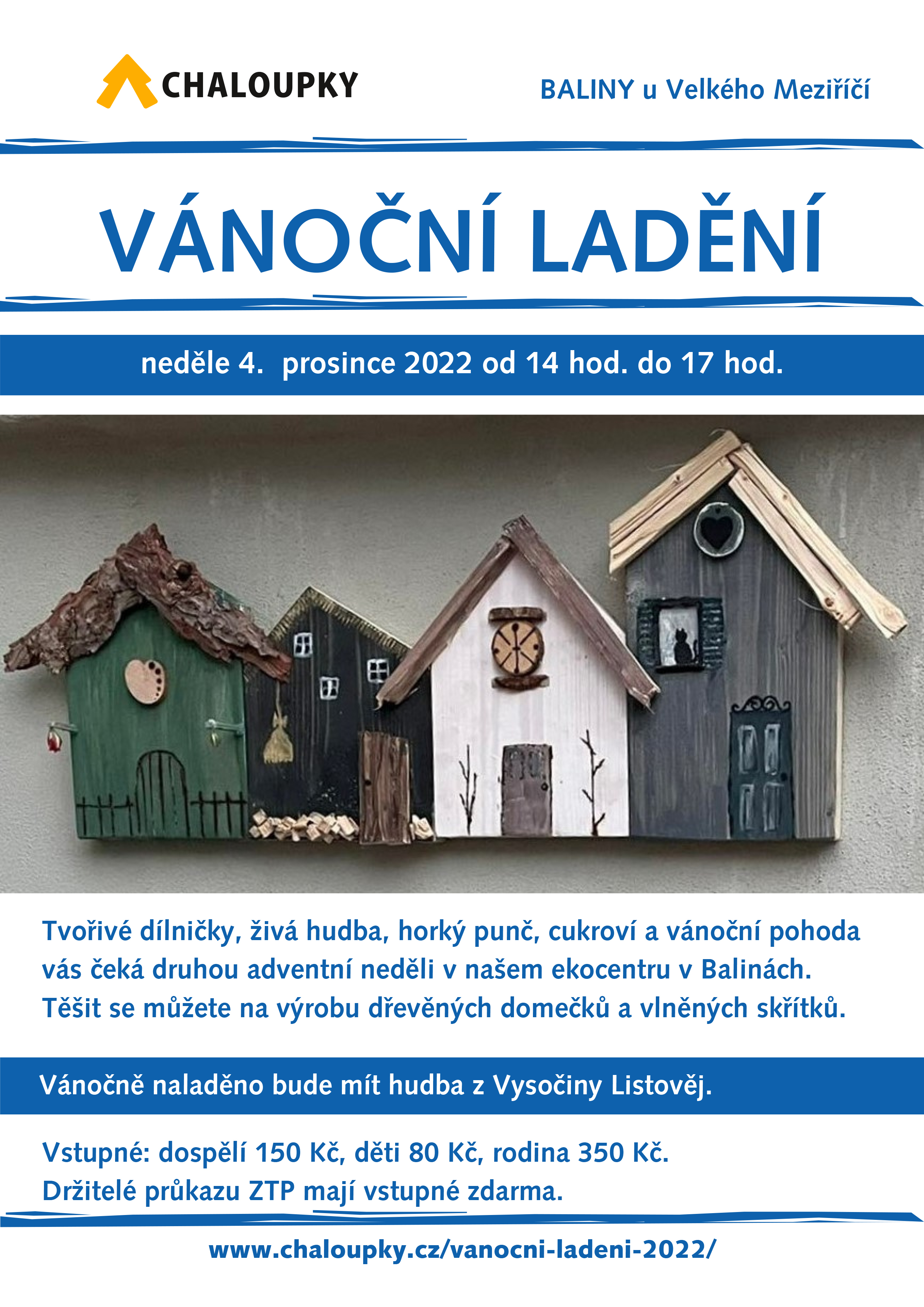 V Balinách u Velkého Meziříčí se v neděli 4. prosince uskuteční takzvané Vánoční ladění. Těšit se můžete na tvořivé dílny, teplý punč, vánoční cukroví, výrobu dřevěných domečků a spoustu dalšího. Chybět nebude ani živá hudba v podání kapely Listověj.