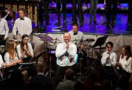 Na závěr první části se na pódiu i pod ním shromáždili členové Tanečního orchestru Josefa Vaňhary, kteří svou rytmickou hudbou a energičností divákům jistě vyrazili dech.