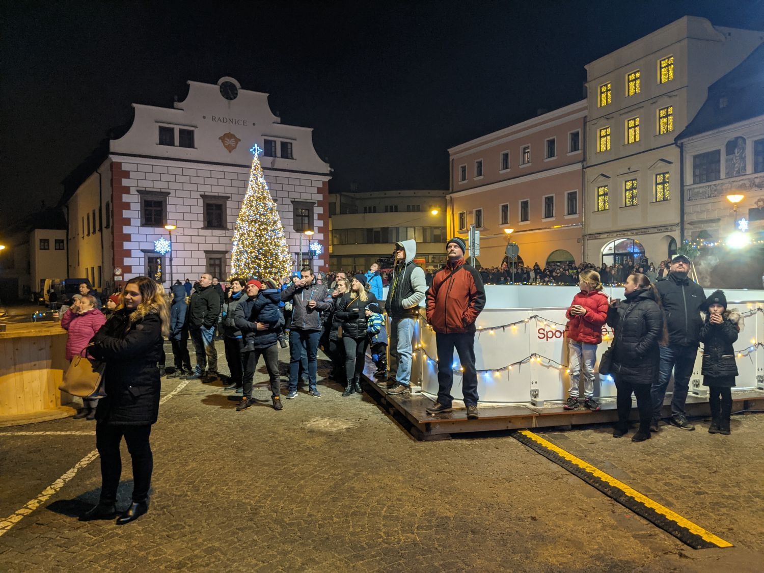 Plné náměstí bylo jasným znamením, že návrat s ohňostrojem do středu města byl dobrý nápad. V loňském roce se sice zářící oblohou mohlo kochat široké okolí Fajtova kopce, ale letos jsme se vrátili do města a nebeské divadlo sledovali pospolu přímo z Náměstí.