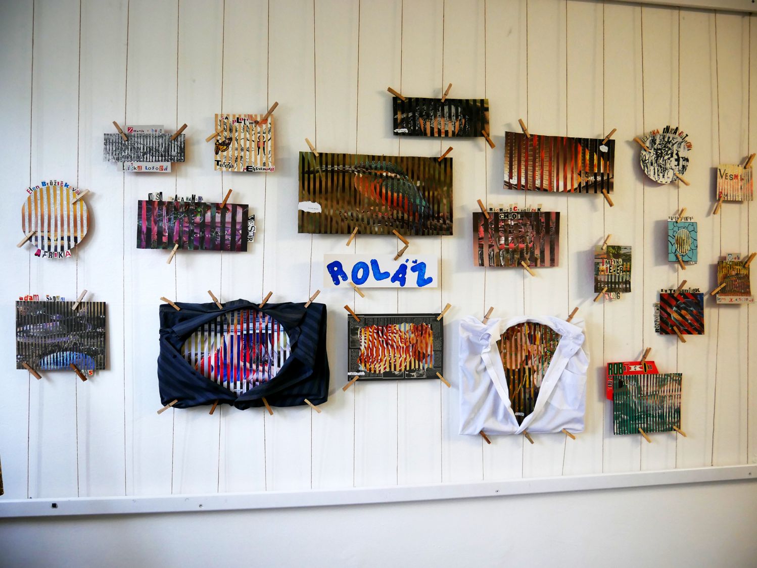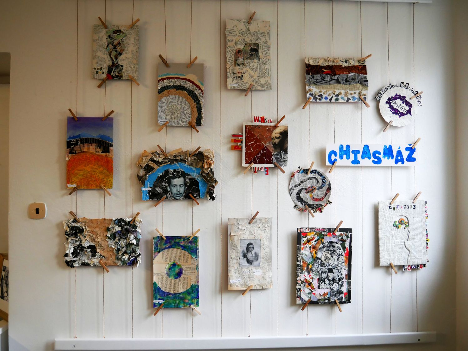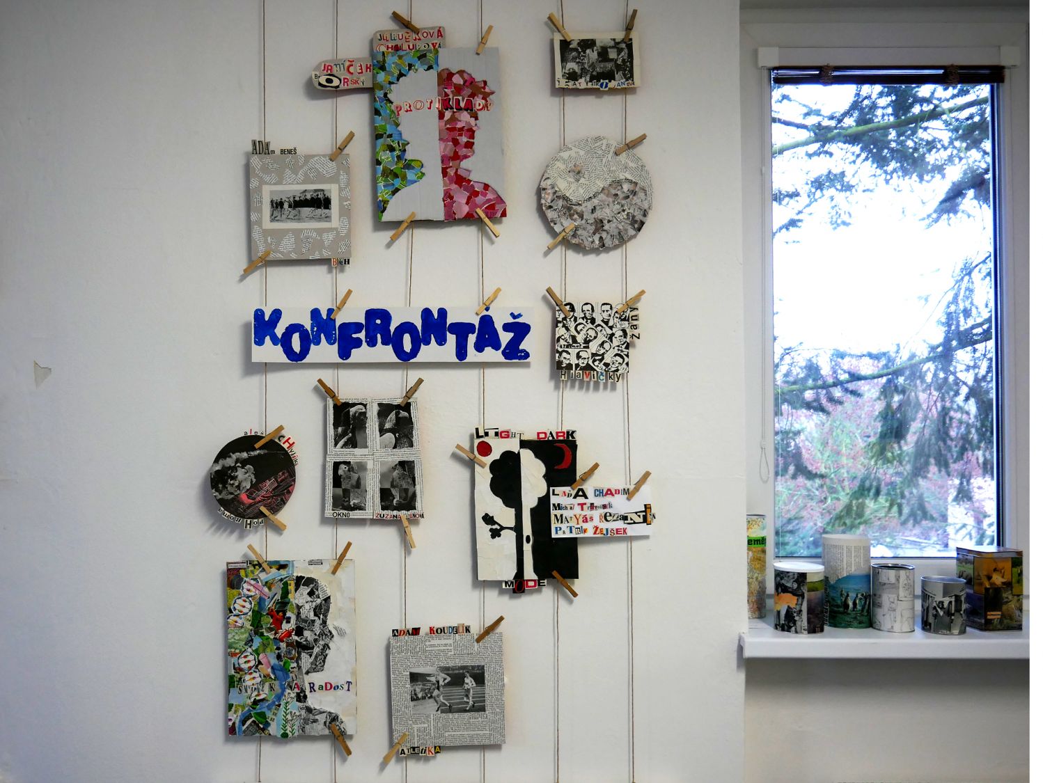 Výstavu pojala učitelka Lenka Muchová se svými žáky i trošku didakticky. „Vždy pospolu jsme nainstalovali jednotlivé druhy koláží, které sám Jiří Kolář nejčastěji ve své tvorbě používal, a takto i skutečně nazýval. Výtvarné směry, do kterých bychom koláže mohli zařadit, představují především surrealismus a také lettrismus. Některé koláže studentů vychází i z konkrétních děl Jiřího Koláře, ale spíše je parafrázují nebo se jimi studenti jen volně inspirovali," vysvětlila vznik výstavy Lenka Muchová.