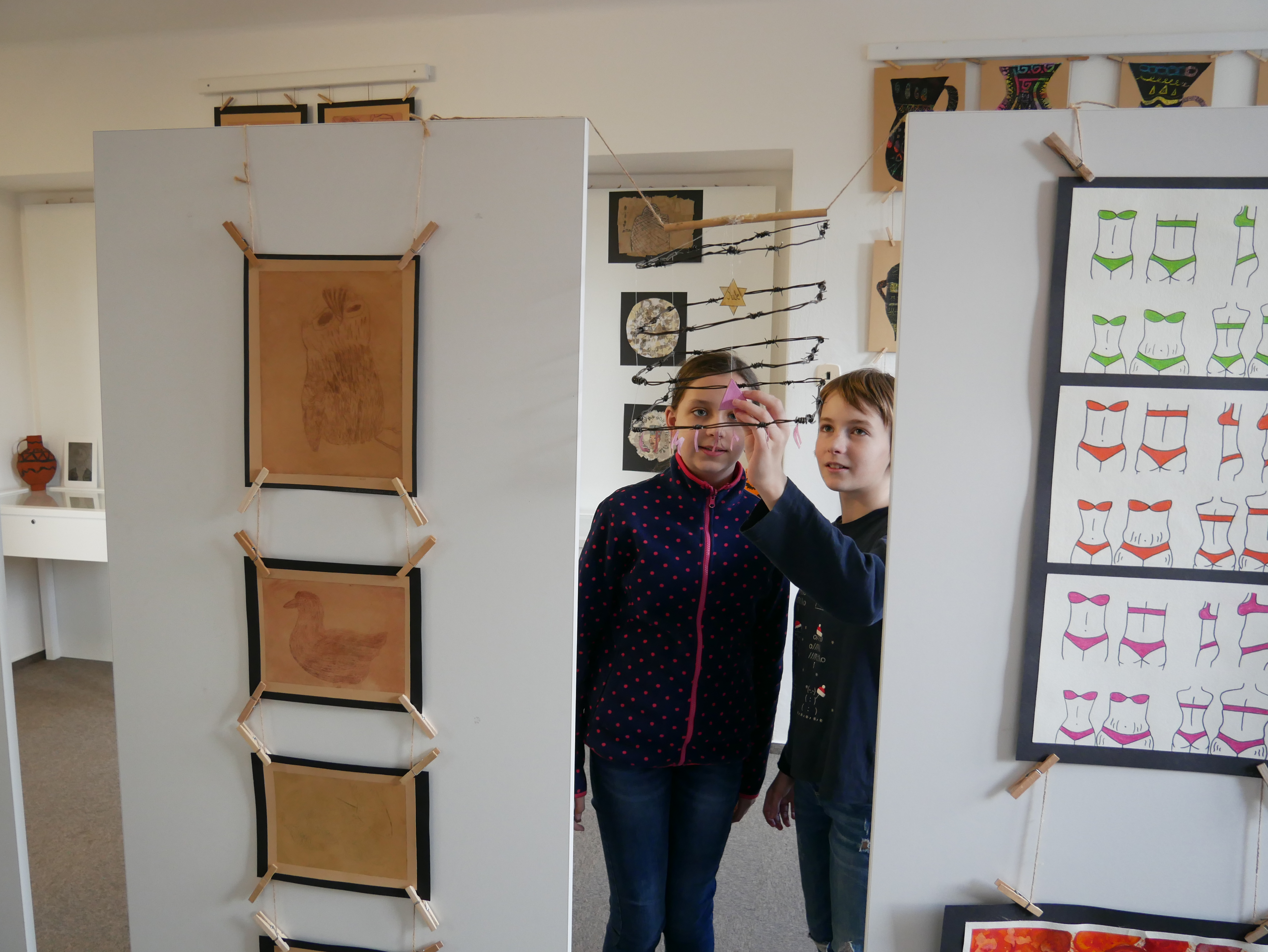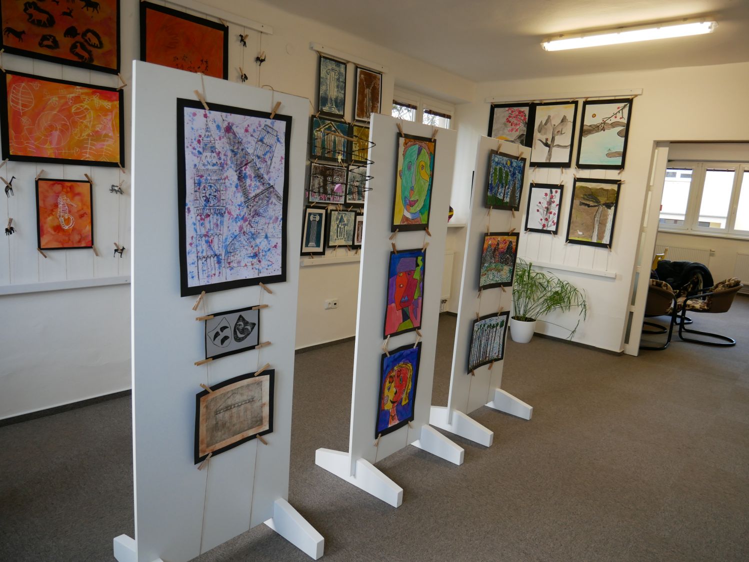 Výtvarný obor navštěvují děti od 5 do 18 let, a jak paní učitelka vysvětlila, všechny skupinky žáků tvoří a následně vystavují. Vždy se vybere alespoň jedno dílo na žáka. Rozdíl je jen v přístupu témat či technice, ta se volí podle adekvátnosti k věku.