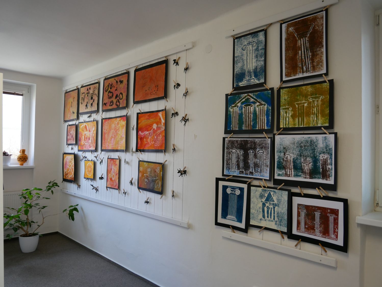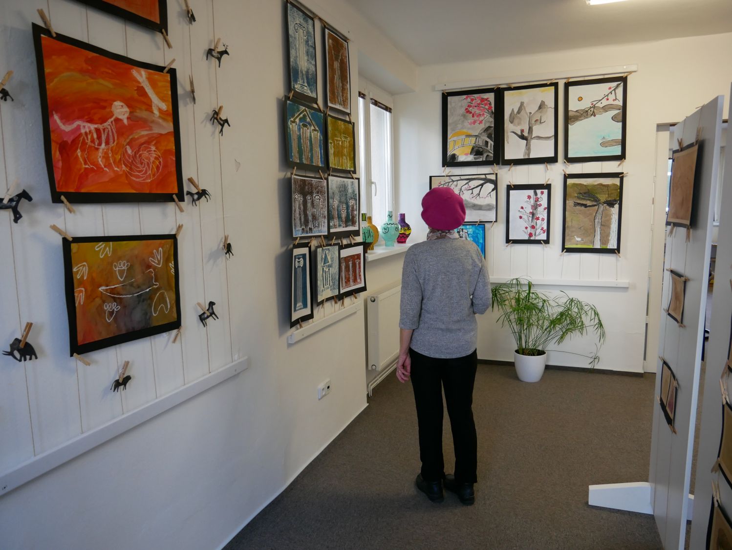 „Mladší děti začaly tvořit od pravěku a starší si volily svá témata. Ta jsme společně utvářeli tak, aby dávala smysl," popsala vznik výstavy výtvarnice. „Vždy si nejdříve o tématu, technice a umělci povíme základní informace, ukážeme si příklady z daného období a poté tvoříme. Každý žák si tedy zkusí všechna témata i techniky. Při tvorbě si vždy každý nejdříve vytvoří návrh, jak by mělo výsledné dílo vypadat, to je v jejich režii. Já jako učitelka jsem jen pouhý konzultant, který popřípadě poradí. Žáky baví dozvídat se nové věci, zkoušet nové přístupy i techniky," popsala způsob své výuky paní učitelka.