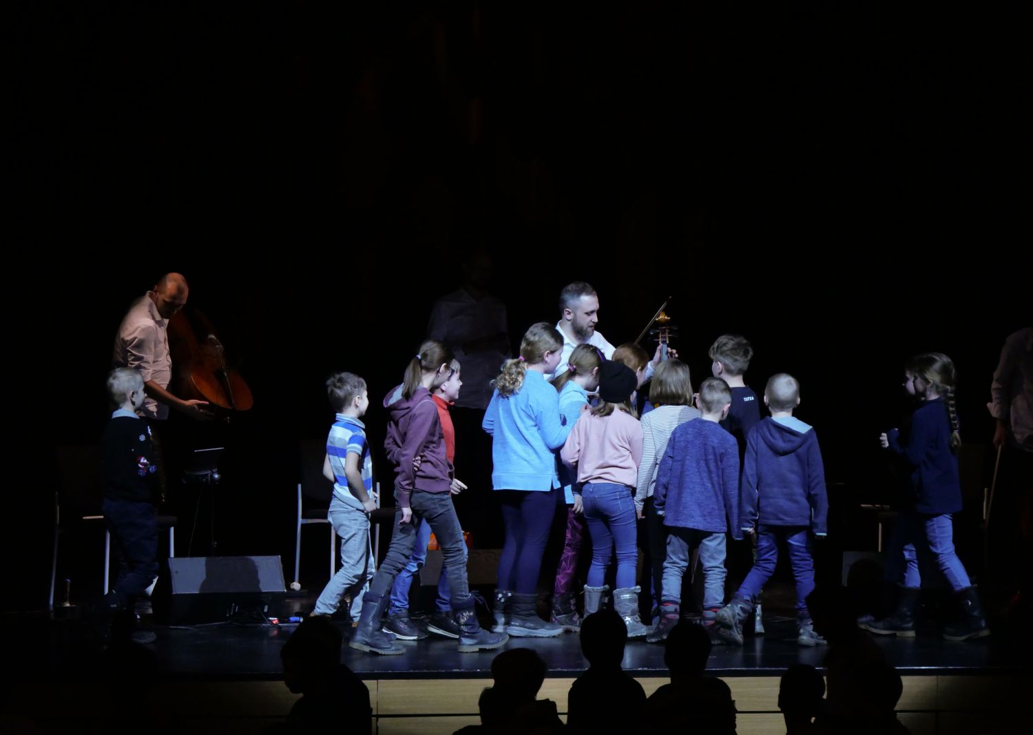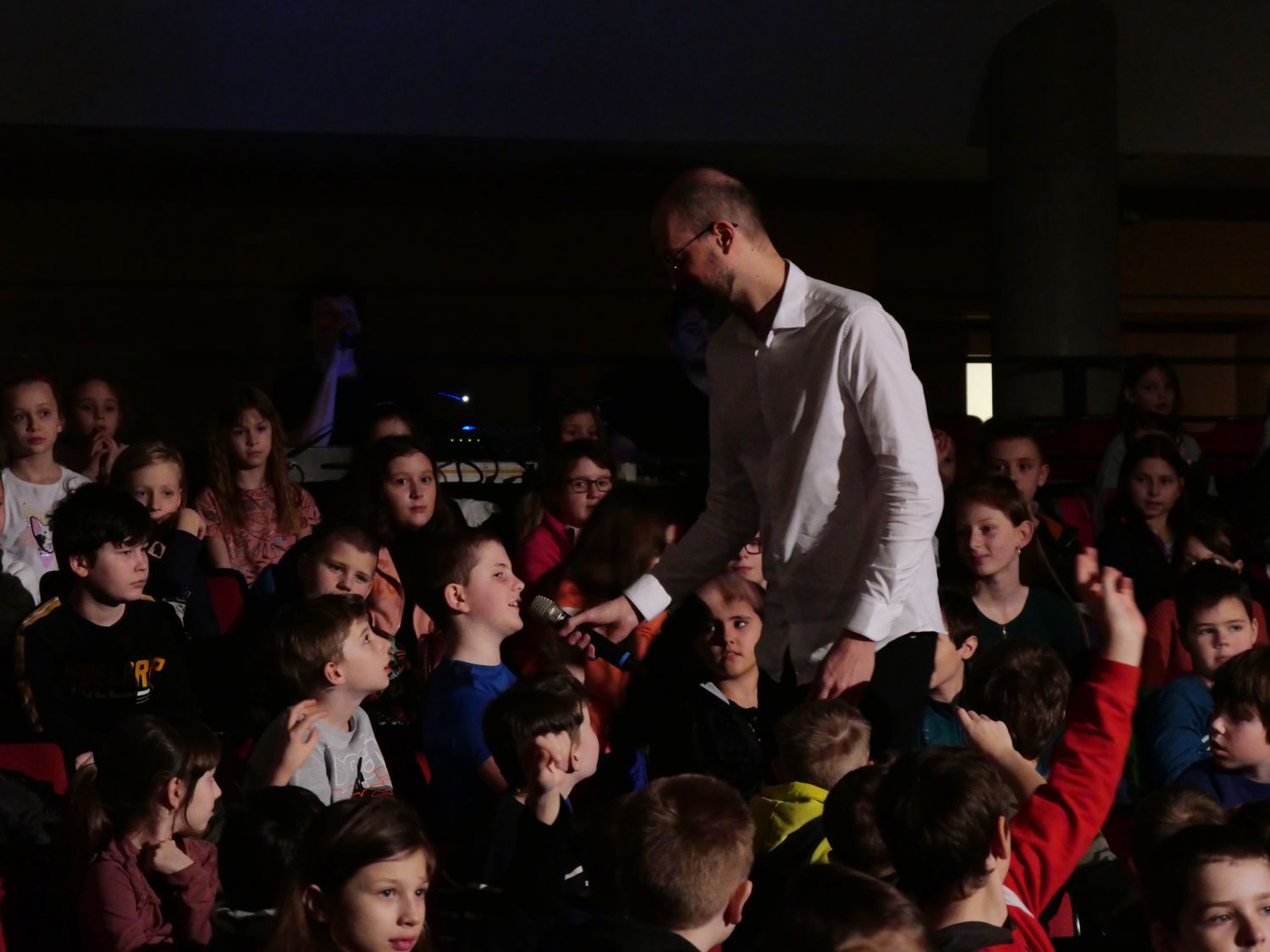 Na úvod Zemen dětem pověděl, že nedávno vystupovali v Japonsku a Číně, avšak hrají po celém světě. První písní, která zároveň žáky nadchla, byla píseň Šavlový tanec. Po ní následovala spousta skladeb jako například Let čmeláka, Nebe na zemi a další.