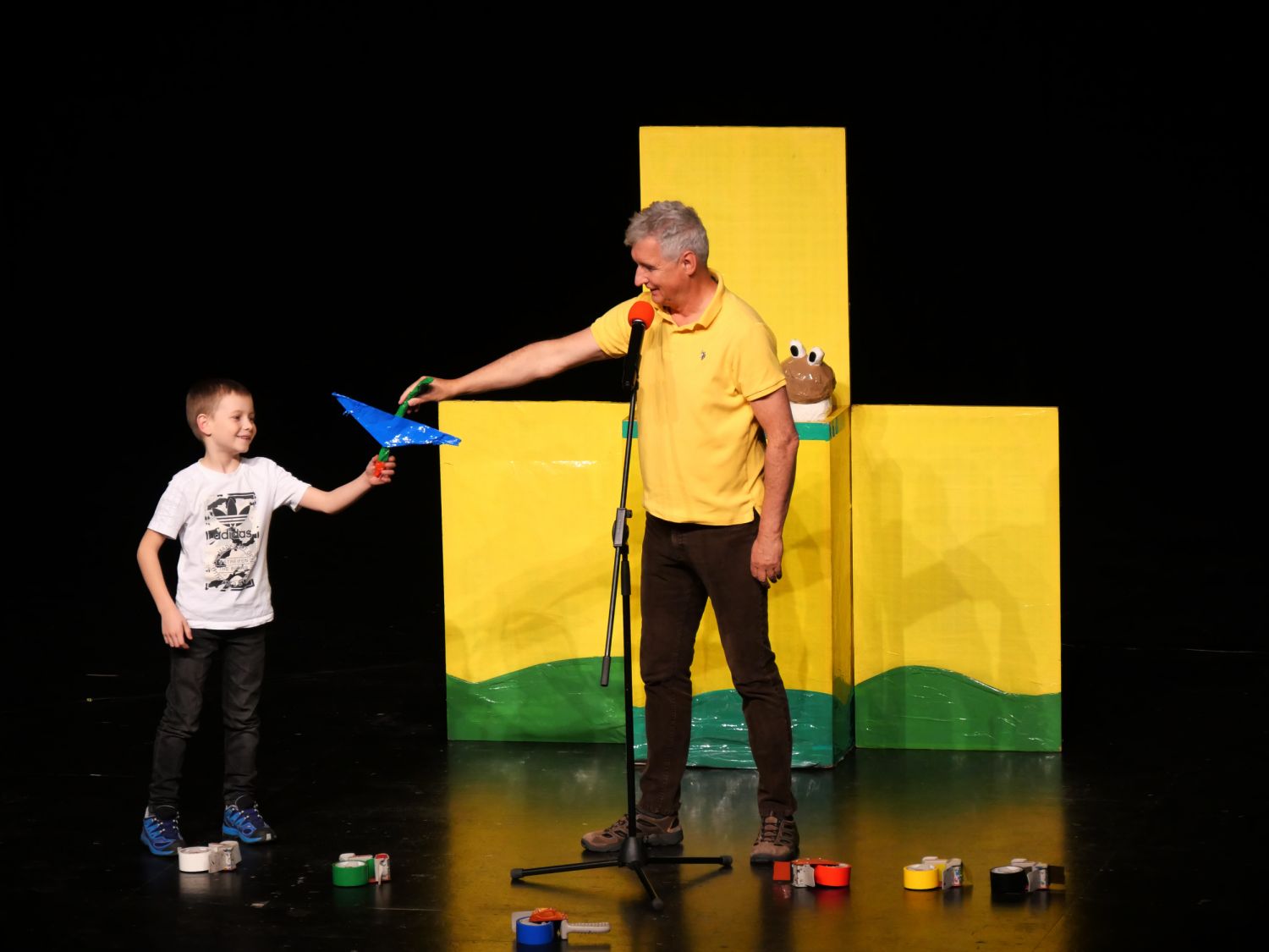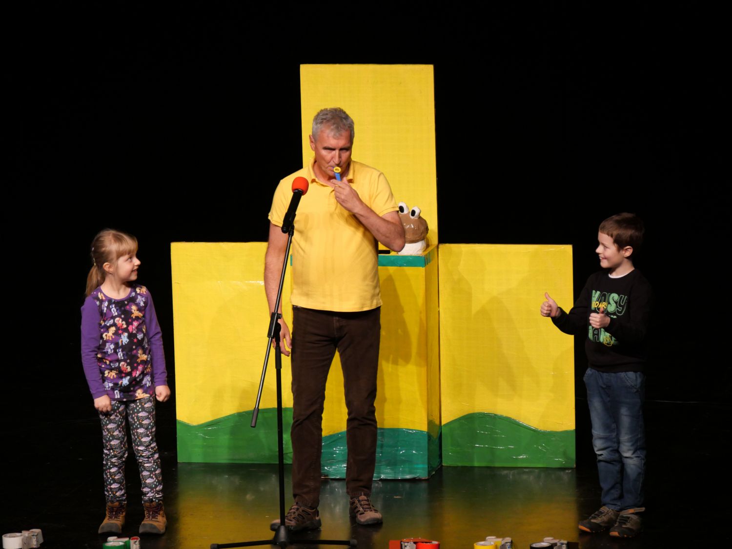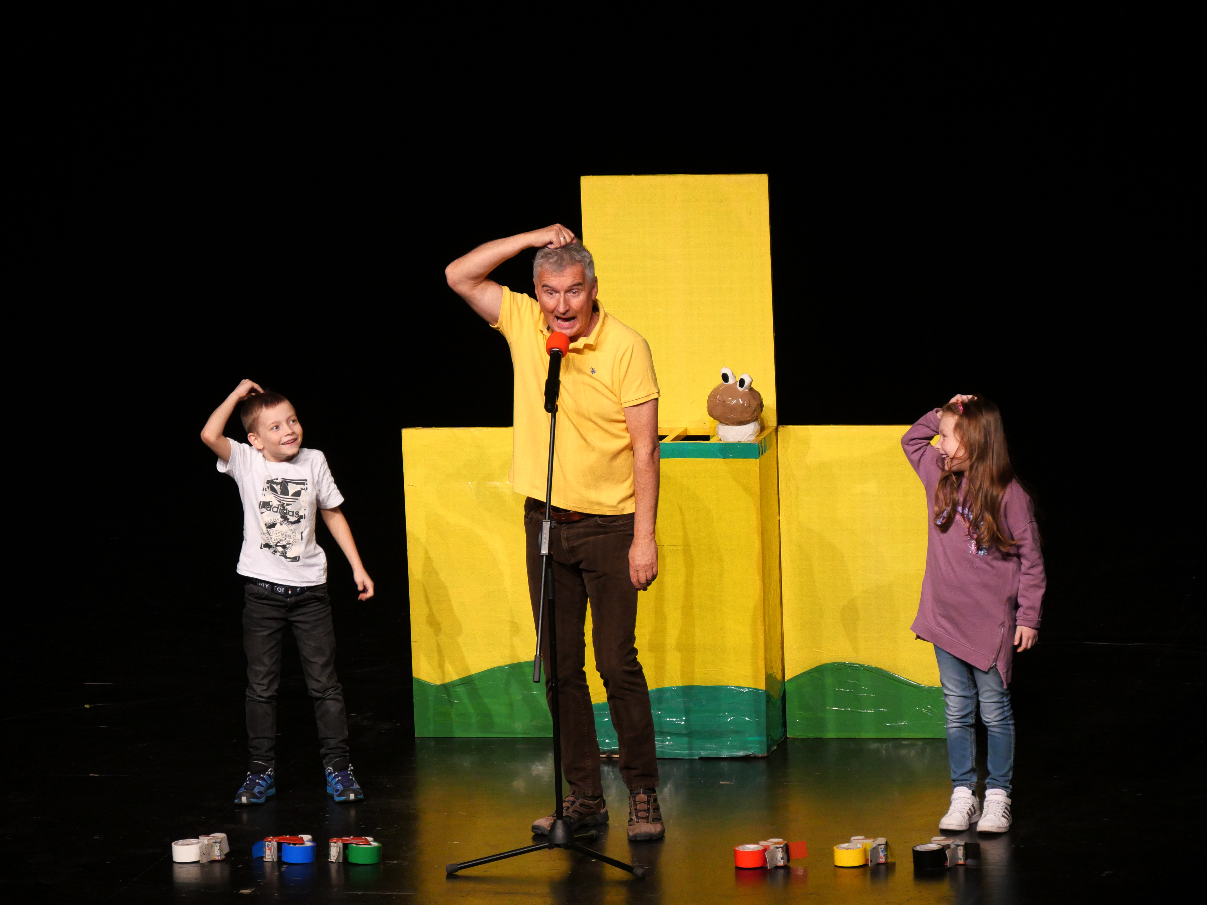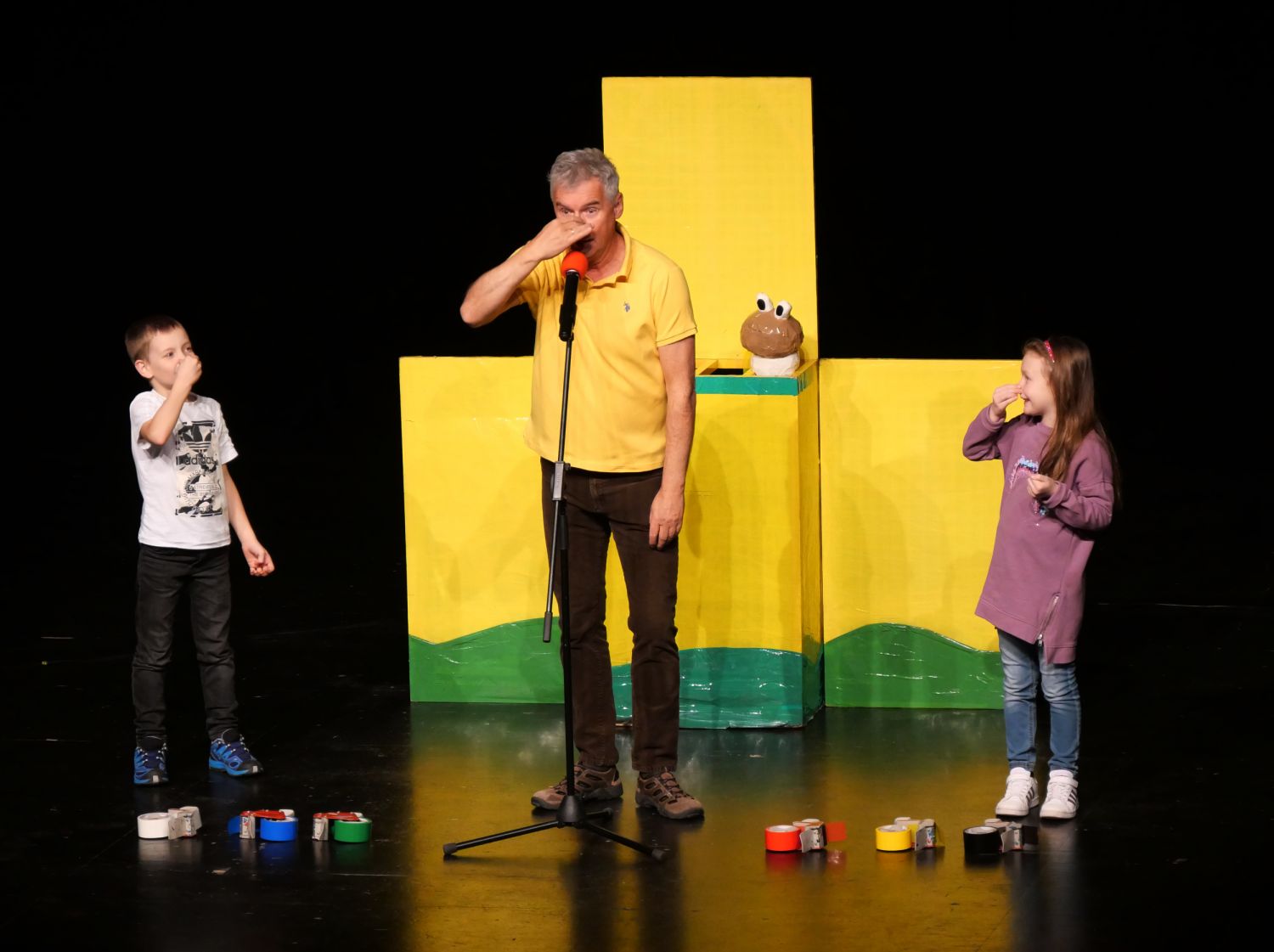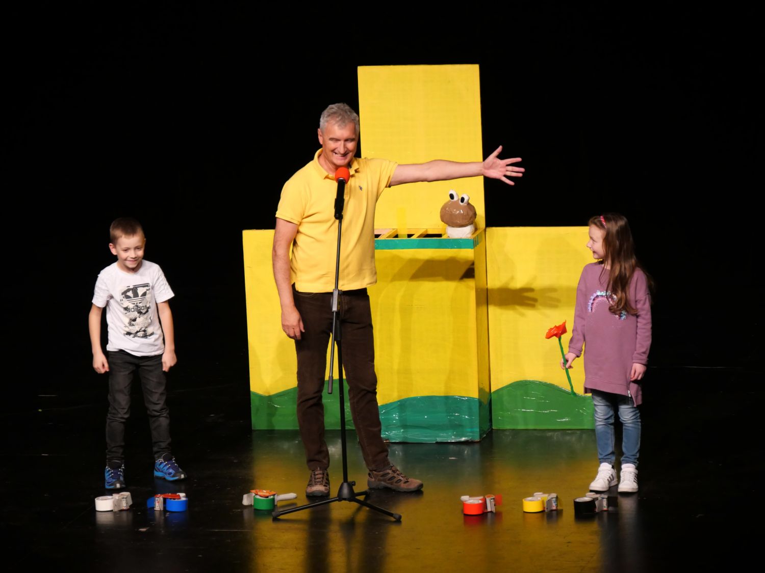 Na pódium si pozval děti z publika, vždy jednu dívku a jednoho chlapce. S dětmi se rozcvičovali jednoduchými pohyby a tropili společně různé hlouposti. Před odchodem zpět do hlediště dostali malí účastníci drobný dárek, který jim sám Michal vyrobil z barevných izolep. K vidění tak byly například květiny, svačiny Mc Michal či letadlo. Děti měly možnost vidět i Michalovi znalosti v botanice a také, jak dobře se stará o své květiny. Celým velkým sálem byl slyšet radostný smích malých diváků.