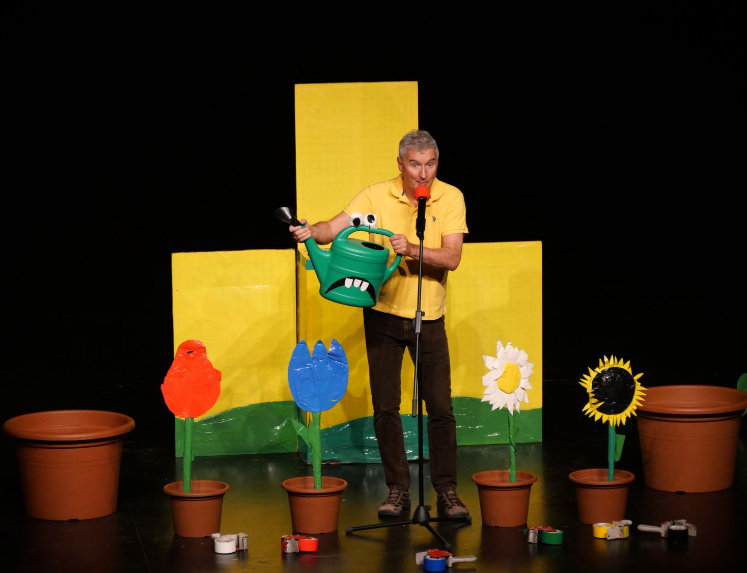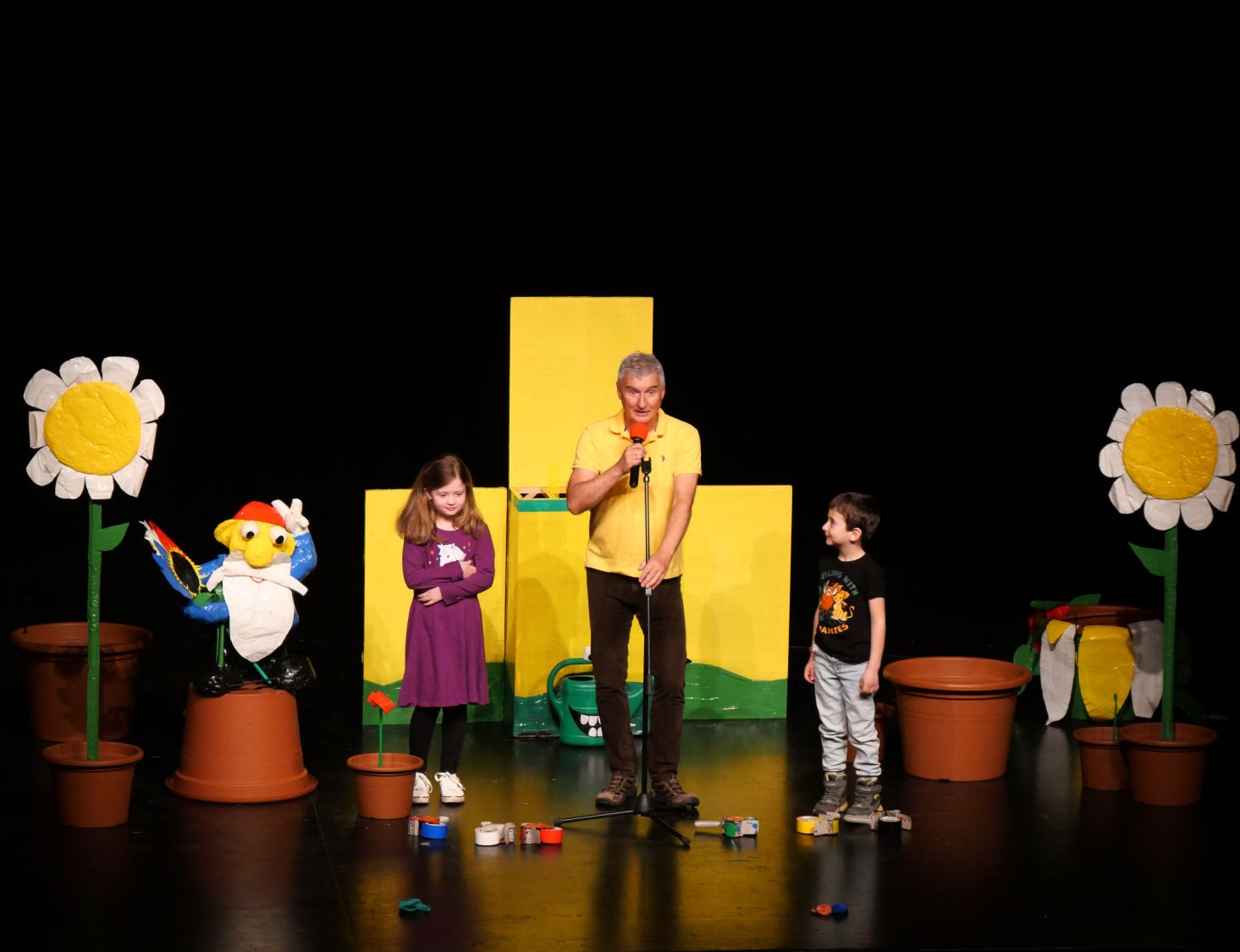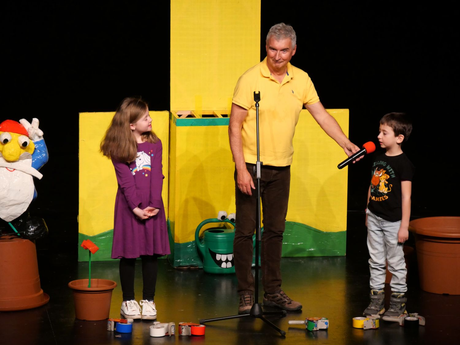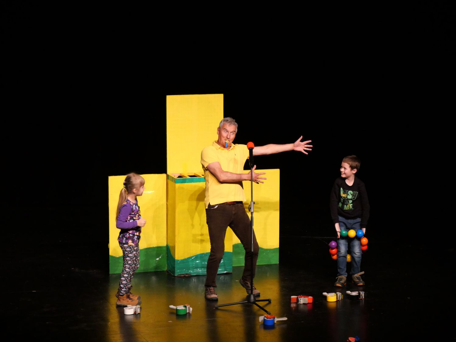 Na pódium si pozval děti z publika, vždy jednu dívku a jednoho chlapce. S dětmi se rozcvičovali jednoduchými pohyby a tropili společně různé hlouposti. Před odchodem zpět do hlediště dostali malí účastníci drobný dárek, který jim sám Michal vyrobil z barevných izolep. K vidění tak byly například květiny, svačiny Mc Michal či letadlo. Děti měly možnost vidět i Michalovi znalosti v botanice a také, jak dobře se stará o své květiny. Celým velkým sálem byl slyšet radostný smích malých diváků.