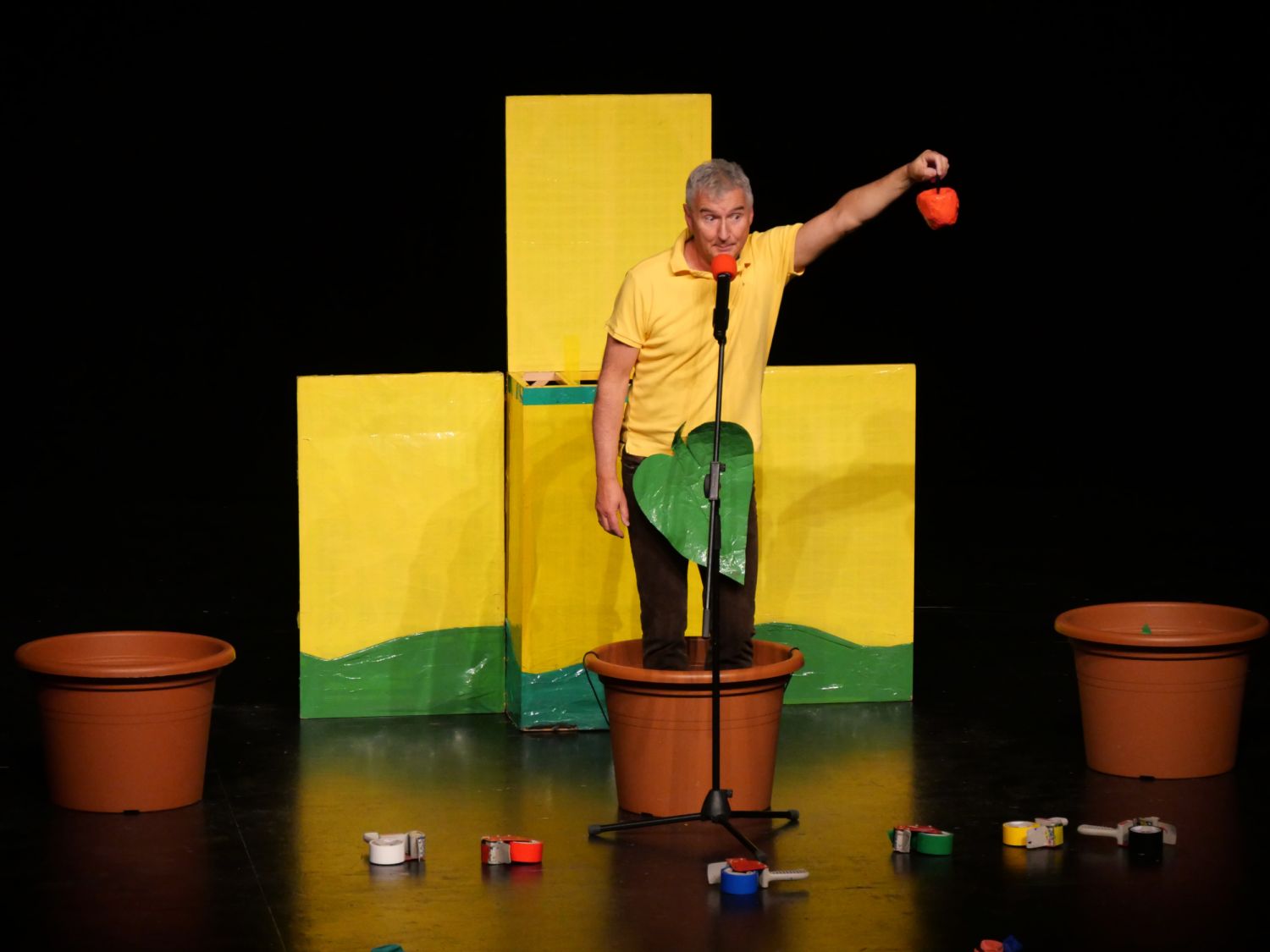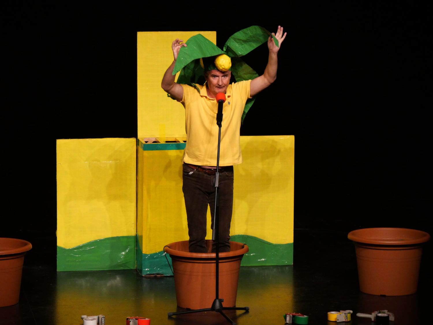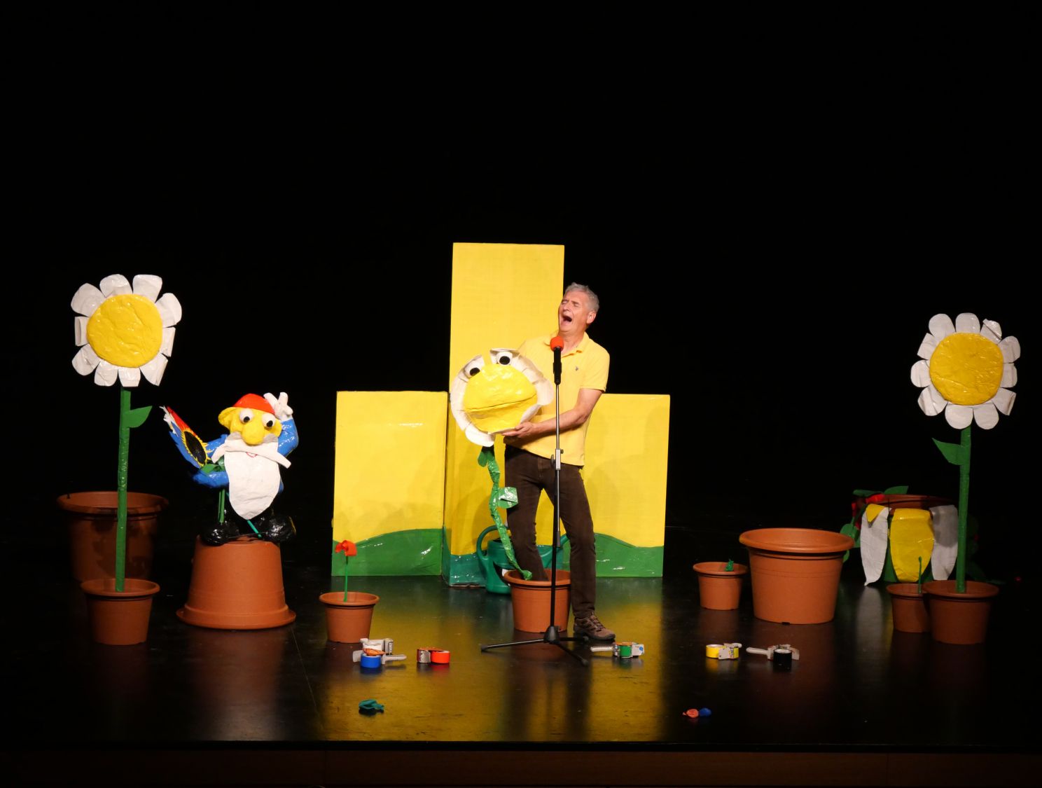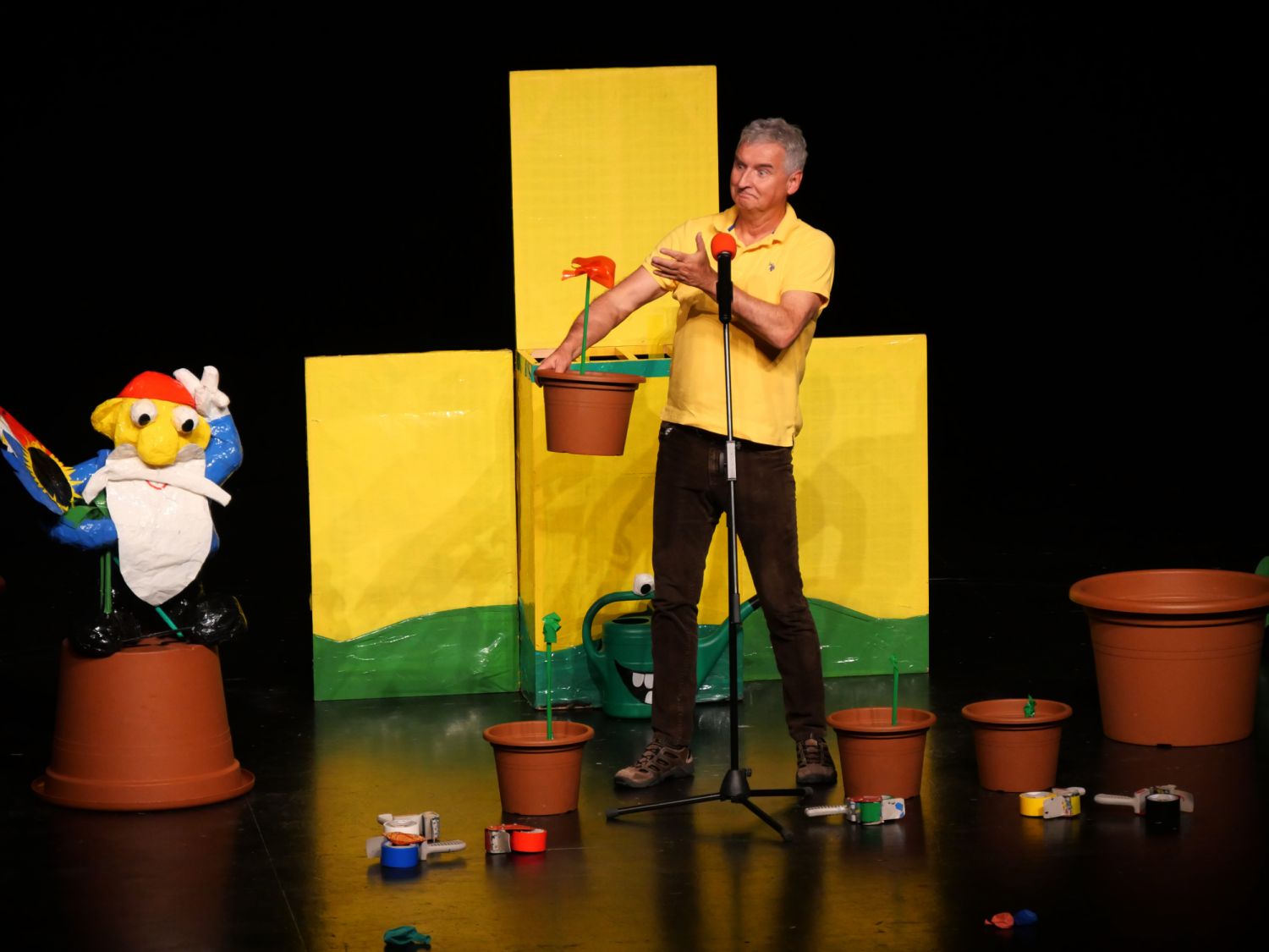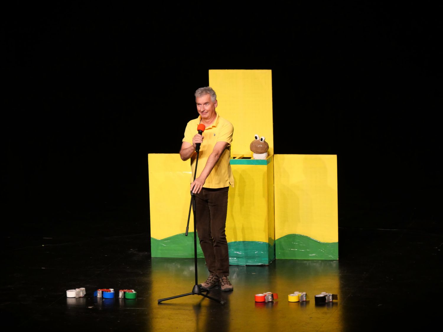 Na pódium si pozval děti z publika, vždy jednu dívku a jednoho chlapce. S dětmi se rozcvičovali jednoduchými pohyby a tropili společně různé hlouposti. Před odchodem zpět do hlediště dostali malí účastníci drobný dárek, který jim sám Michal vyrobil z barevných izolep. K vidění tak byly například květiny, svačiny Mc Michal či letadlo. Děti měly možnost vidět i Michalovi znalosti v botanice a také, jak dobře se stará o své květiny. Celým velkým sálem byl slyšet radostný smích malých diváků.