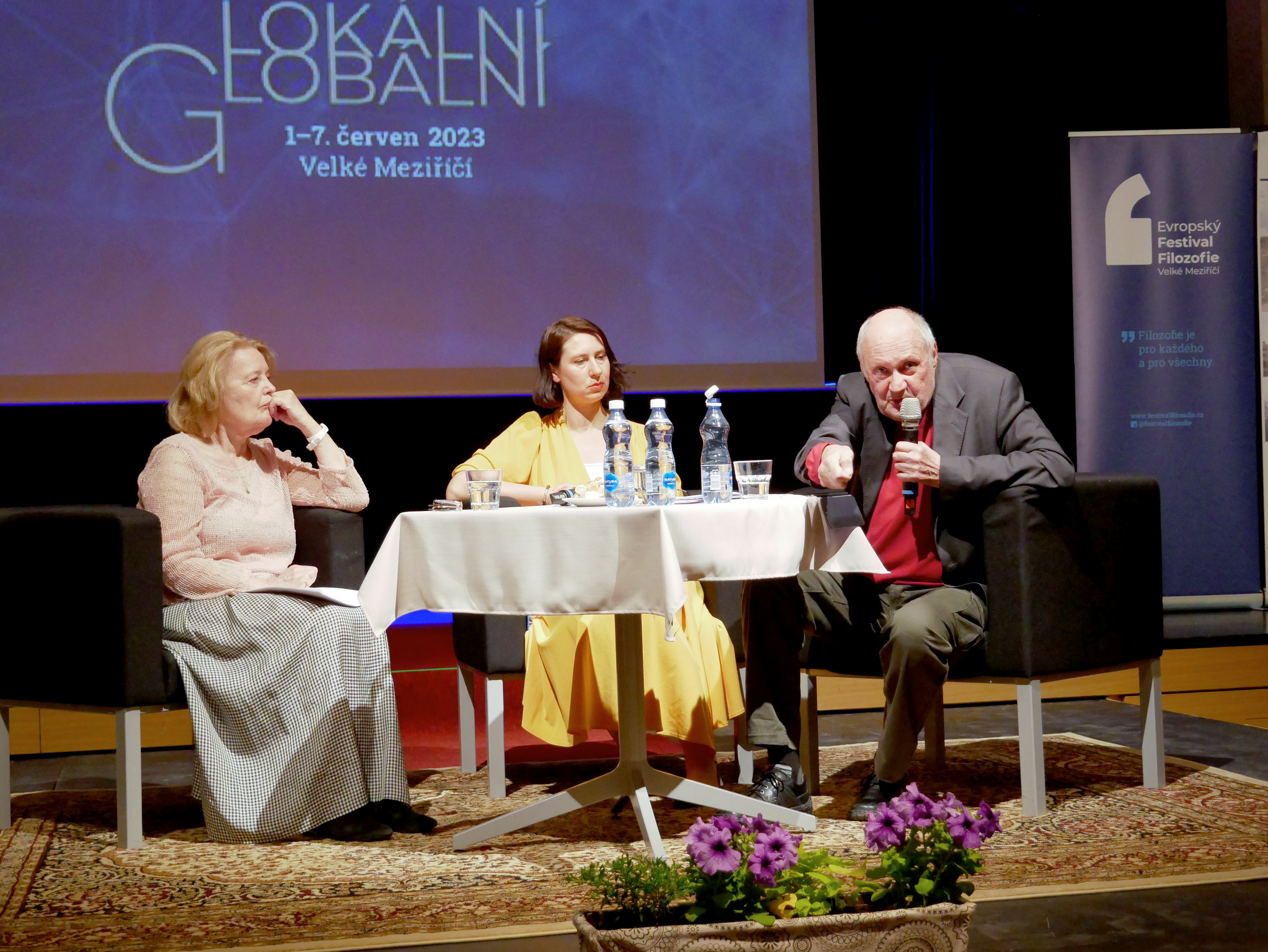 Moderátorka na jevišti postupně přivítala Magdu Vášáryovou a Václava Bělohradského. Dva protipóly základních pohledů na život, dvě osobnosti, které se mnohdy neshodnou, ale polemiku vedou s úctou k druhému, jeho znalostem a životní filozofii. Kéž by se podobným způsobem dokázali bavit i politici!