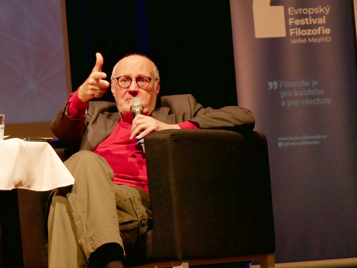 Václav Bělohradský nasadil těžký kalibr a přítomným kladl náročné otázky o nutnosti zbavení se pocitu neomezeného ekonomického růstu, který v globálním měřítku přináší i globální problémy. Ty nazývá hyperobjekty, které doslova vtrhly do našich životů. Patří mezi ně například plastová skvrna v Tichém oceánu, která již má velikost tří Francií. Není jasný viník a nikdo neví, jakým způsobem ji odstranit. Dalším hyperobjektem označil i klimatickou změnu, která je skutečně globální.