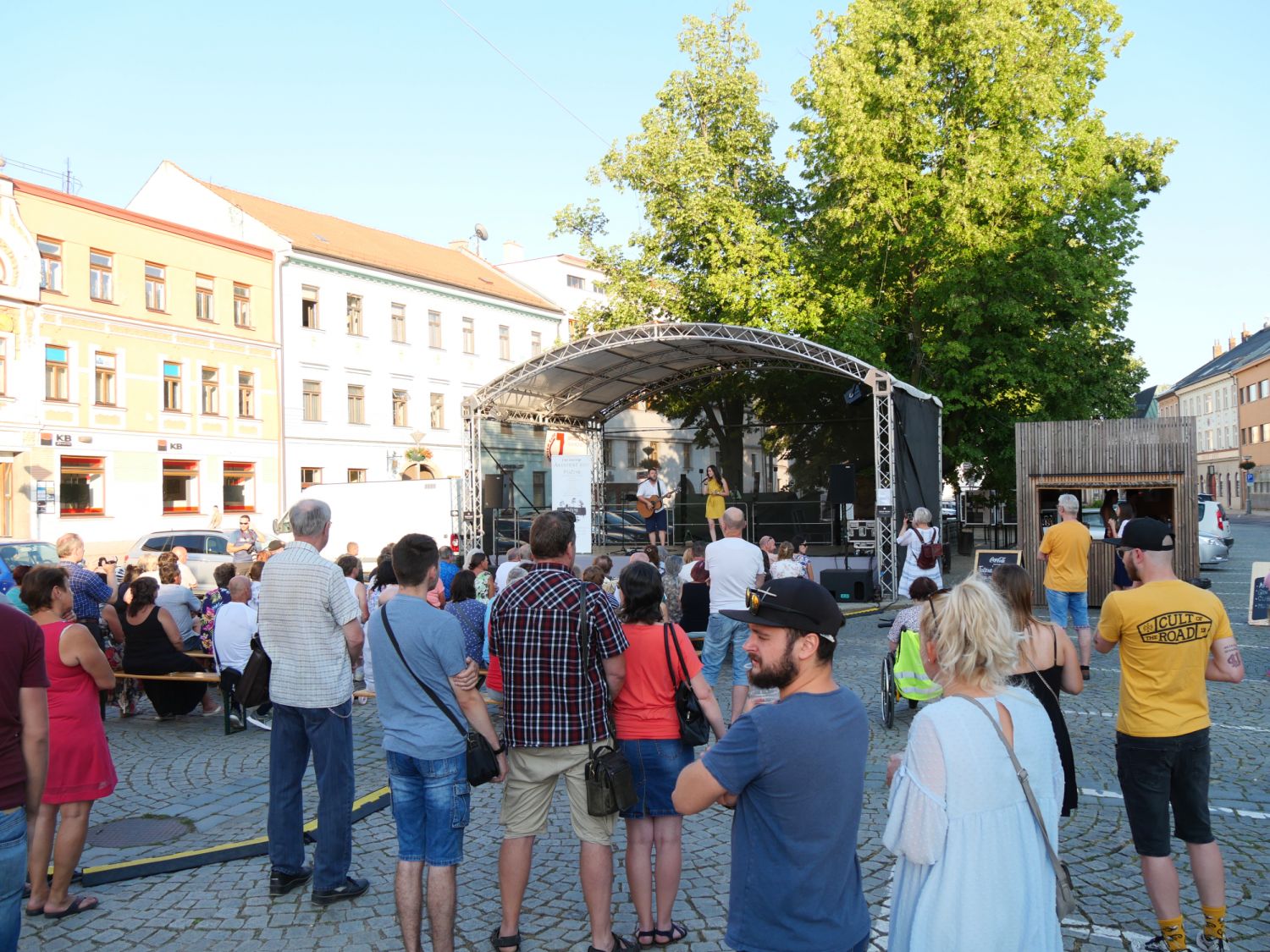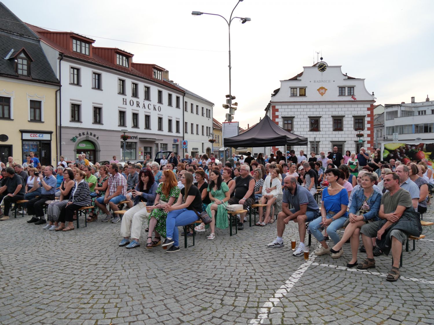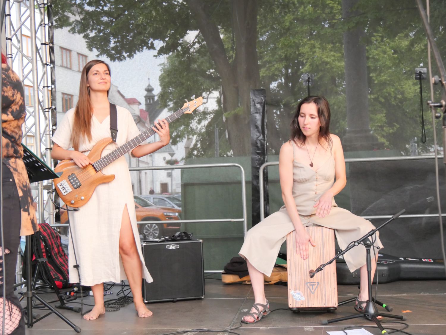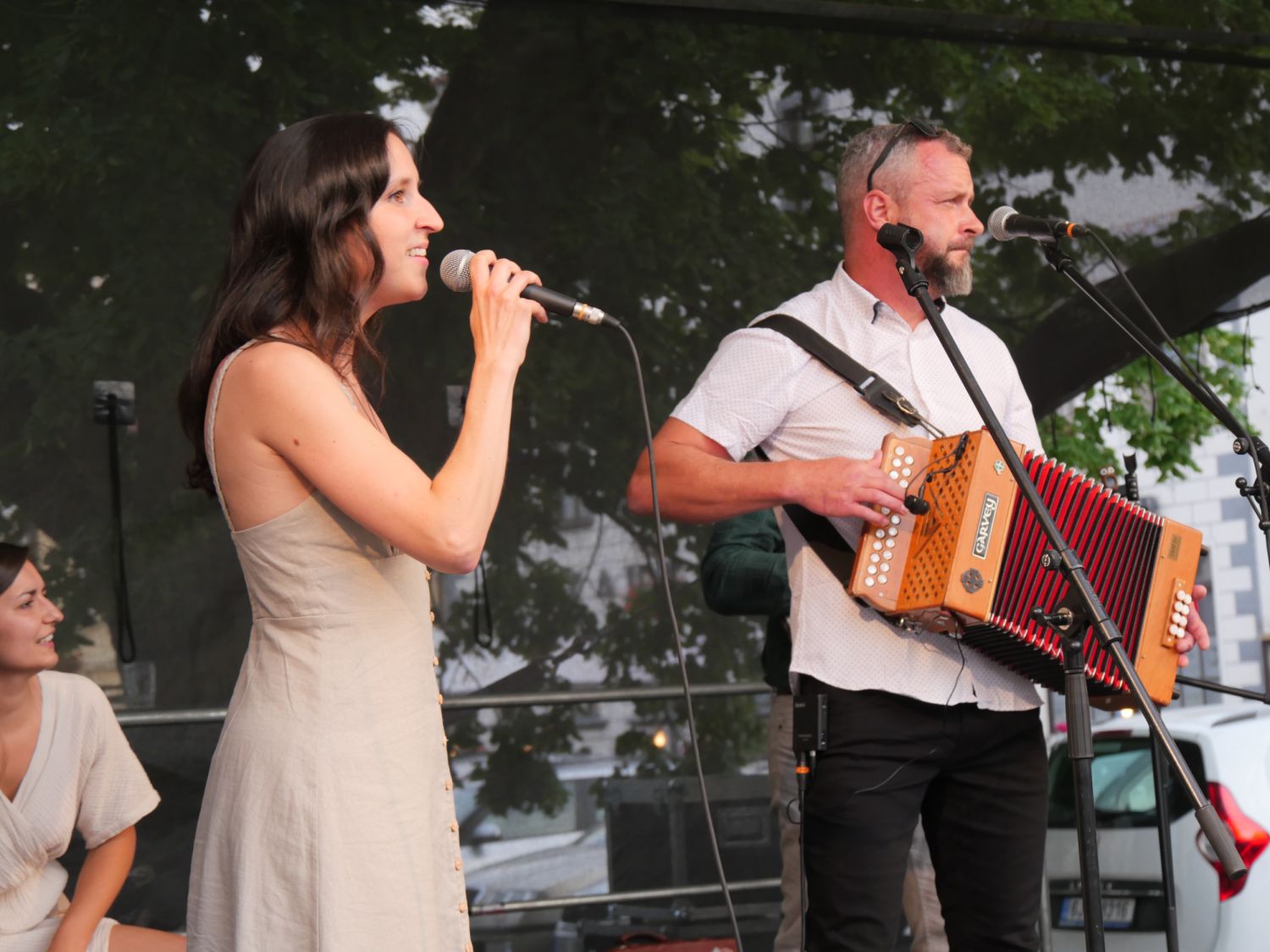Duo PoZemi, které tvoří Betty Pospíšilová a Jan Zemánek, vzniklo v roce 2020. Má za sebou už tři sezóny hraní na svatbách, různých městských akcích či jako předskokan Dalibora Jandy na koncertě v Dačicích. Domácím posluchačům možná není tolik známé, i tak byly lavičky na náměstí obsazené. Řada lidí postávala kolem a neubránila se pohupování do rytmu a prozpěvování spolu s muzikanty. Zněla totiž směsice známých a oblíbených vesměs popových písniček, jako například Do nebe, Jsem optimista ale třeba i šanson Čerešně nebo Verunčina píseň lásky z pohádky Jak si zasloužit princeznu. Znovu je můžete slyšel 15. září na faře, kde budou hrát pro dobrou věc v rámci Kávy od srdce.