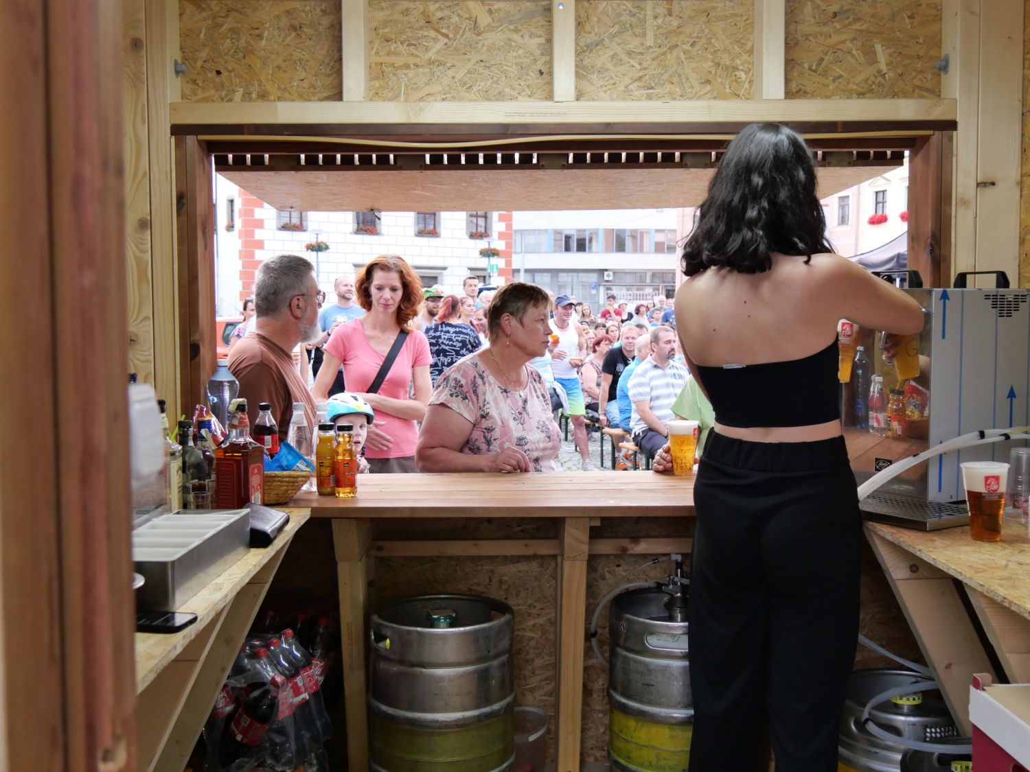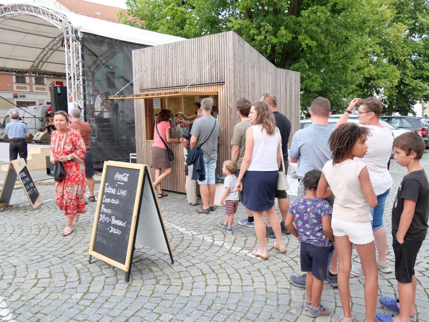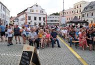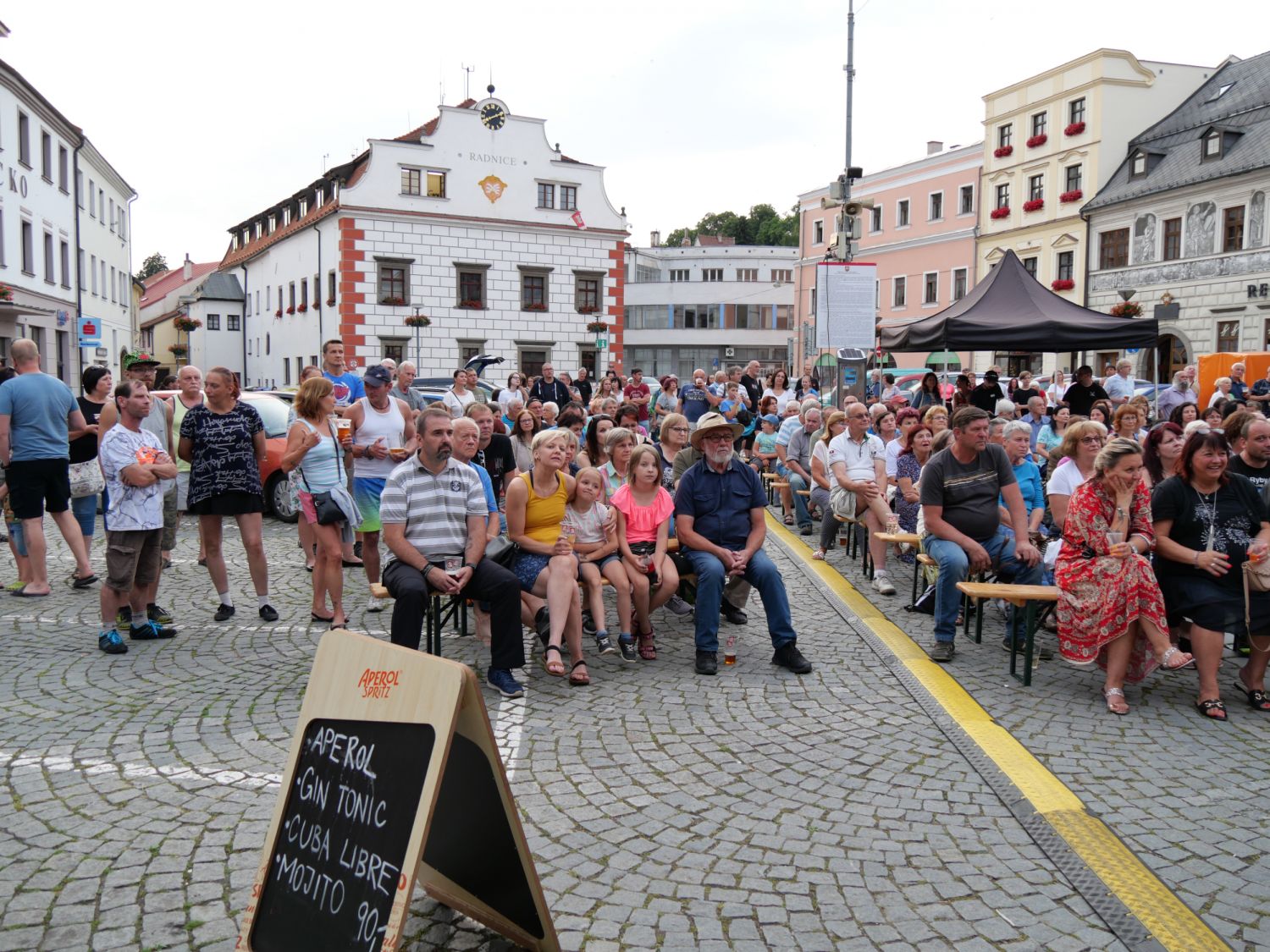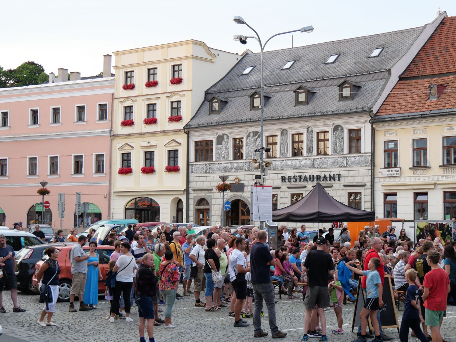 Duo PoZemi, které tvoří Betty Pospíšilová a Jan Zemánek, vzniklo v roce 2020. Má za sebou už tři sezóny hraní na svatbách, různých městských akcích či jako předskokan Dalibora Jandy na koncertě v Dačicích. Domácím posluchačům možná není tolik známé, i tak byly lavičky na náměstí obsazené. Řada lidí postávala kolem a neubránila se pohupování do rytmu a prozpěvování spolu s muzikanty. Zněla totiž směsice známých a oblíbených vesměs popových písniček, jako například Do nebe, Jsem optimista ale třeba i šanson Čerešně nebo Verunčina píseň lásky z pohádky Jak si zasloužit princeznu. Znovu je můžete slyšel 15. září na faře, kde budou hrát pro dobrou věc v rámci Kávy od srdce.