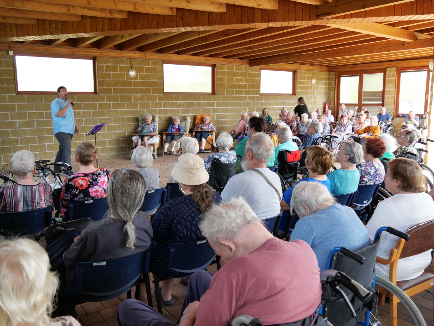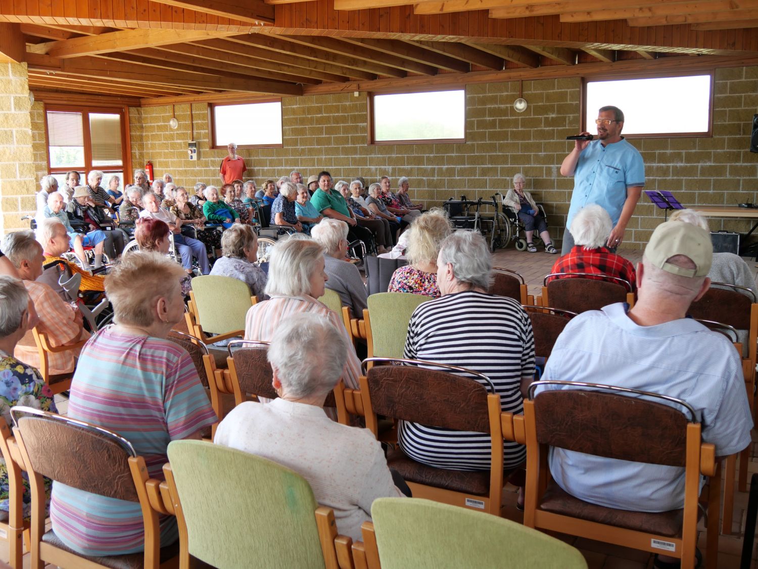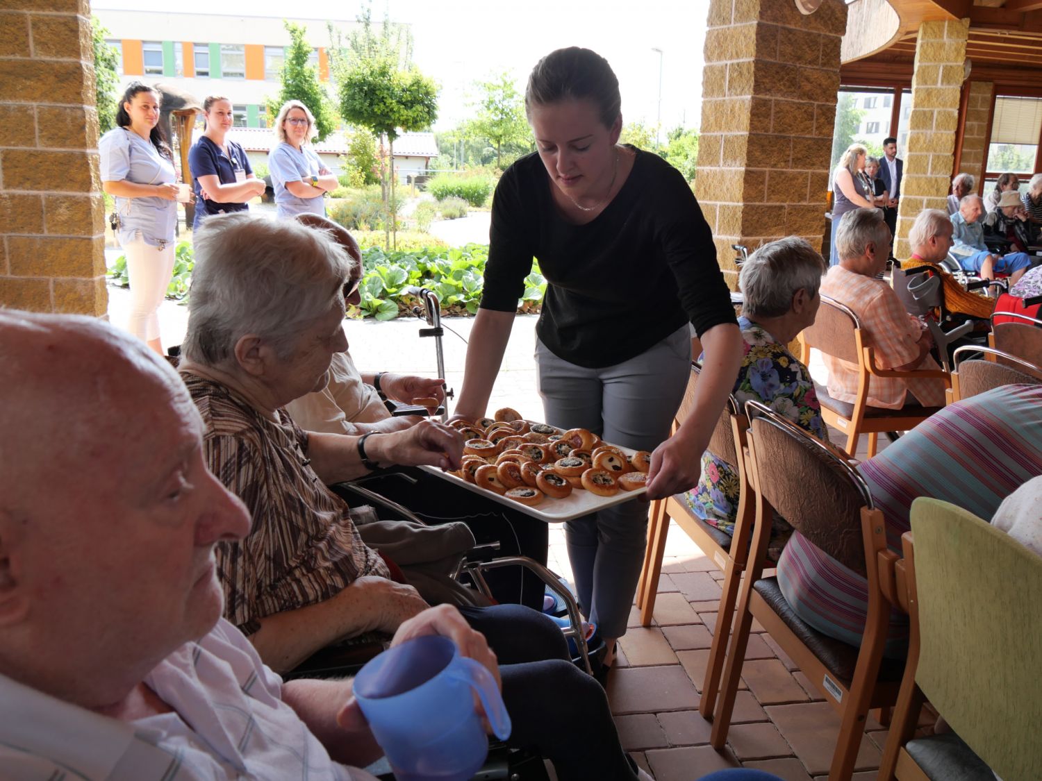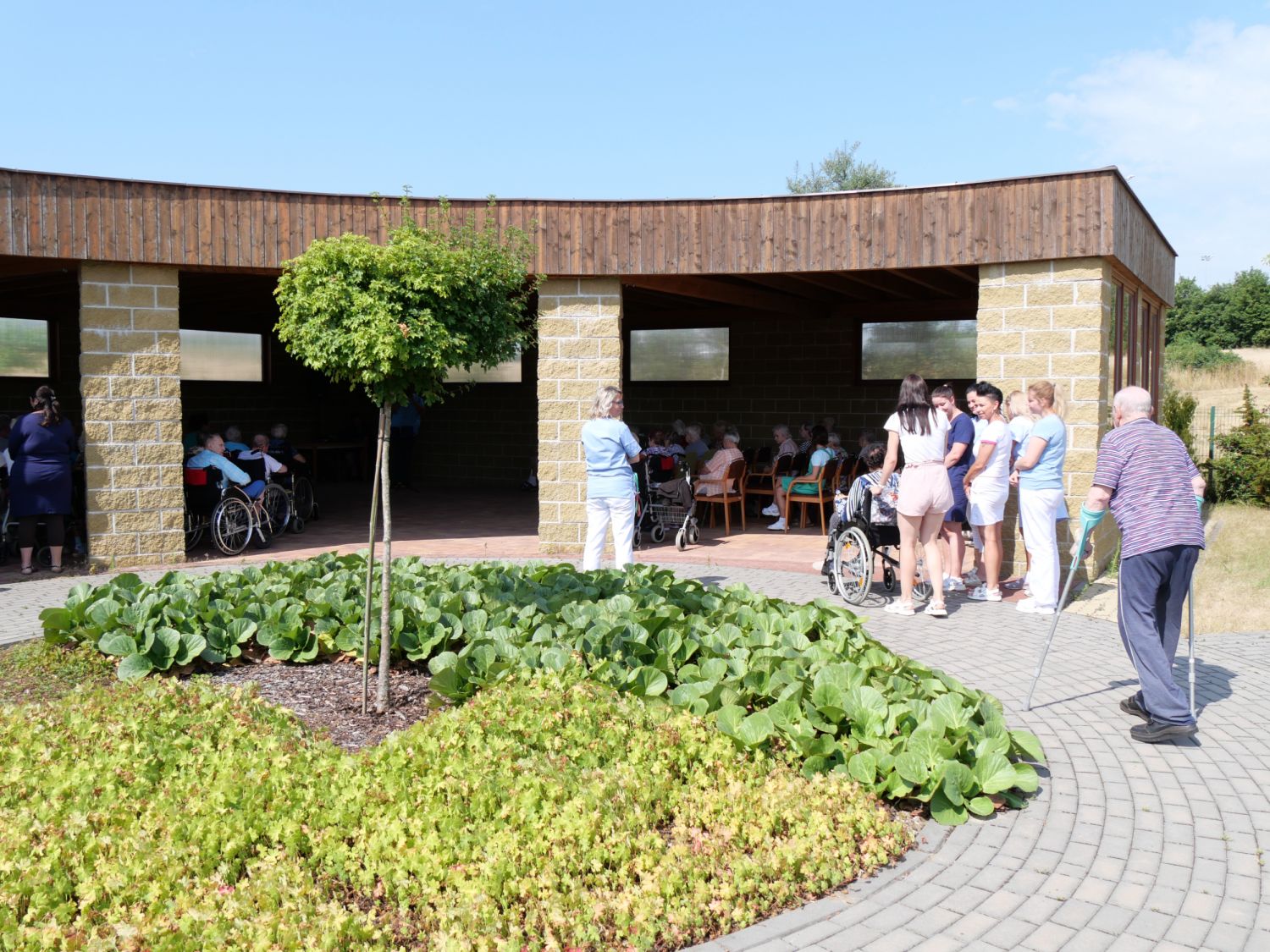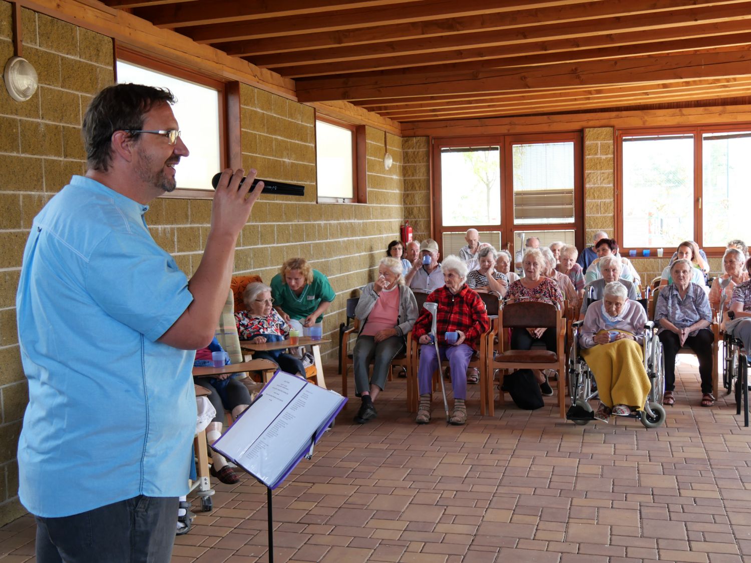 Park domova pro seniory ožil ve středu 19. července hudbou a dobrou náladou. Konala se zahradní slavnost pro klienty domova, jejich rodiny, přátele, známé a širokou veřejnost. Příjemný chládek altánu chránil návštěvníky před úmorným vedrem a všichni si tak mohli nerušeně vychutnat vystoupení zpěváka, moderátora a herce Šimona Pečenky. Hity z repertoáru několika Karlů potěšily, mnohé zanesly zpět do mladých let. Zazněly třeba Popelky, Lodí bílou či Mám malý stan. „Při téhle písničce vždycky dostanu chuť na buřta naříznutého pěkně do hvězdičky a pomalu opékaného nad ohněm, do nějž odkapává šťáva, až to praská,“ líčil zpěvák posluchačům svoje chutě a lze předpokládat, že mnohé z nich navnadil. Lidé zpívali spolu s ním, tleskali, bavili se. Příjemné dopoledne to bylo.