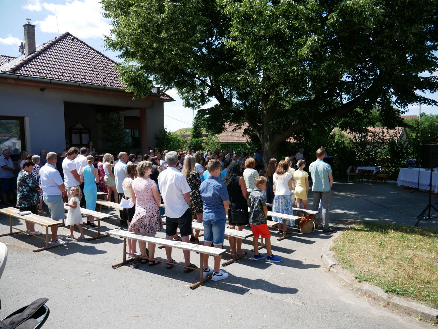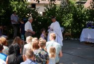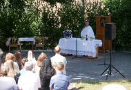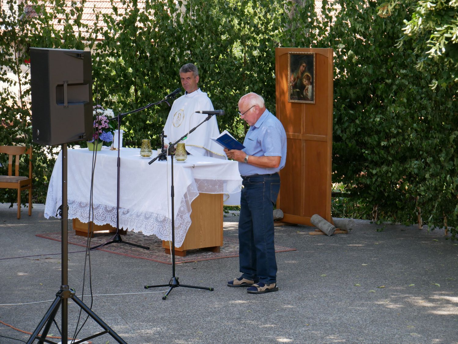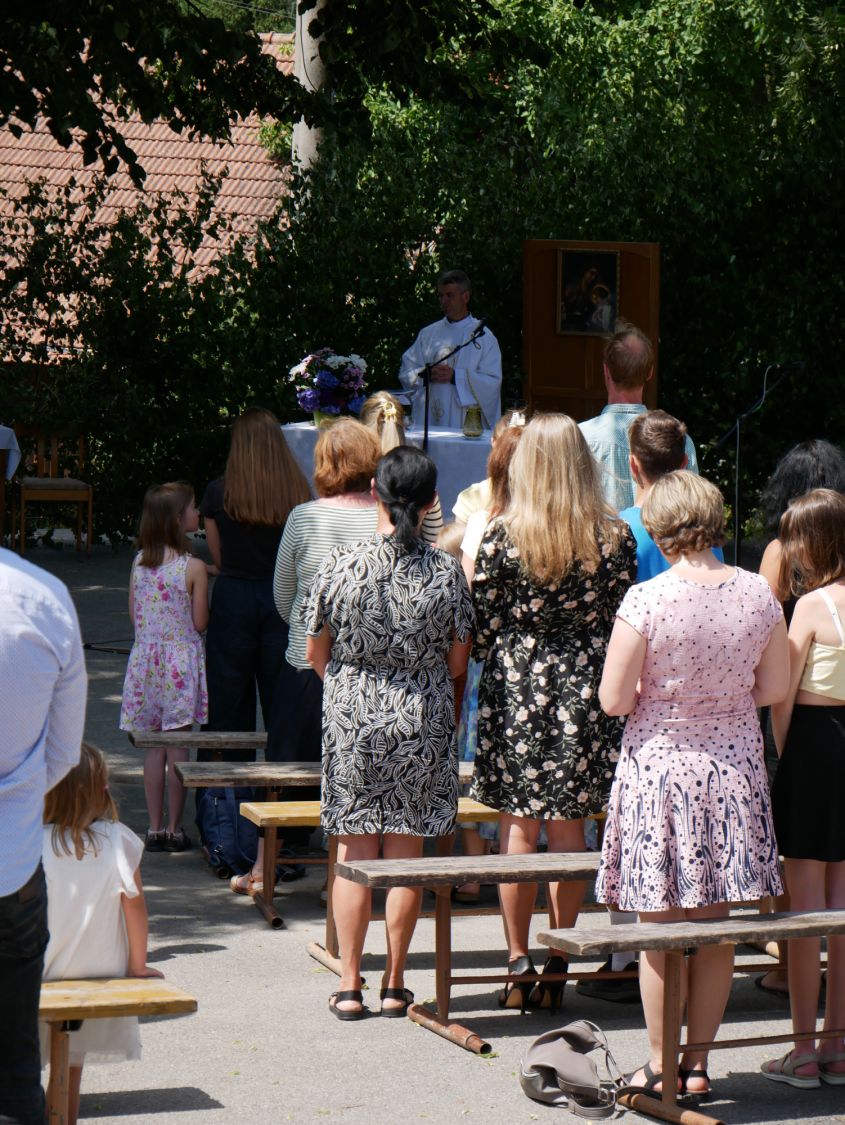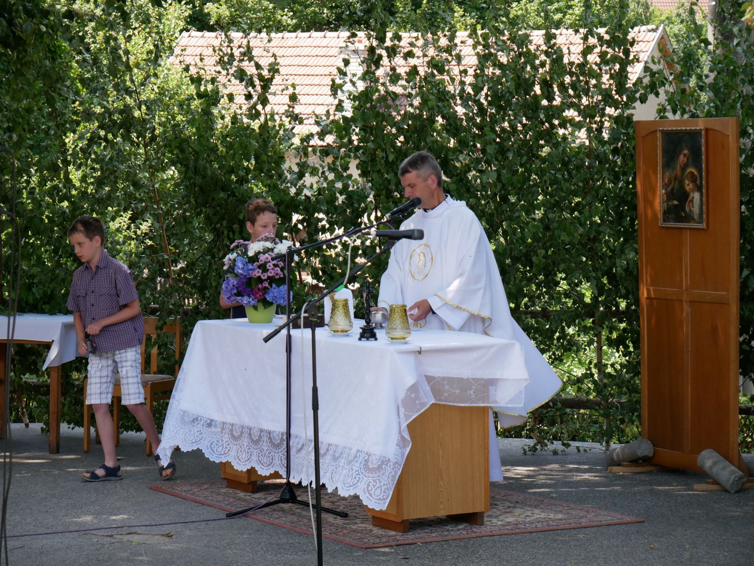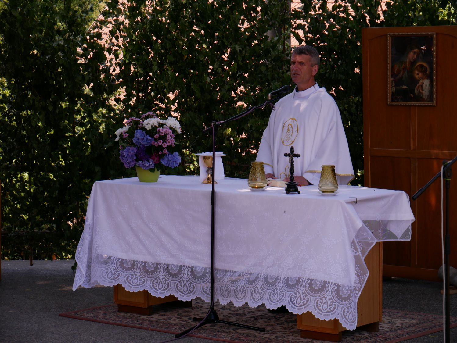 Pouťové oslavy pak vyvrcholily v neděli před polednem, kdy u kulturního domu pod nádhernou košatou lípou sloužil mši svatou velkomeziříčský děkan Jiří Kaňa. Účast byla velká, dorazili nejen místní, ale i lidé ze širokého okolí.