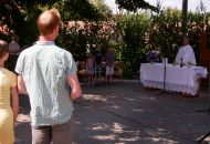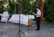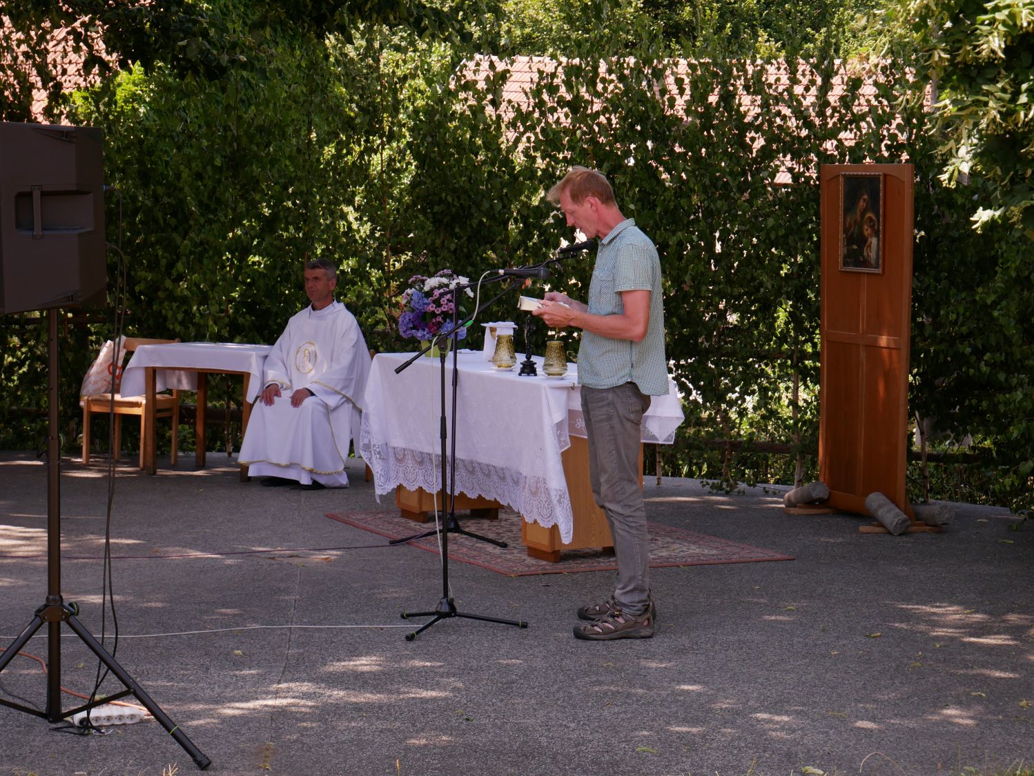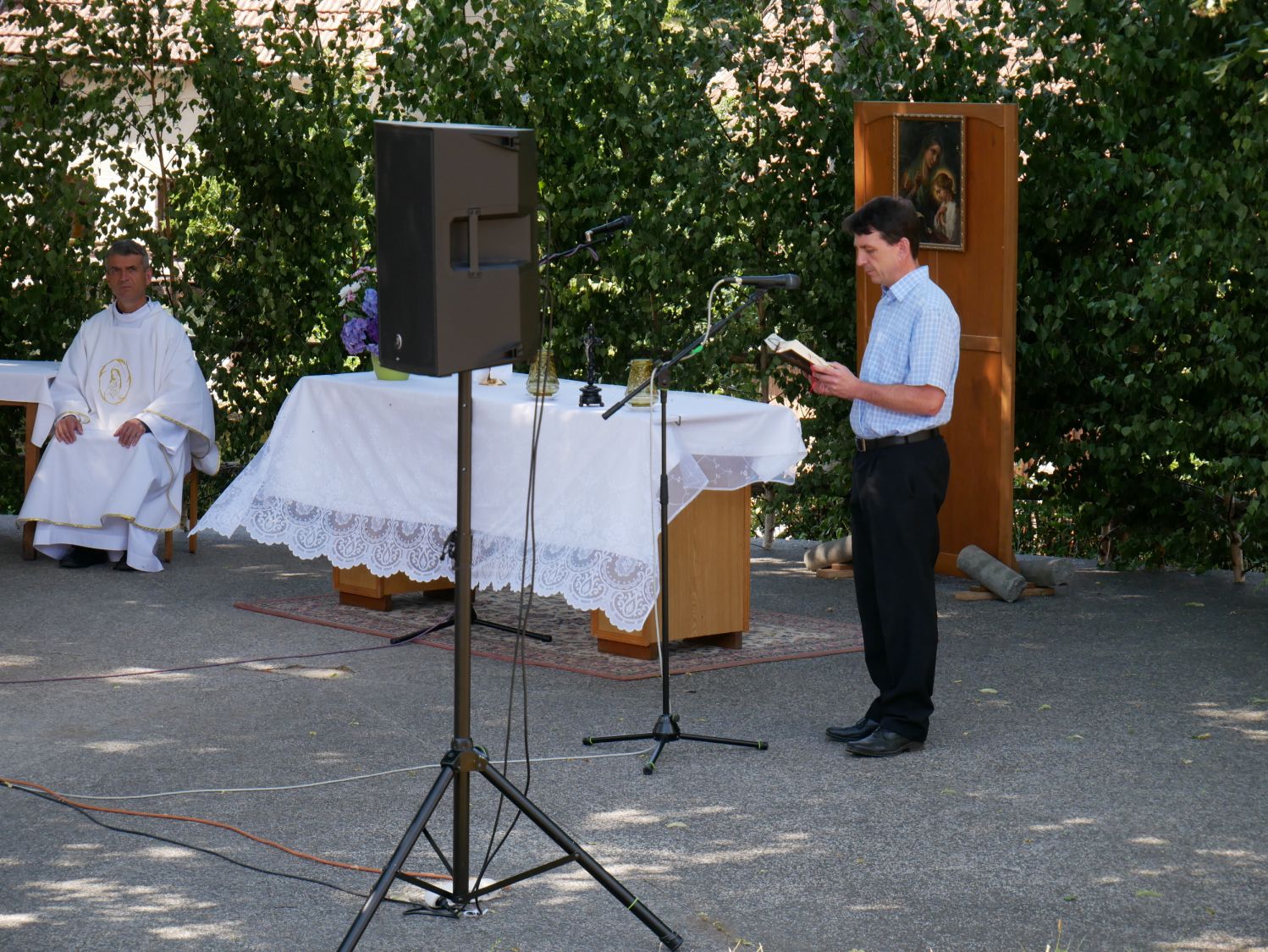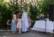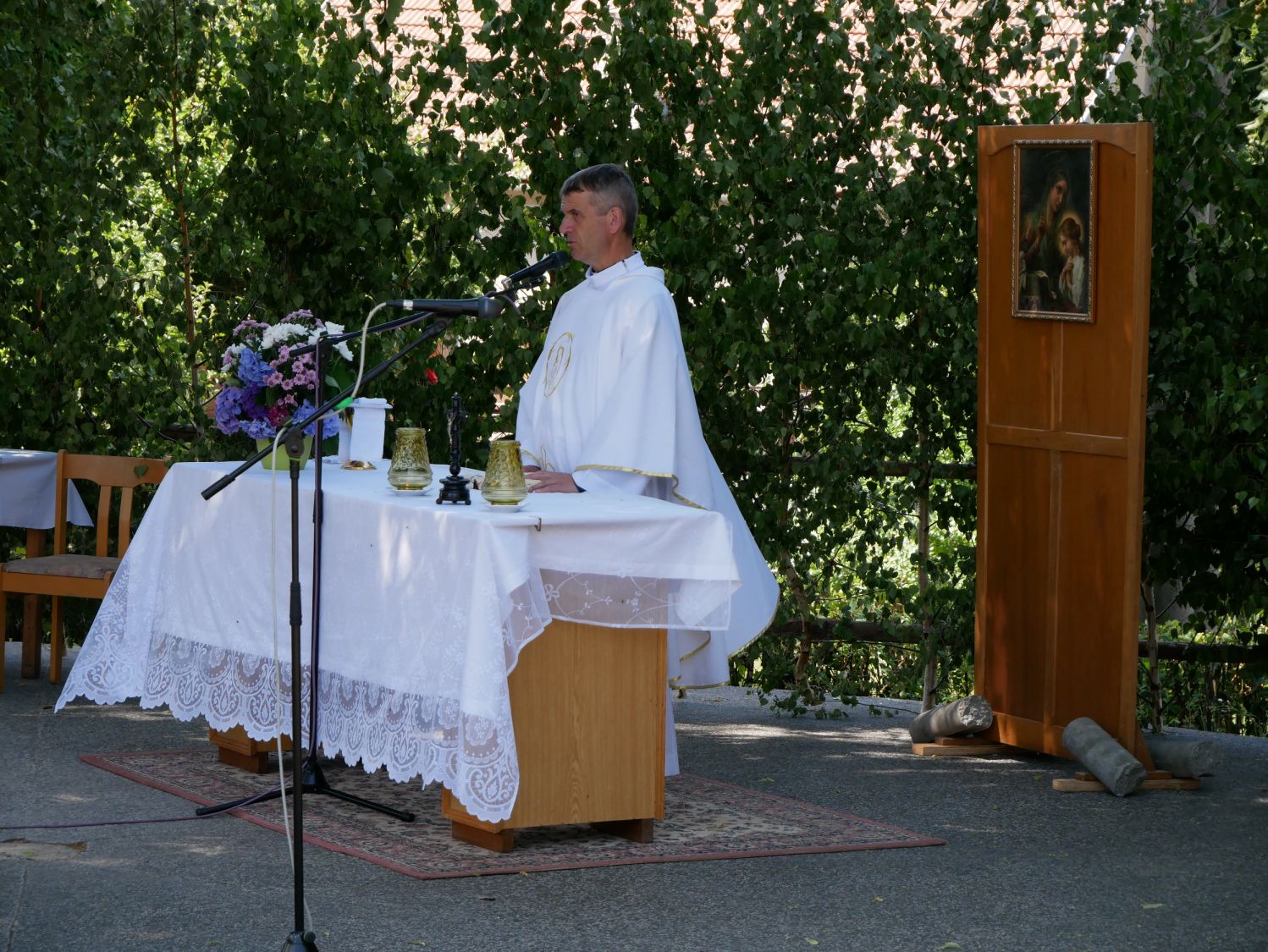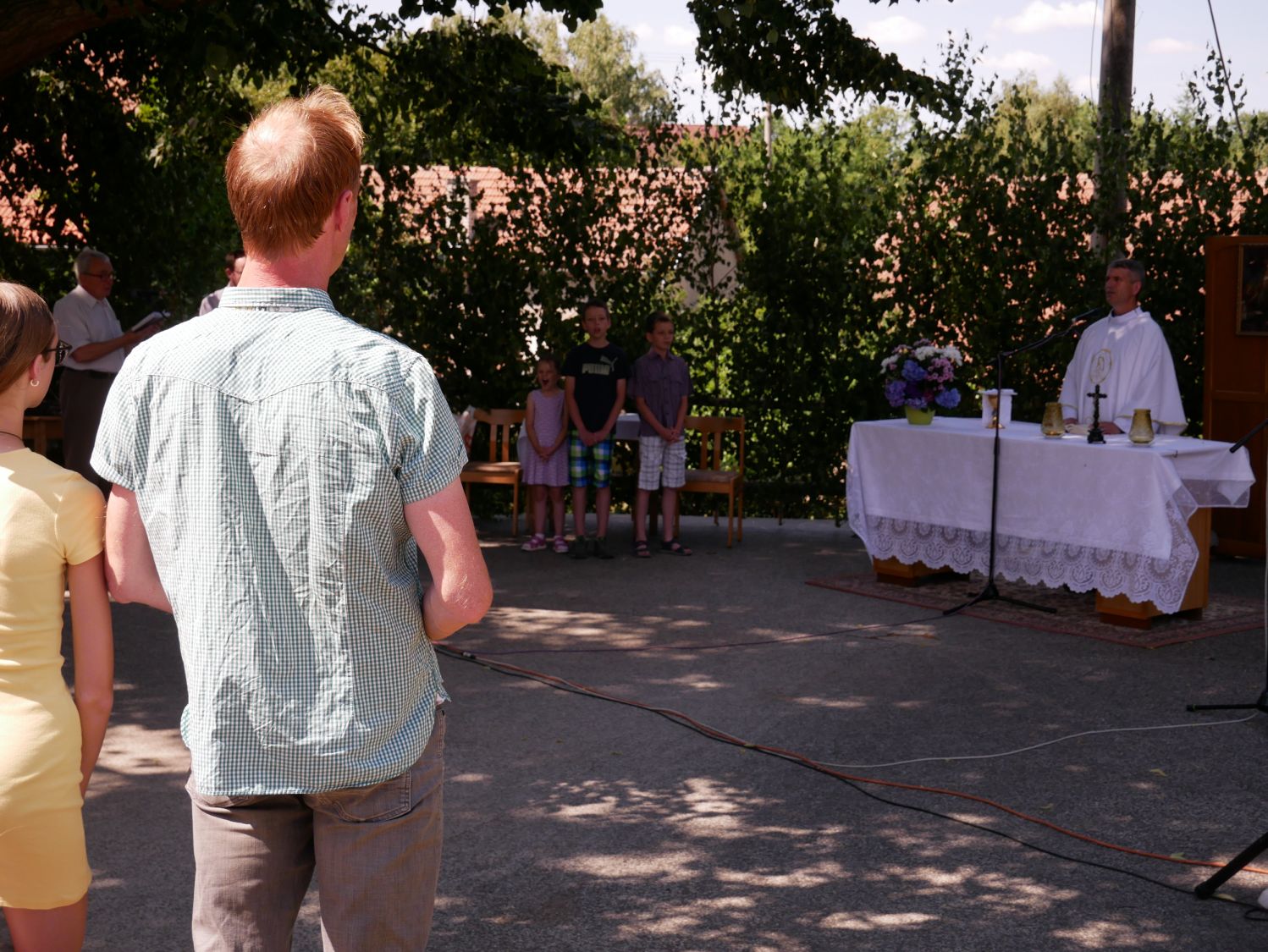Pouťové oslavy pak vyvrcholily v neděli před polednem, kdy u kulturního domu pod nádhernou košatou lípou sloužil mši svatou velkomeziříčský děkan Jiří Kaňa. Účast byla velká, dorazili nejen místní, ale i lidé ze širokého okolí.