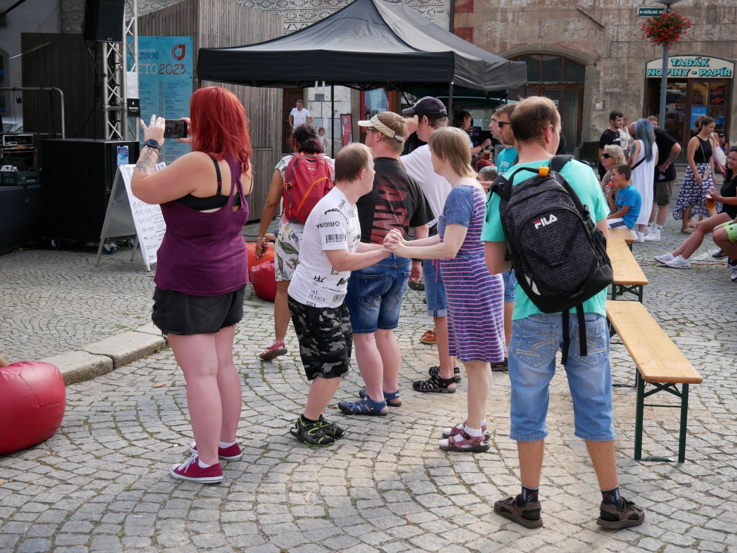 Nálada na náměstí byla výborná a nezkazila ji ani blesková průtrž mračen, která se krátce po šesté hodině večerní přehnala nad Velkým Meziříčím.