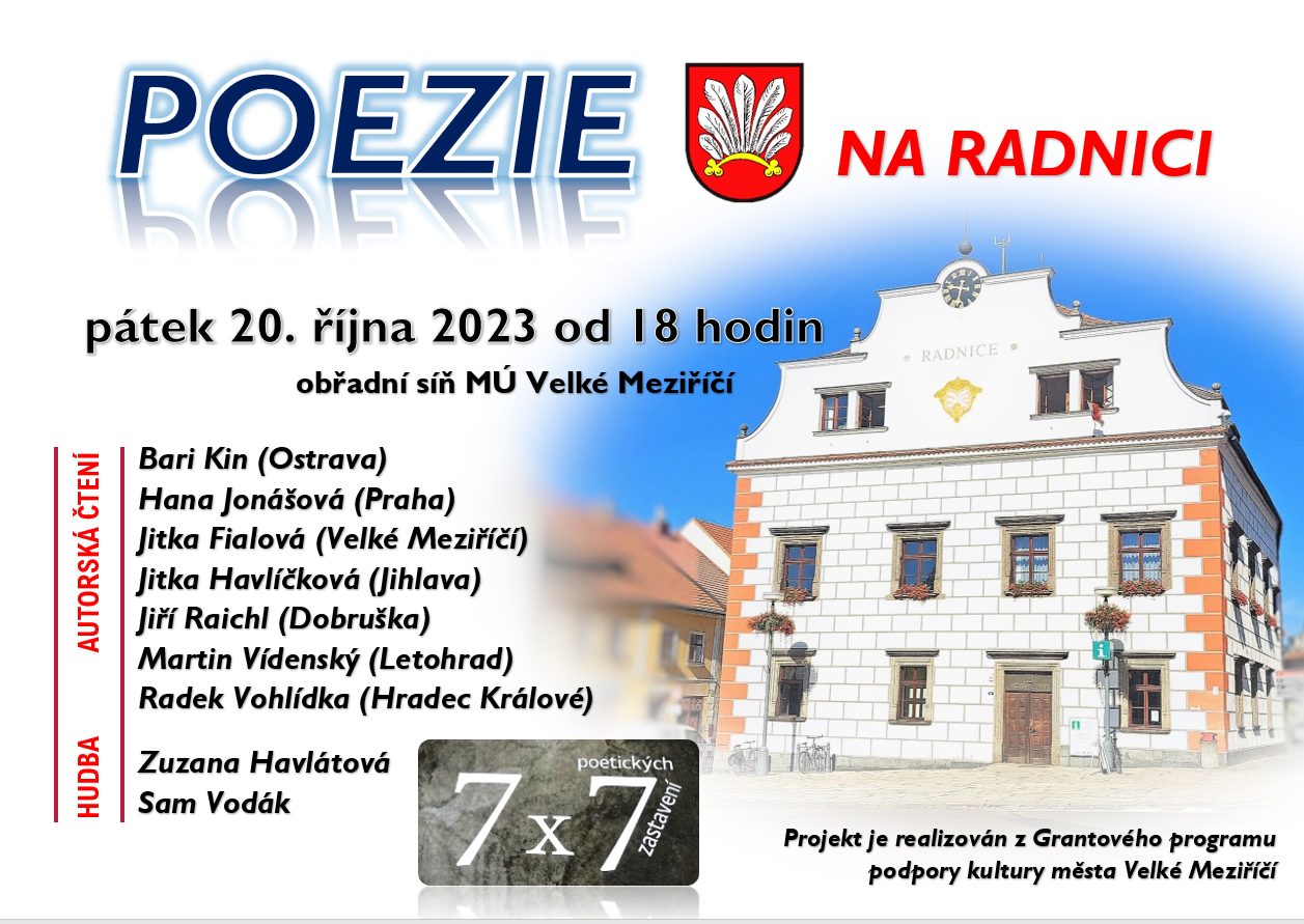 Srdečně zveme na jedinečné autorské čtení, které se bude konat přímo v srdci města – obřadní síni velkomeziříčské radnice.