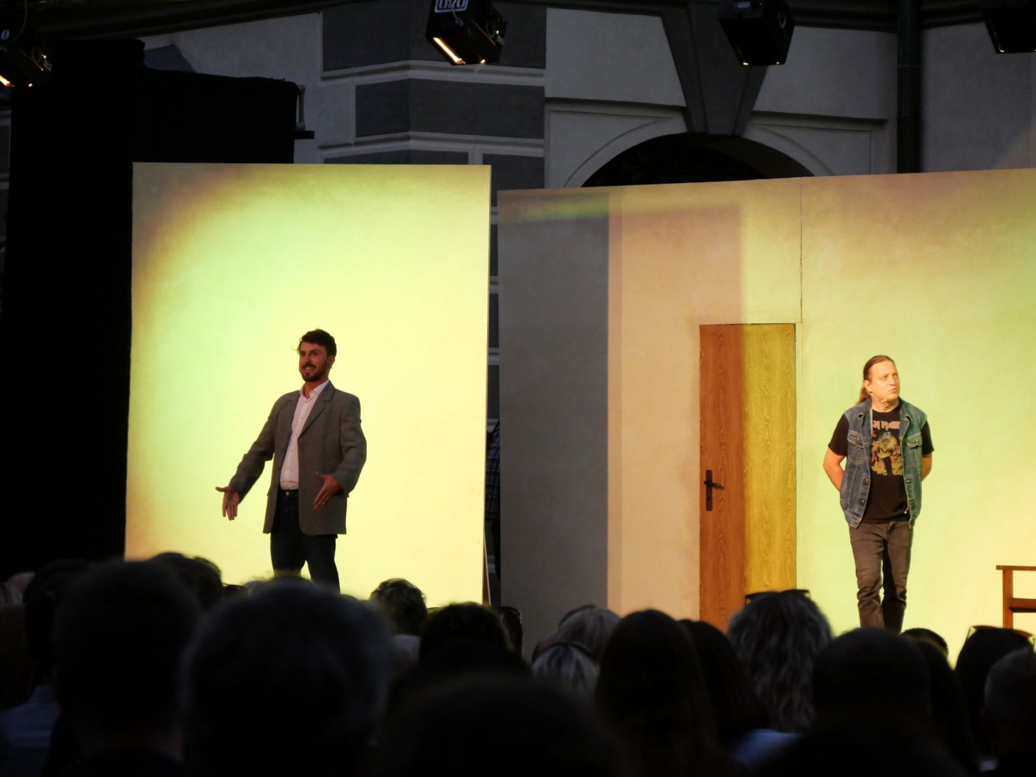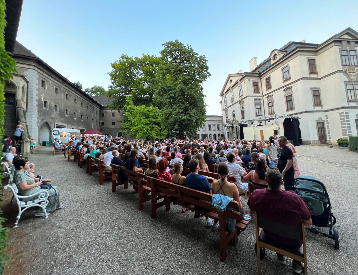 V neděli večer se na nádvoří zámku uskutečnila premiéra představení Zkrocení zlé ženy. To bylo Špatně Namíchaným Bublifukem přepracováno na vtipnou modernější verzi, které pobavila přítomné.