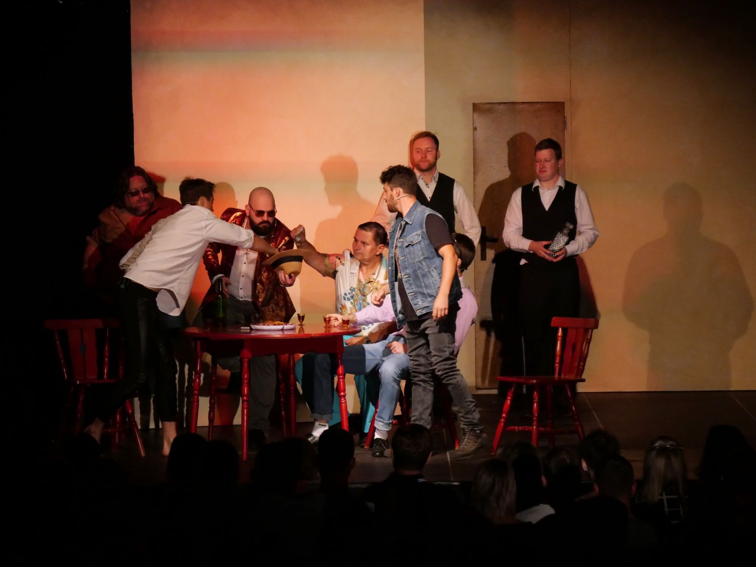 Začátek akce připadl na 20:15, kdy se poslední hosté usazovali na svá místa. Hned úvodní scéna dala najevo, že toto nebude tradiční Zkrocení zlé ženy (ZZŽ) a všichni tak trpělivě čekali, co ten večer uvidí. Nechyběla zde snad žádná emoce. Troufáme si říci, že všichni diváci si představení zaručeně užili.