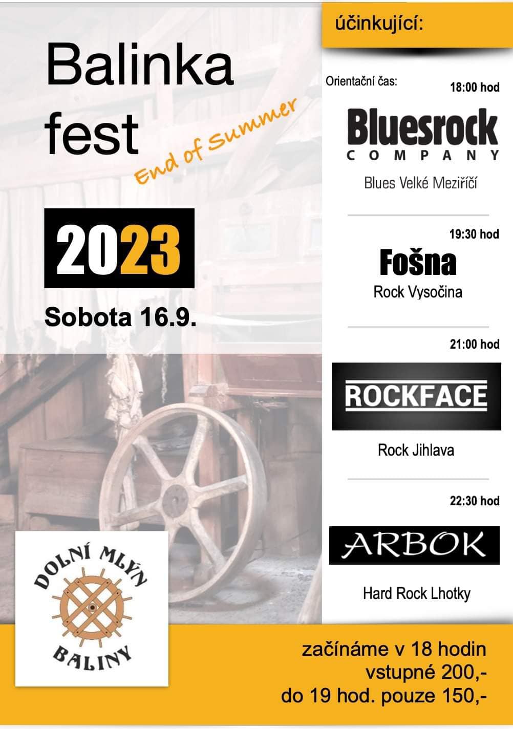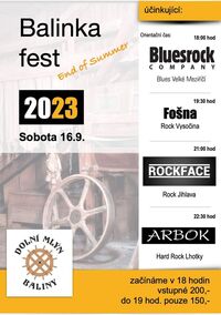 Už v sobotu 16. září se v Dolním mlýnu Baliny uskuteční další Balinka fest, tentokrát se loučí s létem. Těšit se můžete na večer plný rockové hudby.