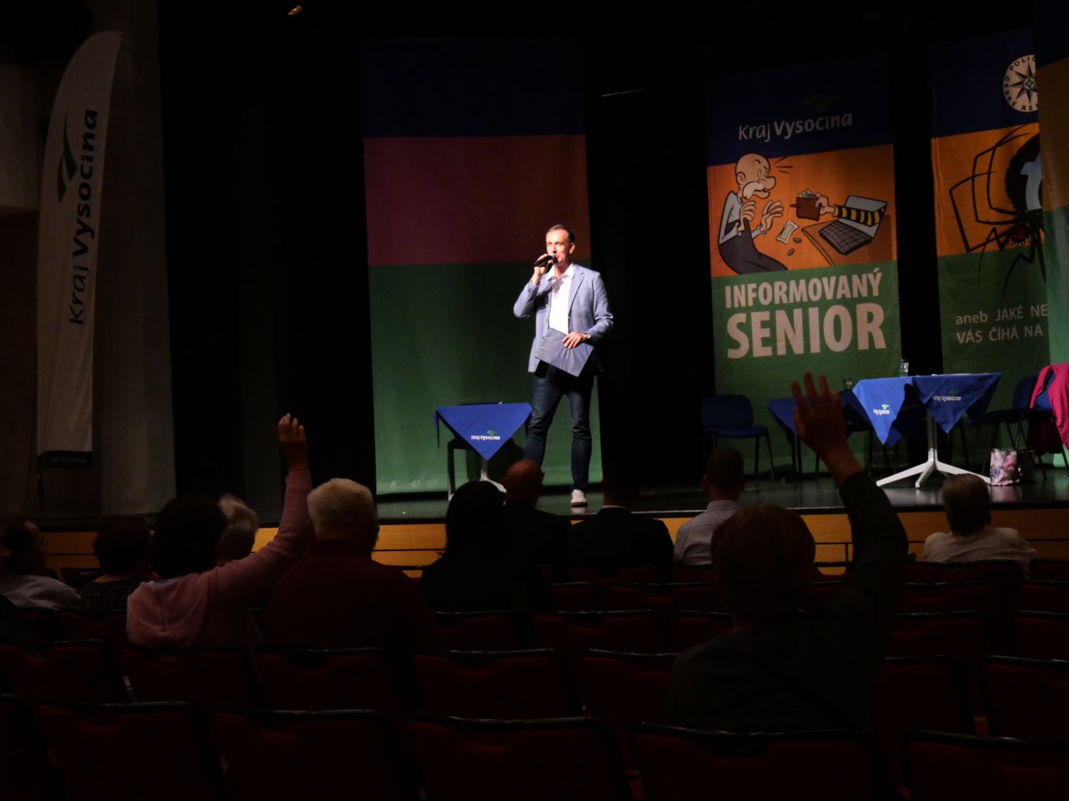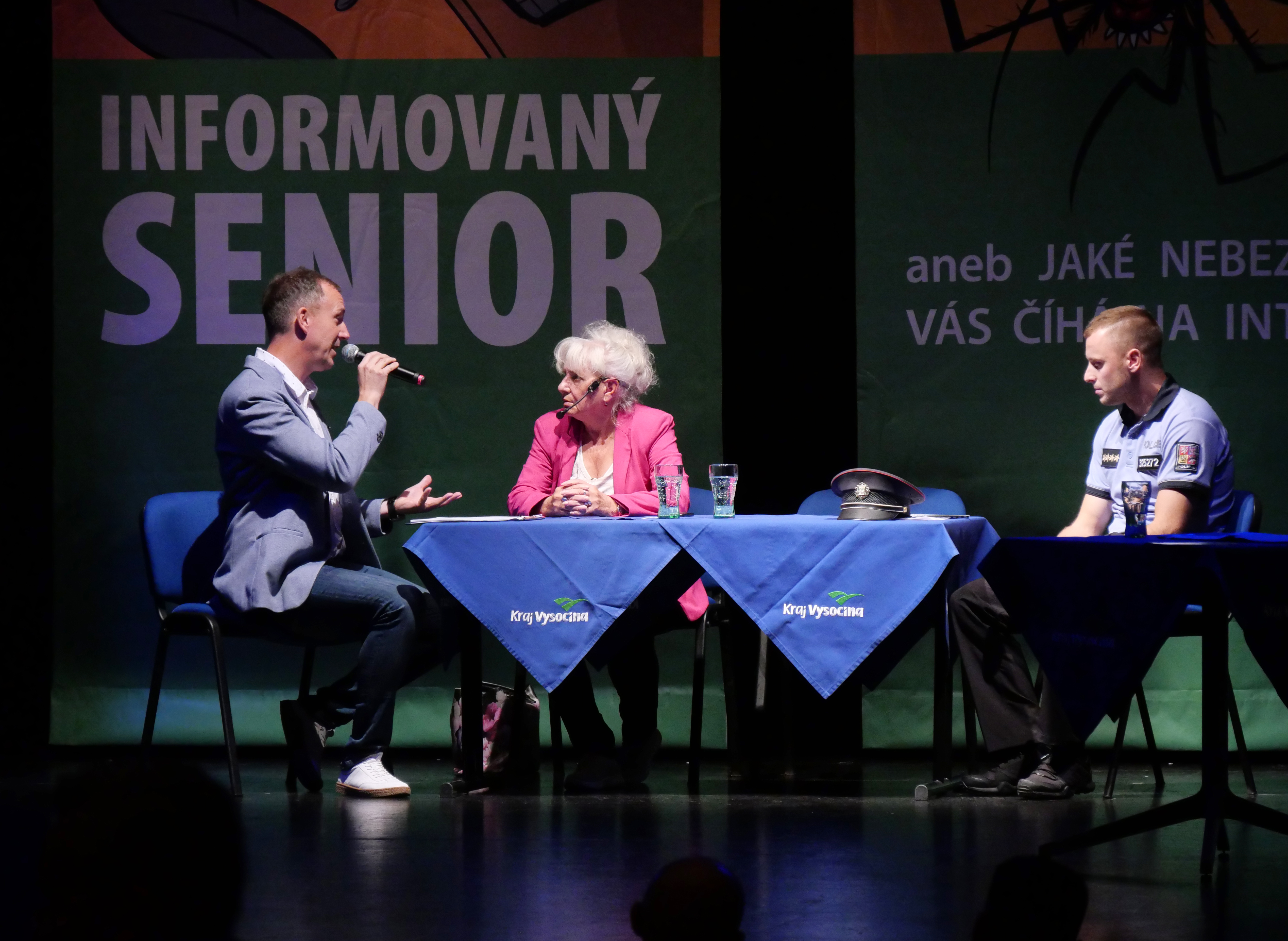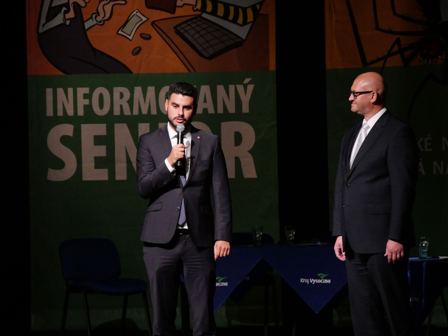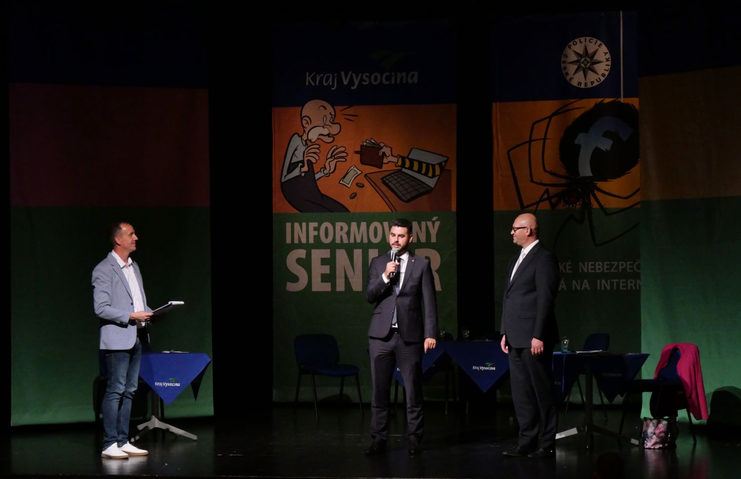 Úvodního slova se chopil moderátor, který na pódiu přivítal starostu města Alexandrose Kaminarase a radního Kraje Vysočina pro sociální věci Jana Tourka. Ti upozornili na některé platformy, kde k podvodům často dochází, vyzdvihli důležitost semináře a poděkovali přítomným za účast na něm.